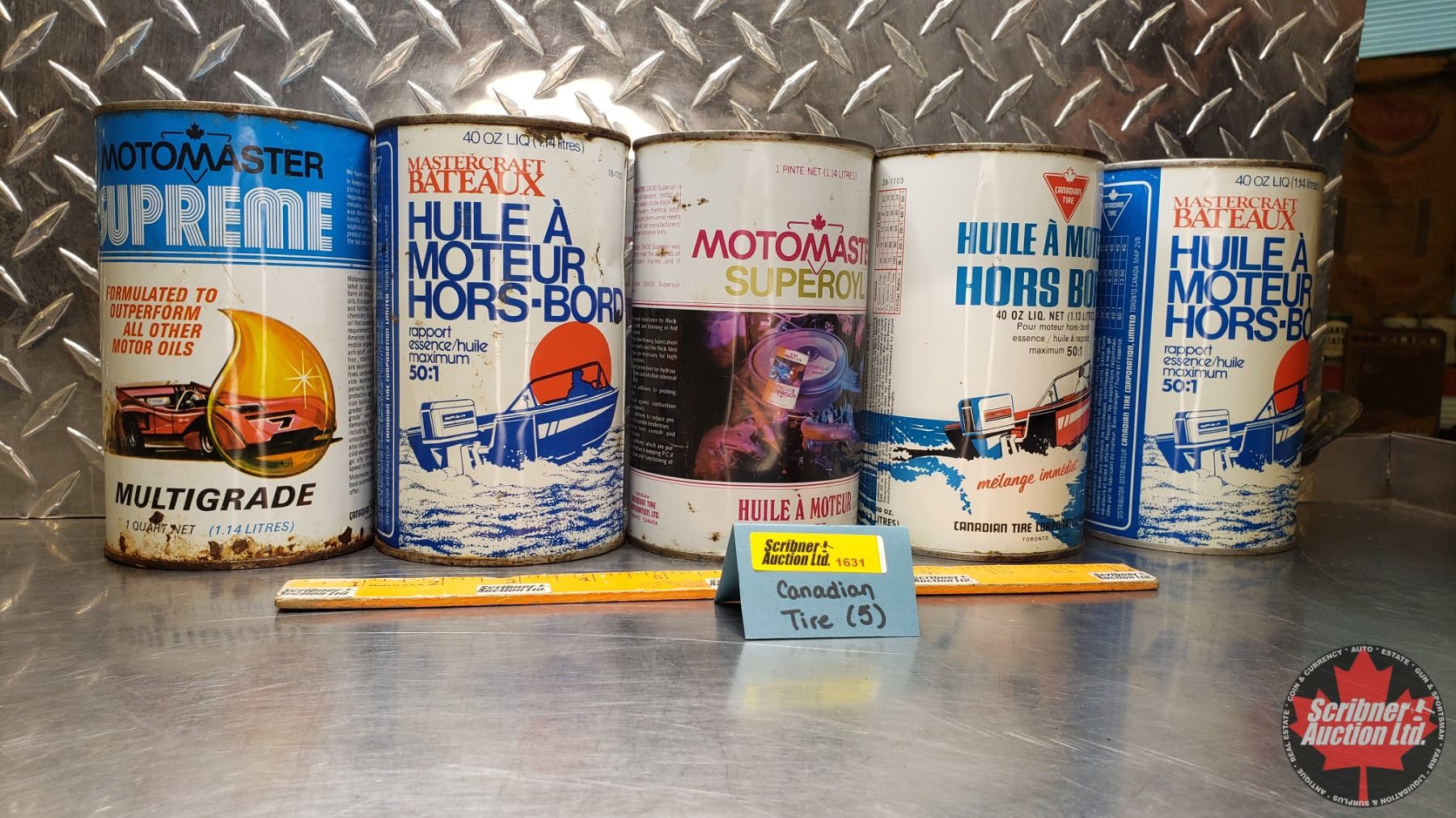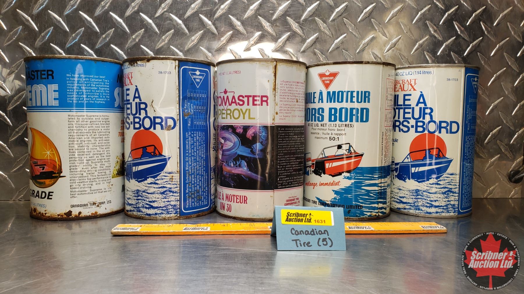 OIL TINS (5): Canadian Tire - Variety (6-1/2"H x 4"Dia) (SEE PICS!)