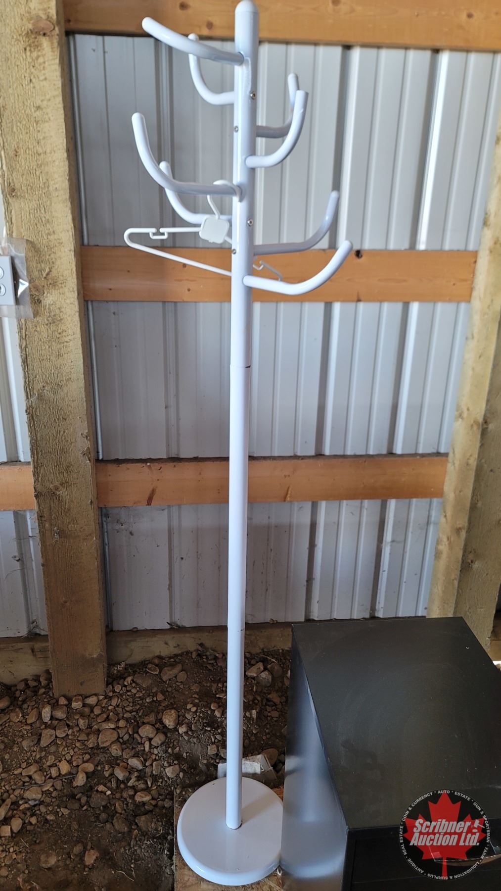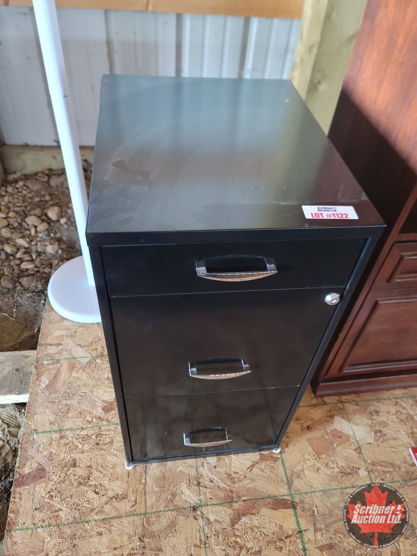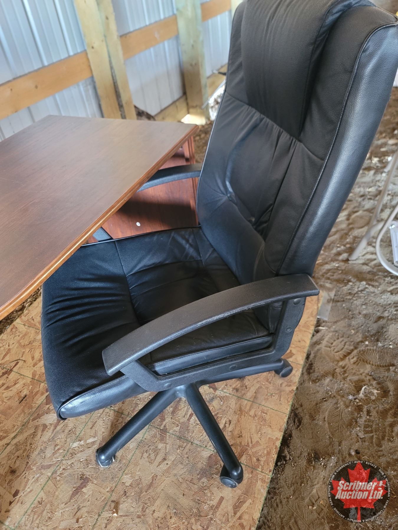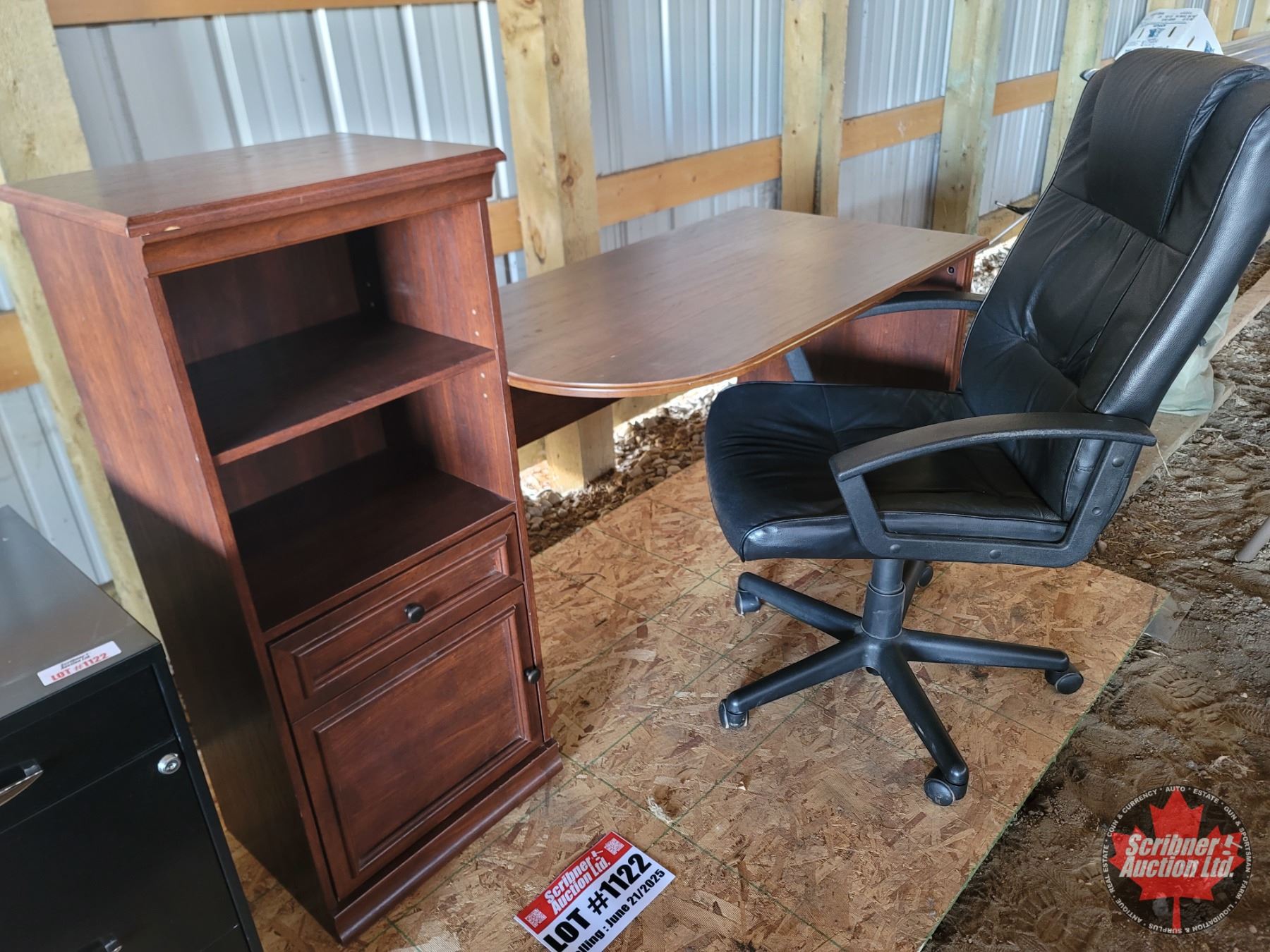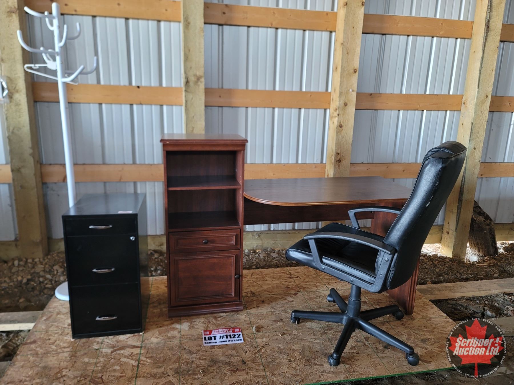 Office Furniture : Desk with built-on Cabinet; Metal File Cabinet; Office Chair & Coat Rack