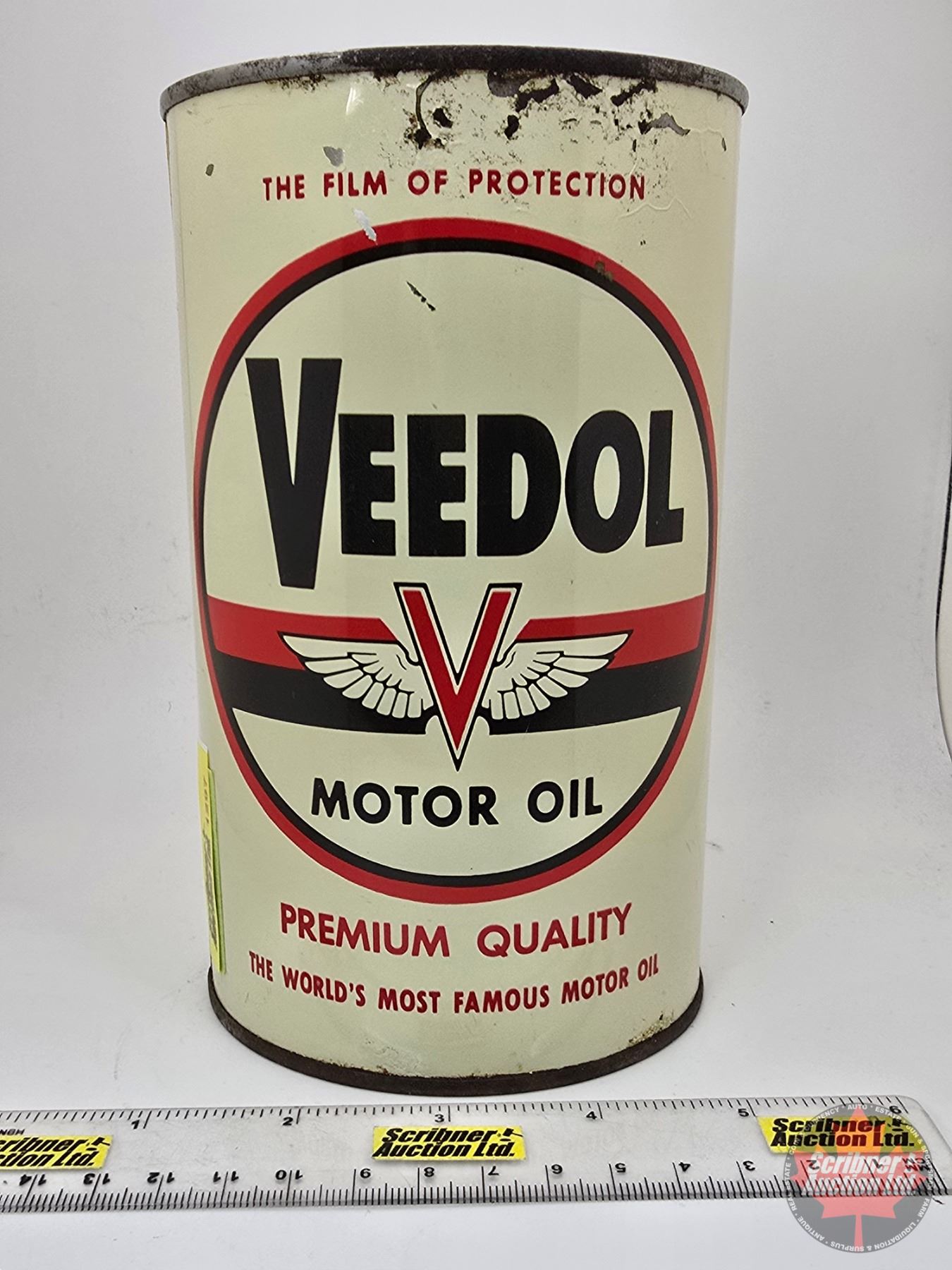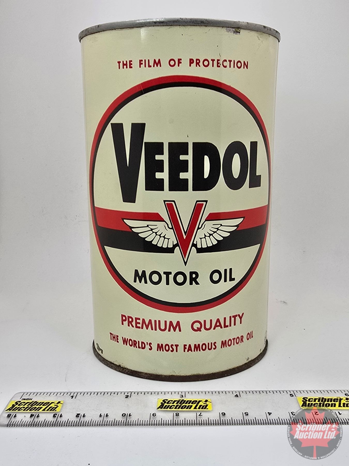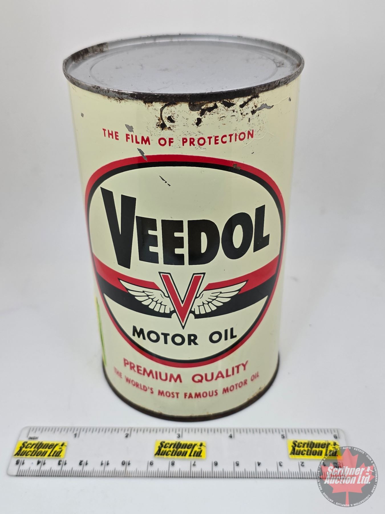 Oil Can : VEEDOL Motor Oil : SAE30 (6-1/2"H x 4"Dia) (SEE PICS!)