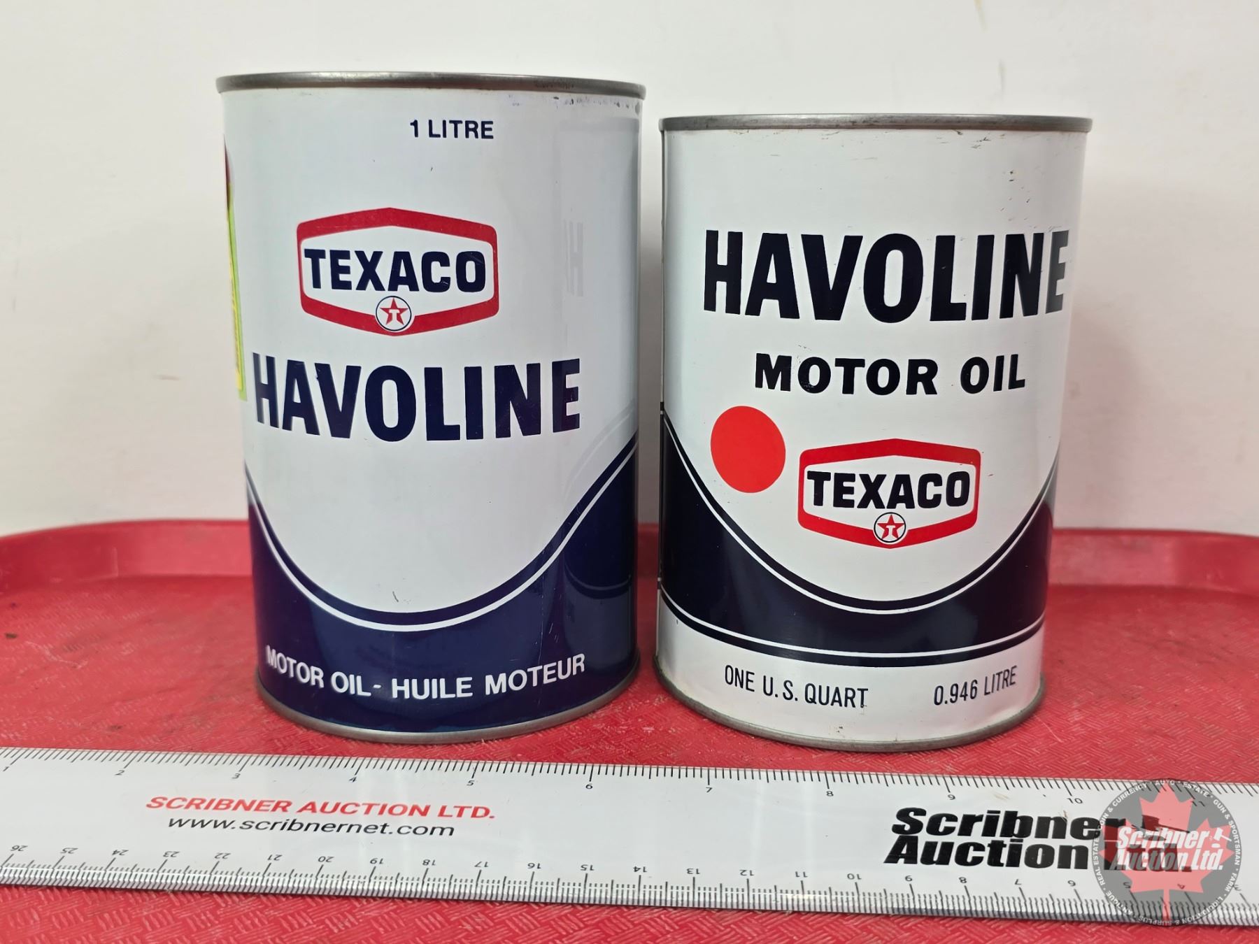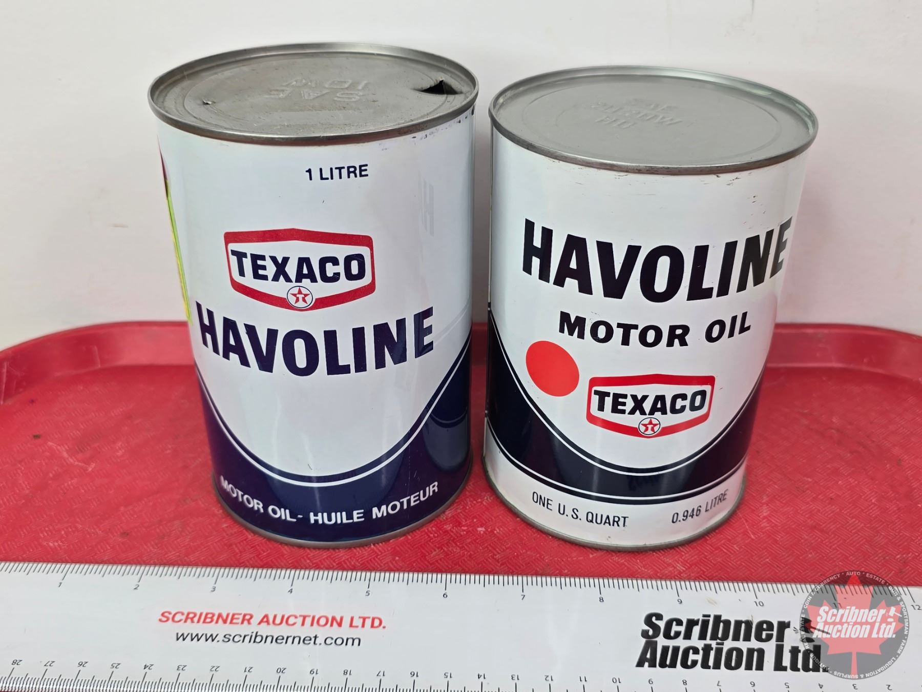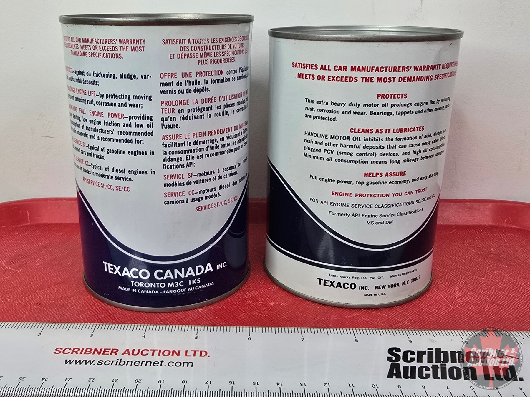 Oil Cans (2): Texaco Havoline Motor Oil (SAE 10W & SAE 2020WHD)
