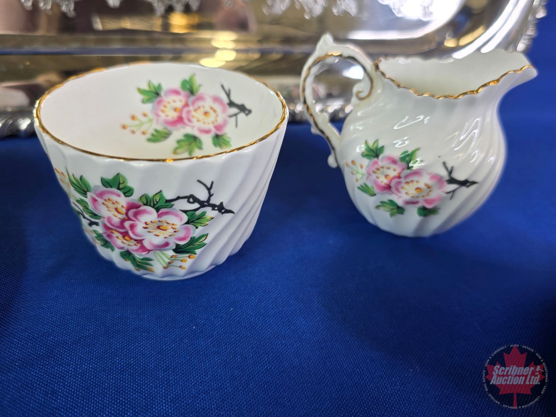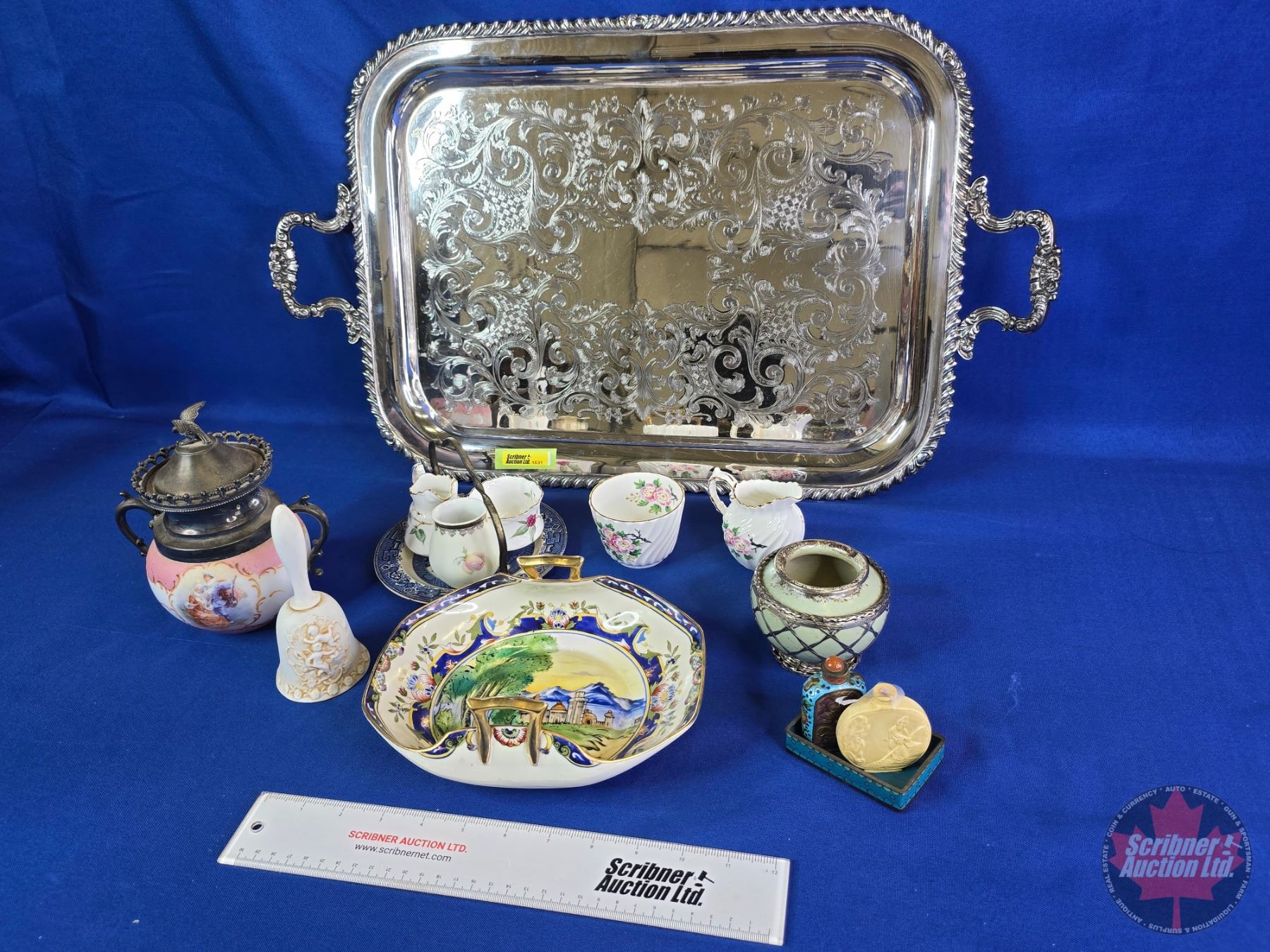 Old English Reproduction Silver Tray w/Variety of Chinaware including Noritake