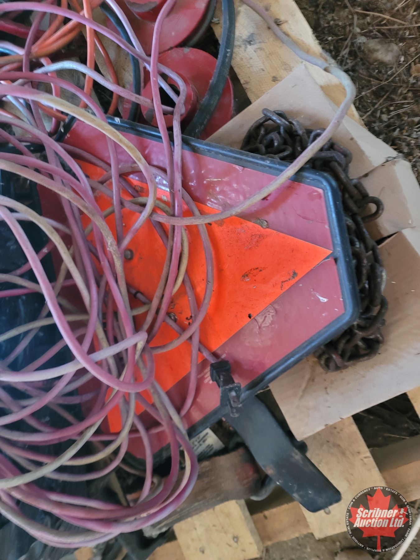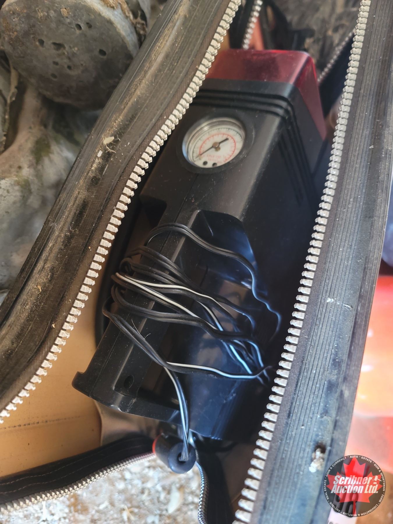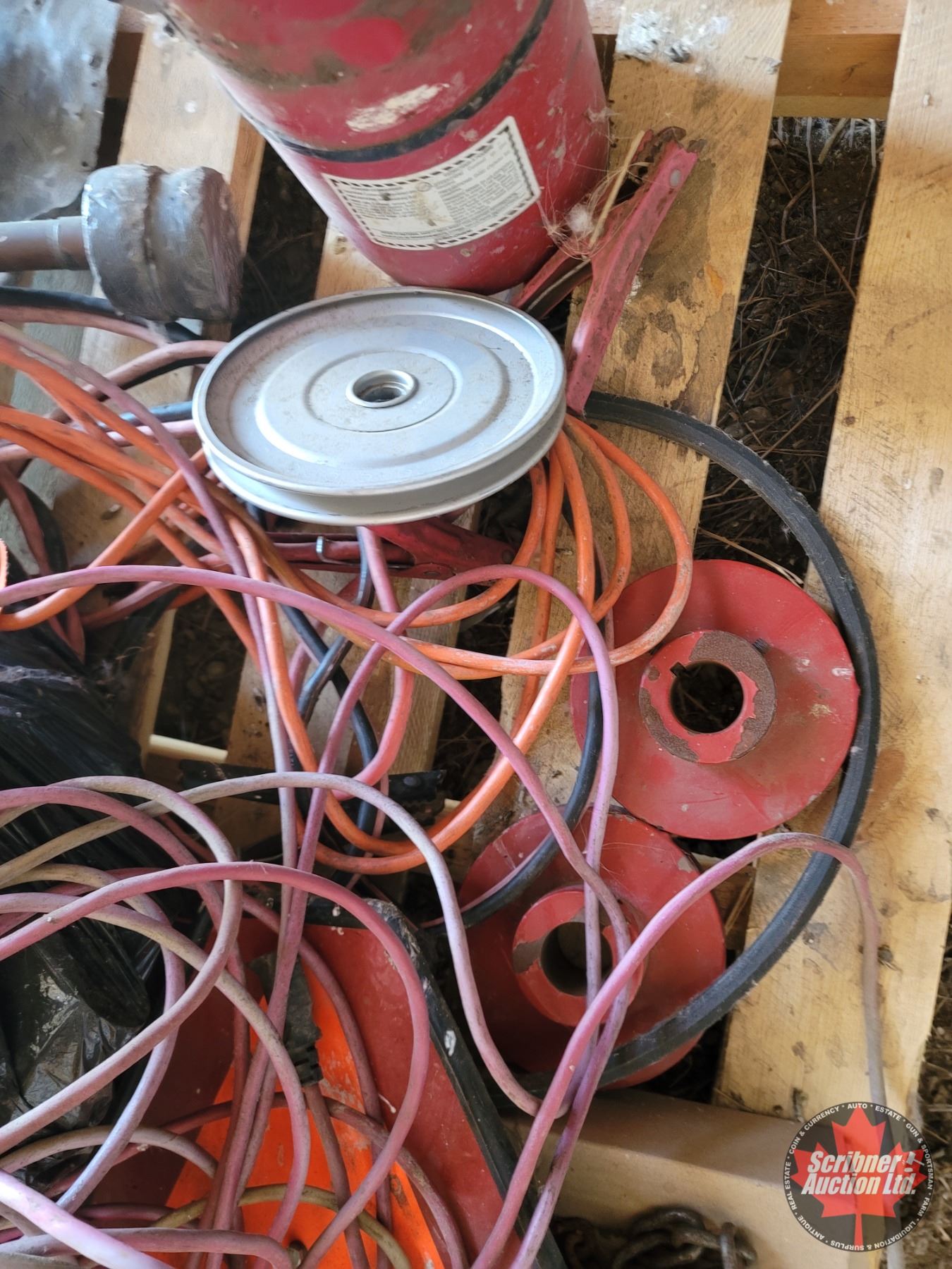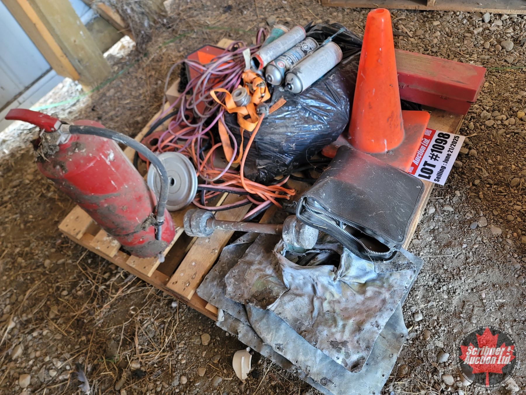 PALLET LOT: 12v Air Compressor; Sign ; Traffic Cone; Flares; Extension Cords; etc