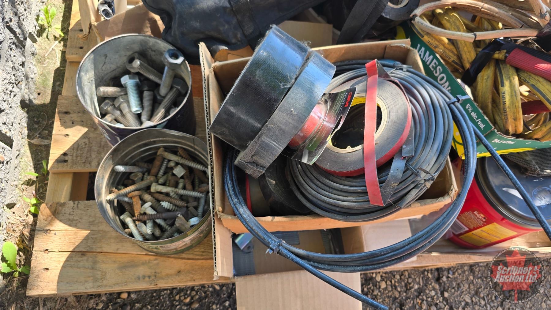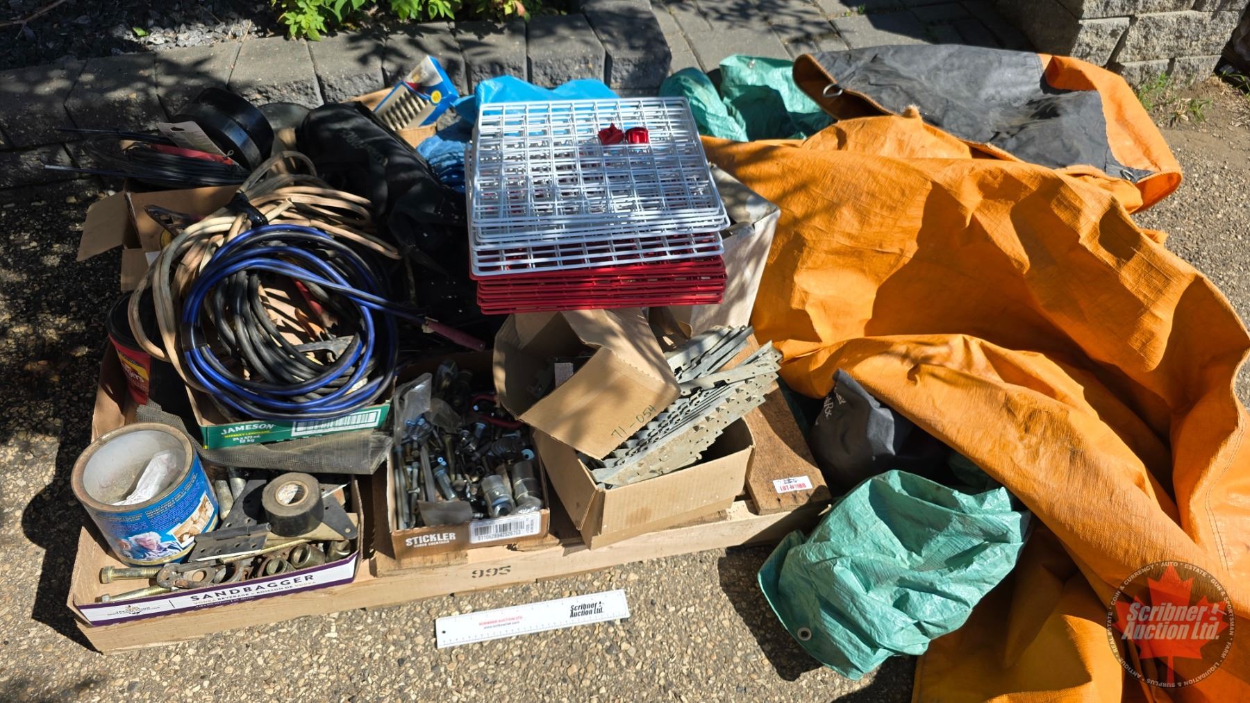 PALLET LOT : Variety of Fasteners, Booster Cables, Hose Clamps, Adhesive Tape, etc