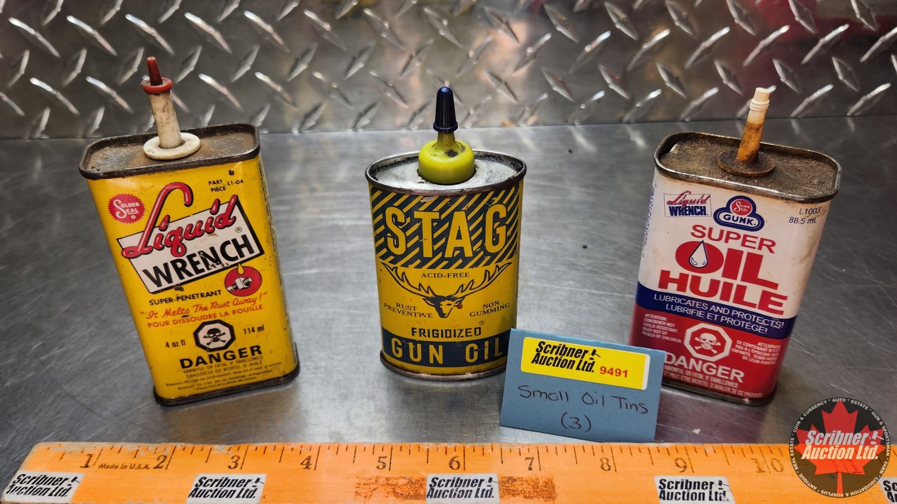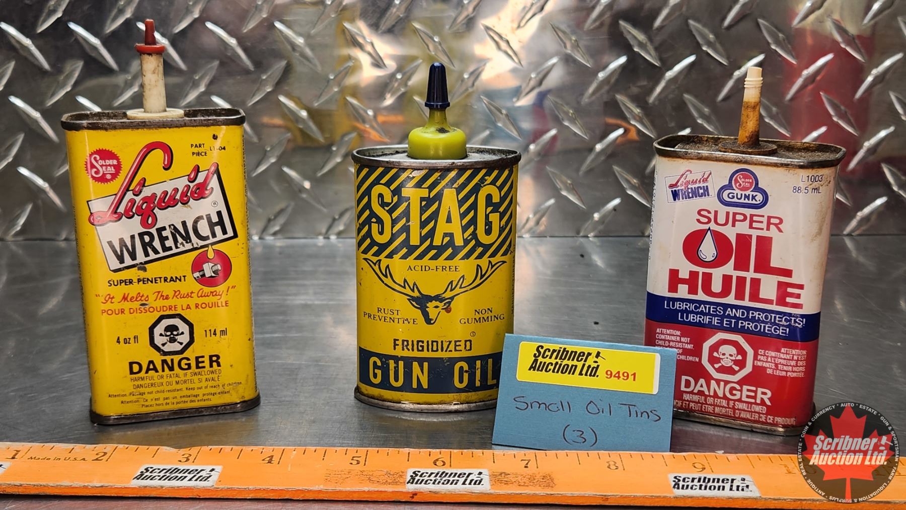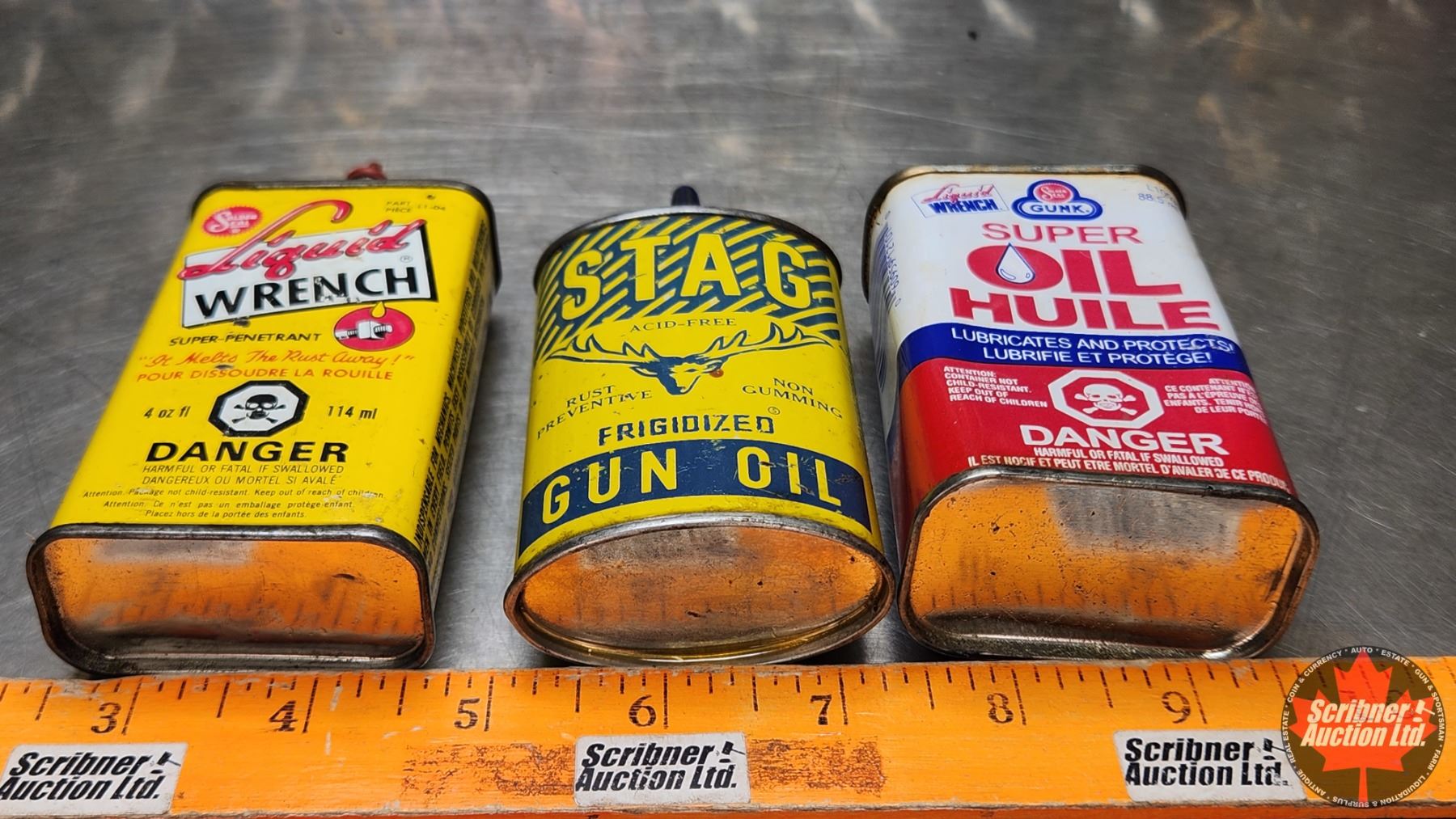PRETROLIANA TIN TRIO : Liquid Wrench, Stag Gun Oil & Gunk Super Oil (Largest Measures : 5-1/2"H x 2-1/2"W x 1-1/4"D) (SEE PICS!)