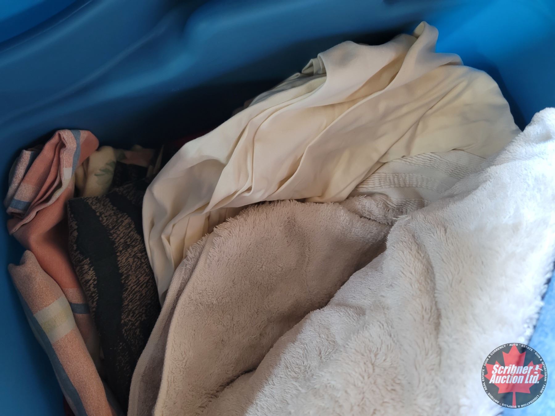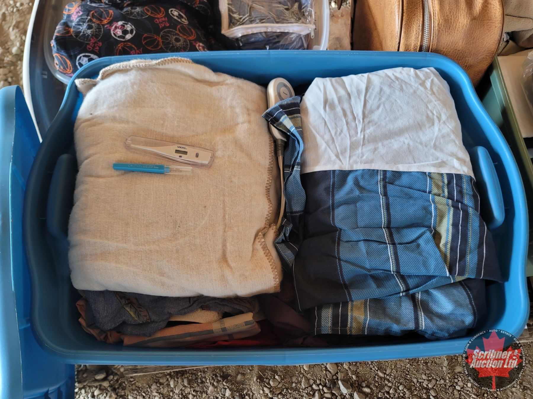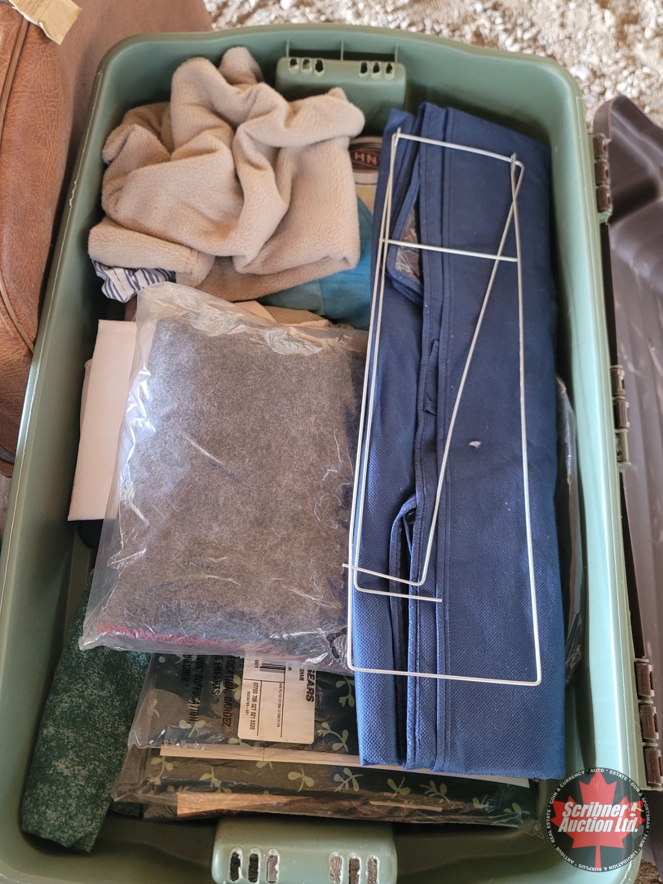 Pallet Lot: (3) Totes Blankets + Suitcase