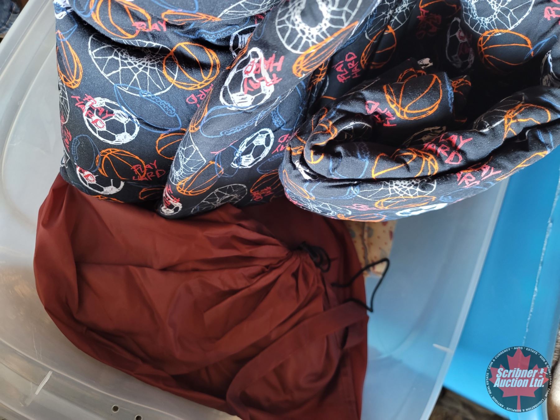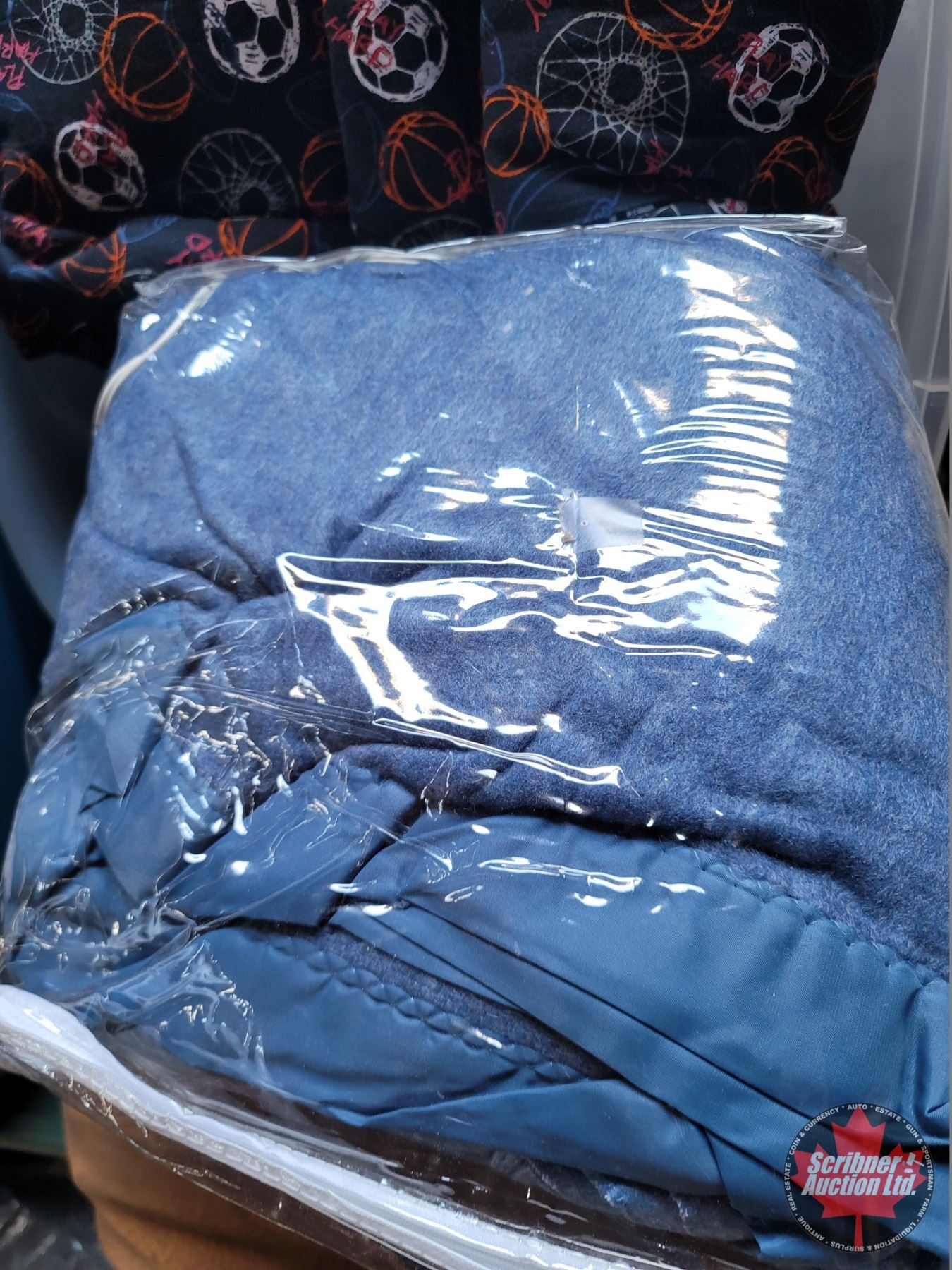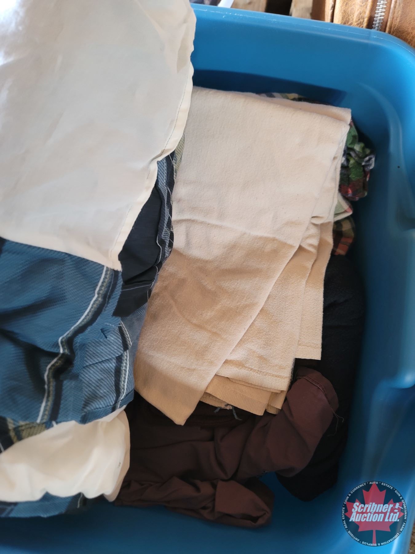 Pallet Lot: (3) Totes Blankets + Suitcase