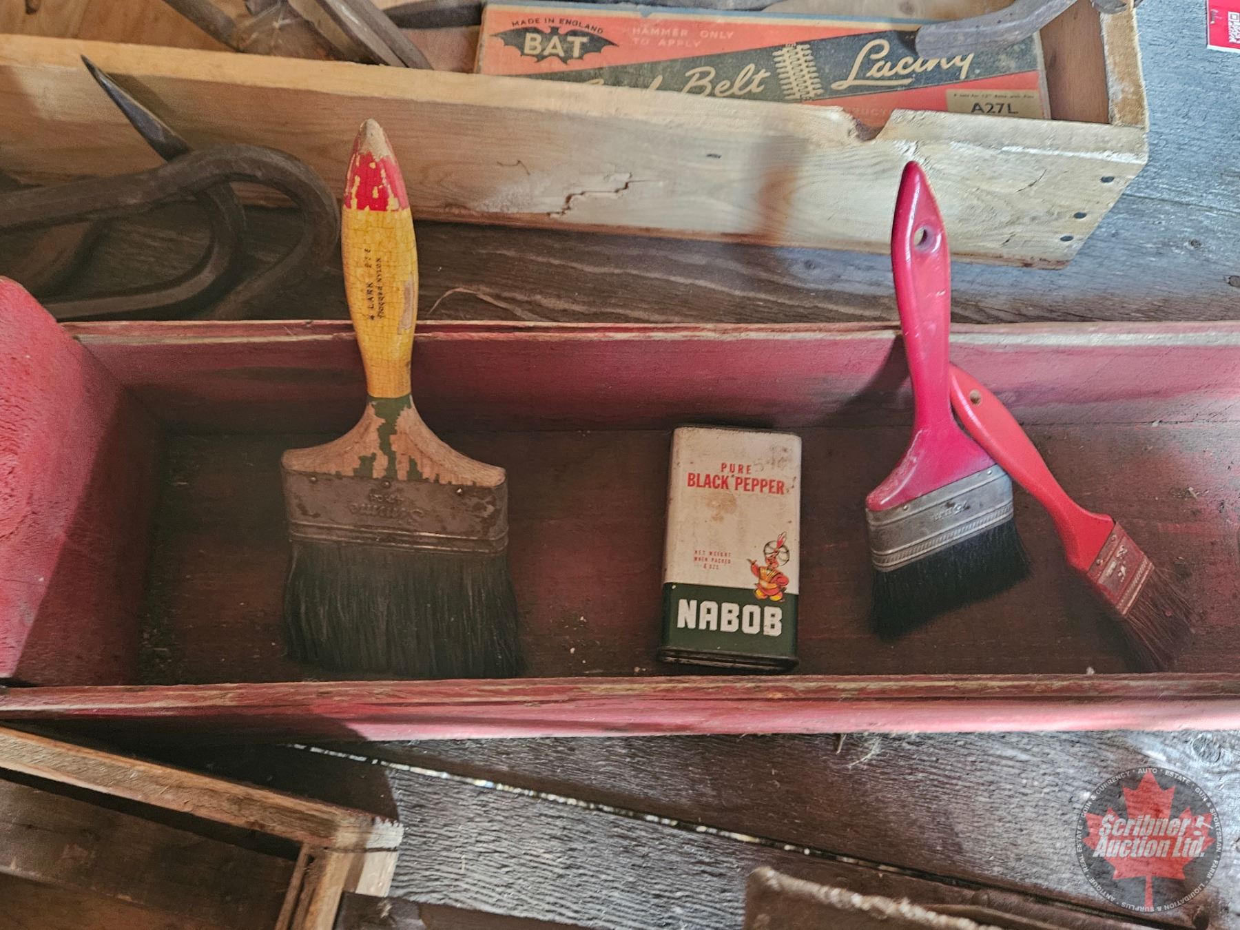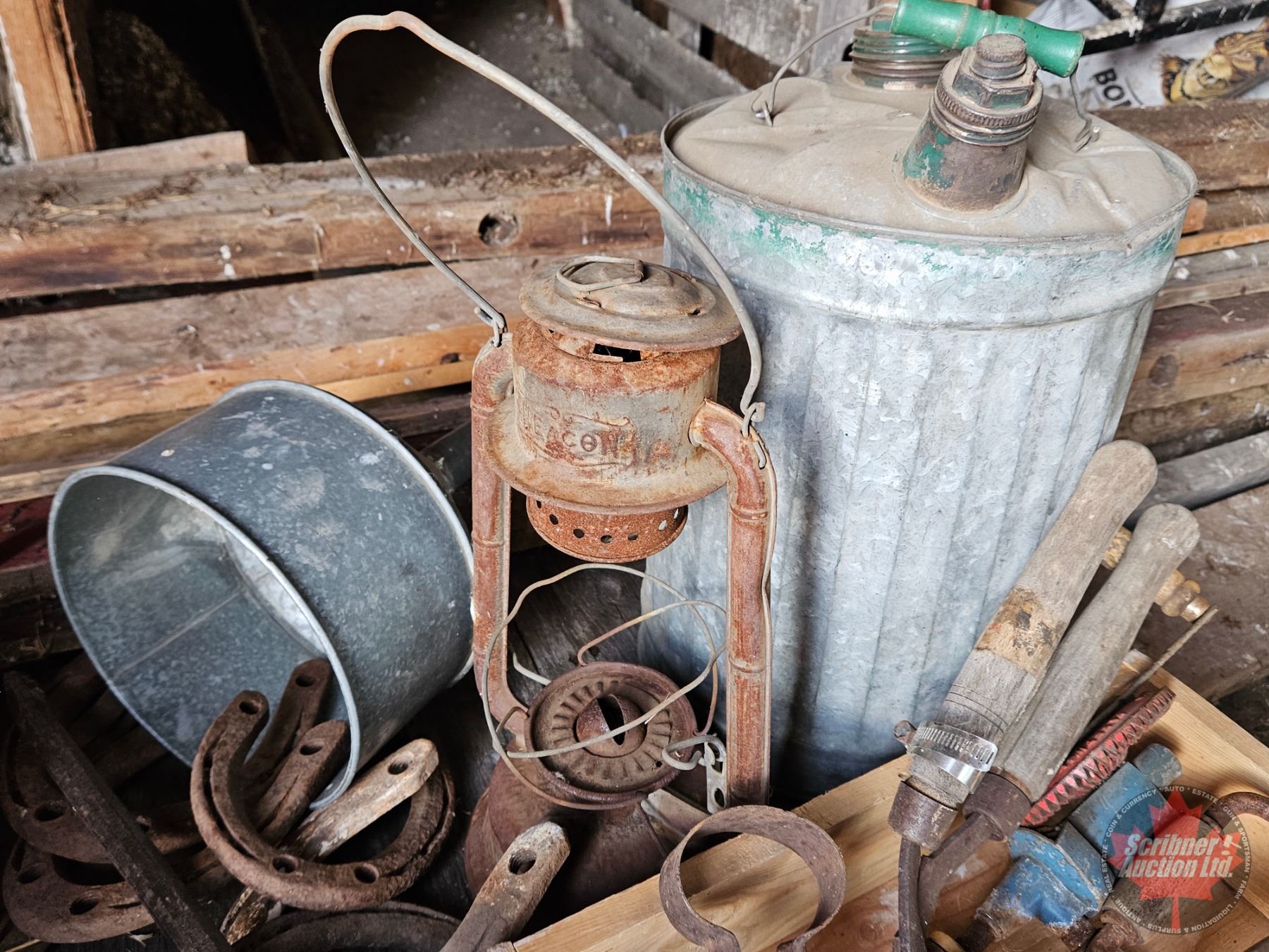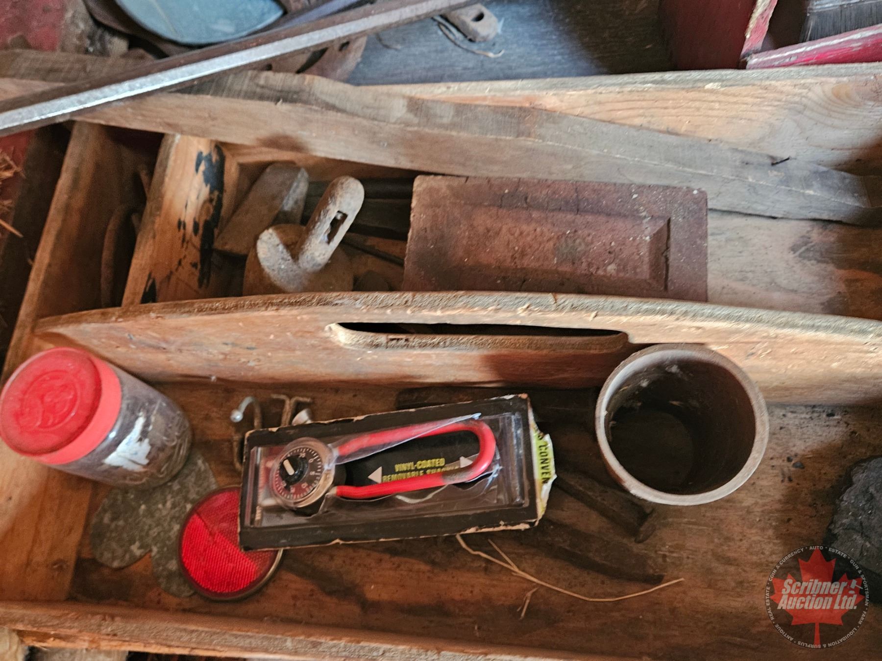 Pallet Lot: Antique Tools, Vise, Gooseneck Bars, etc