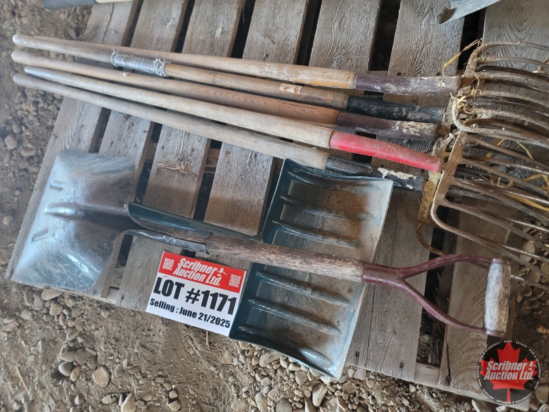 Pallet Lot: Pitch Forks (5); Shovels (2)