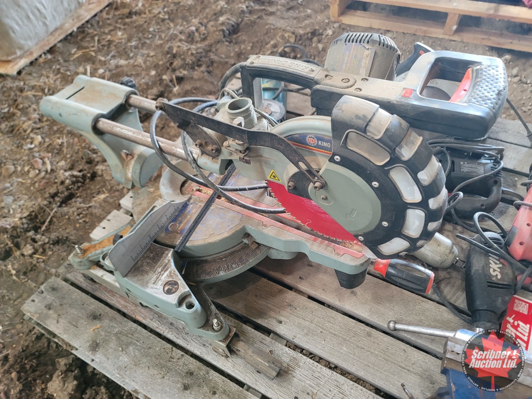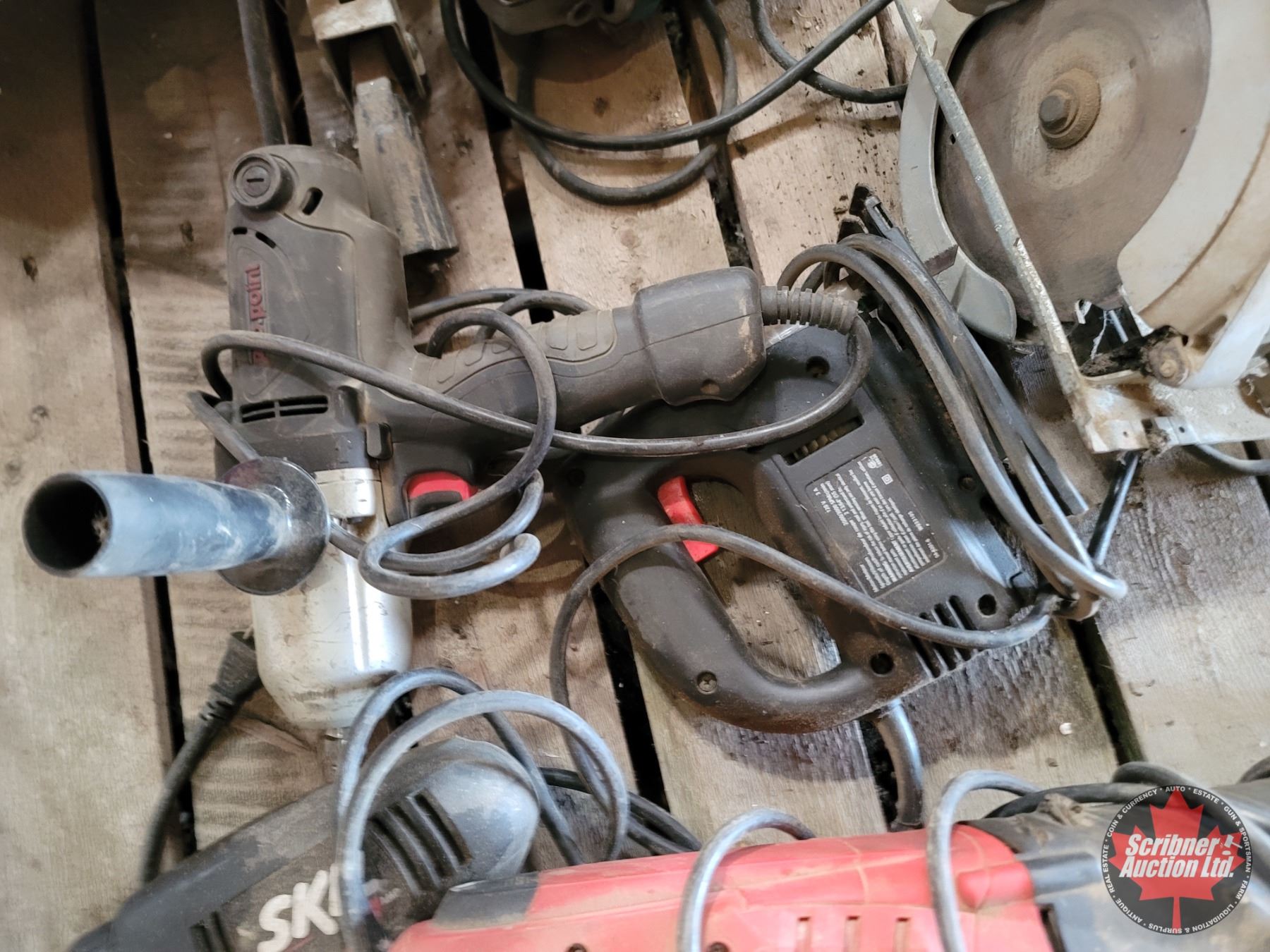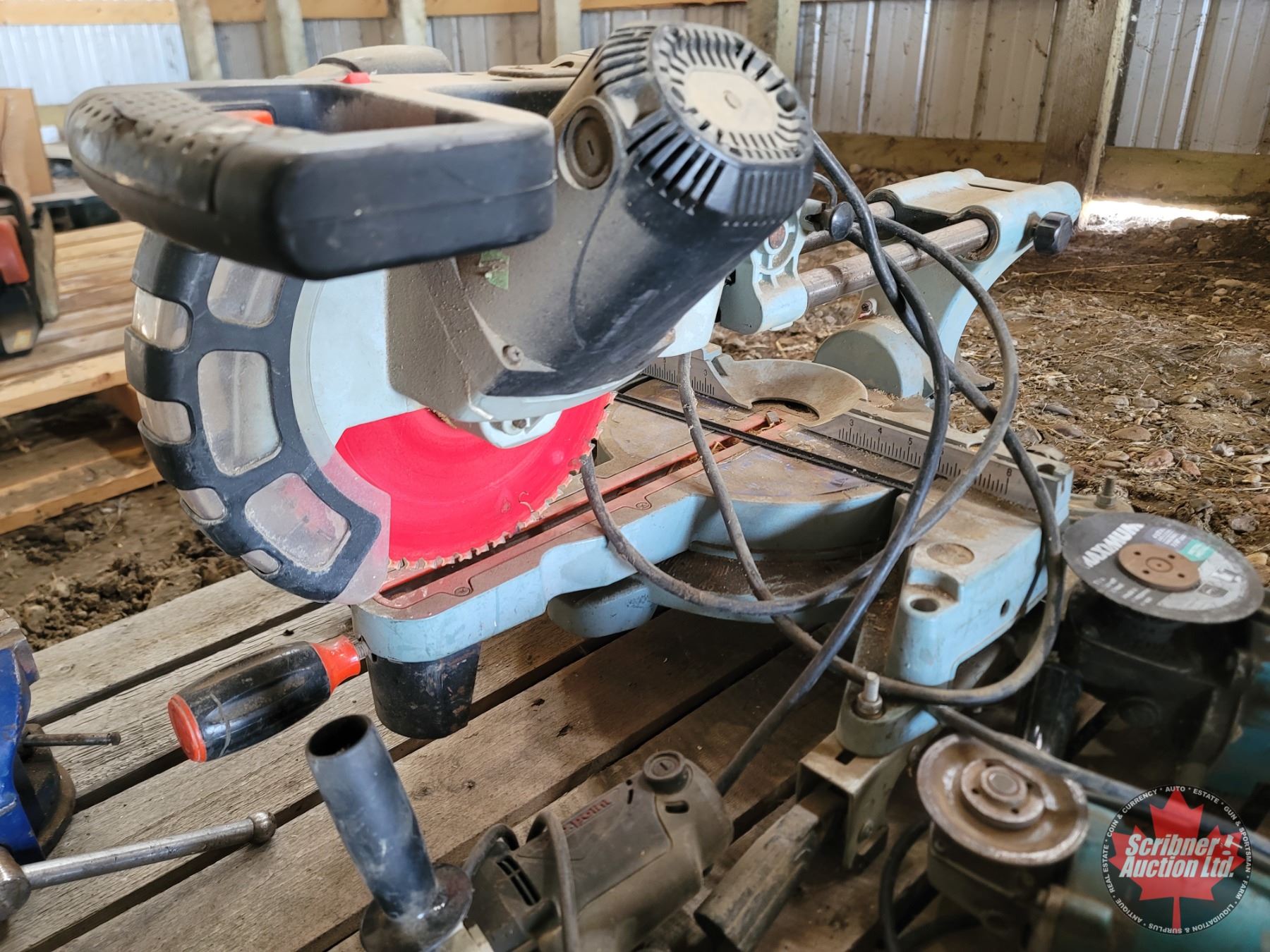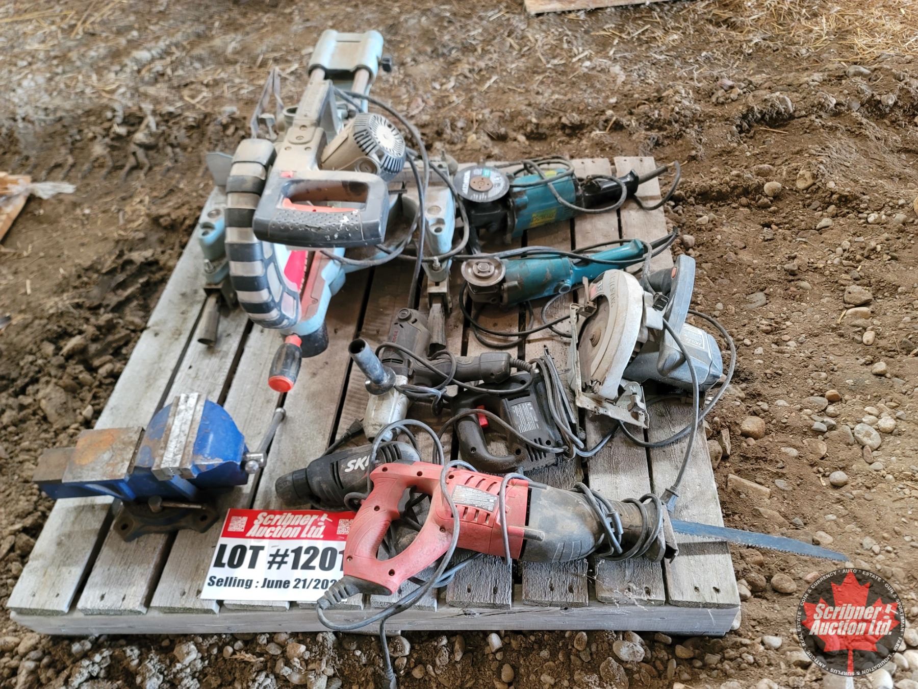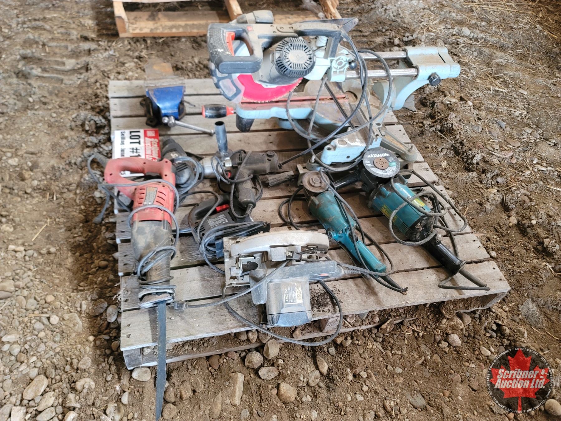 Pallet Lot ~ Tools/Shop Items : Compound Mitre Saw; Angle Grinders; Skil Saw; Drills; Recip Saw; Jig Saw; Vise; etc