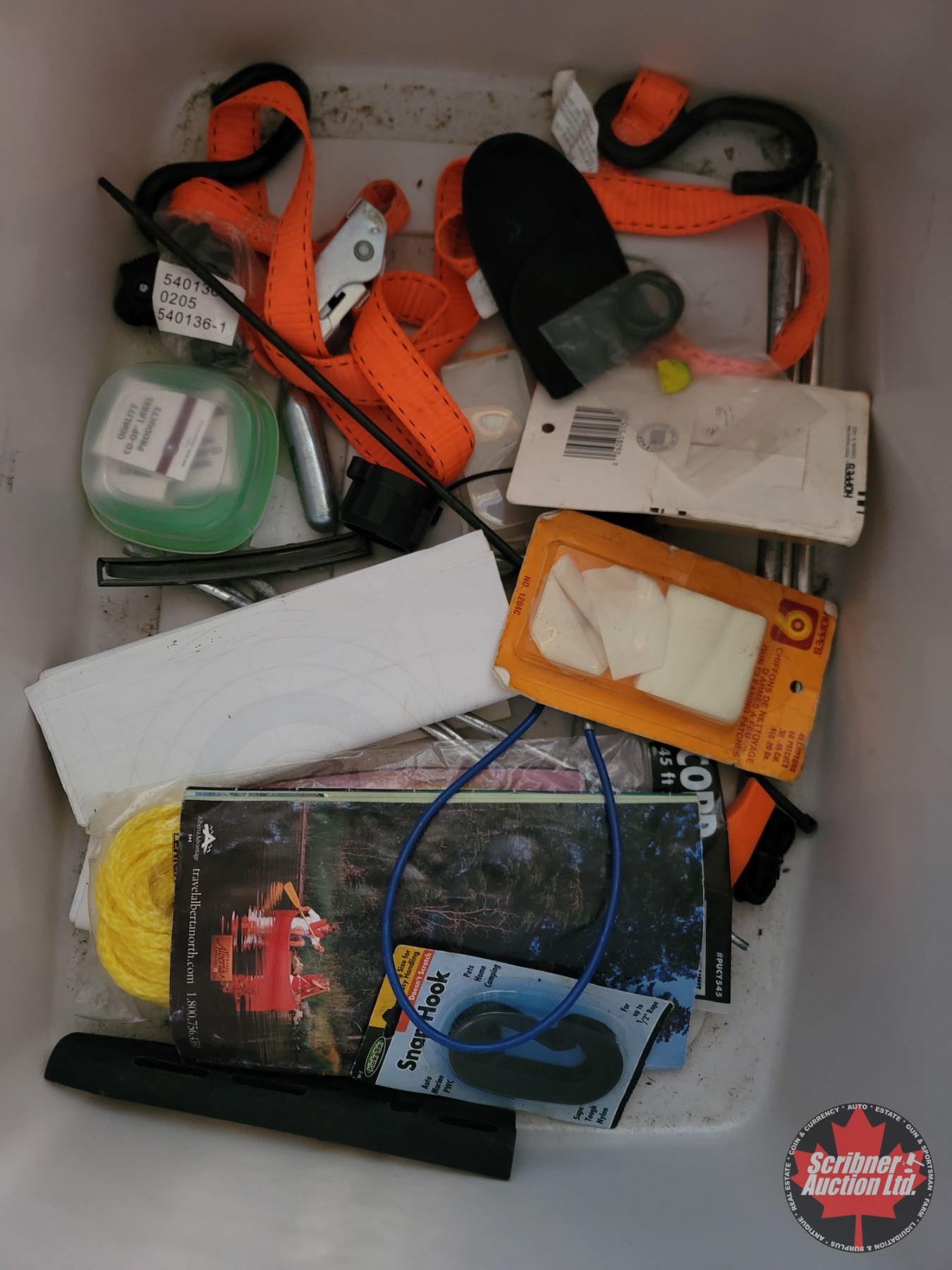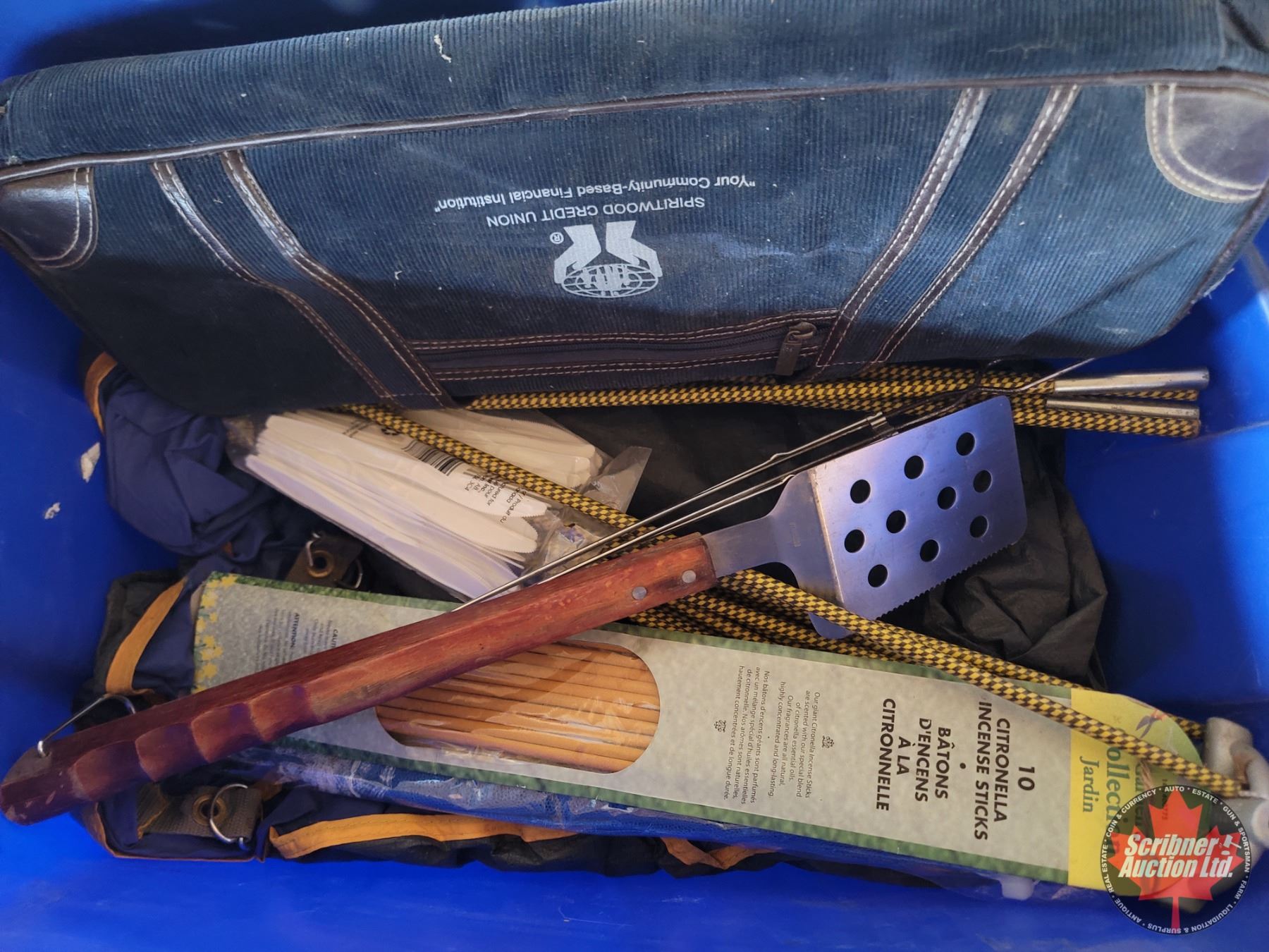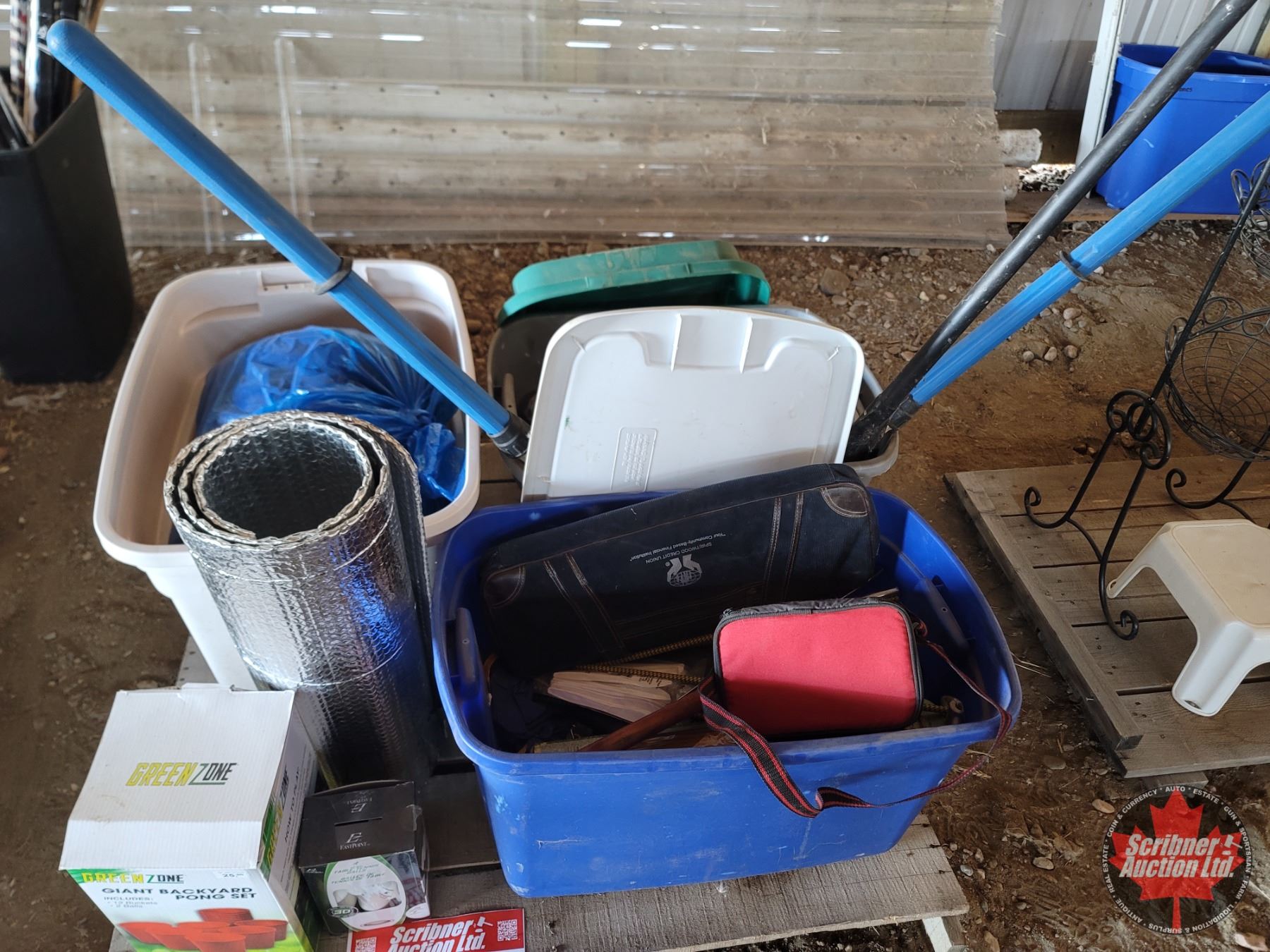 Pallet Lot ~ Variety Camping Group : Four-Man Tent; Inflatable Raft; Unused Sleeping Bag & Pillows; Beer Pong Set; Oars; Bubble Heat Sheild; etc