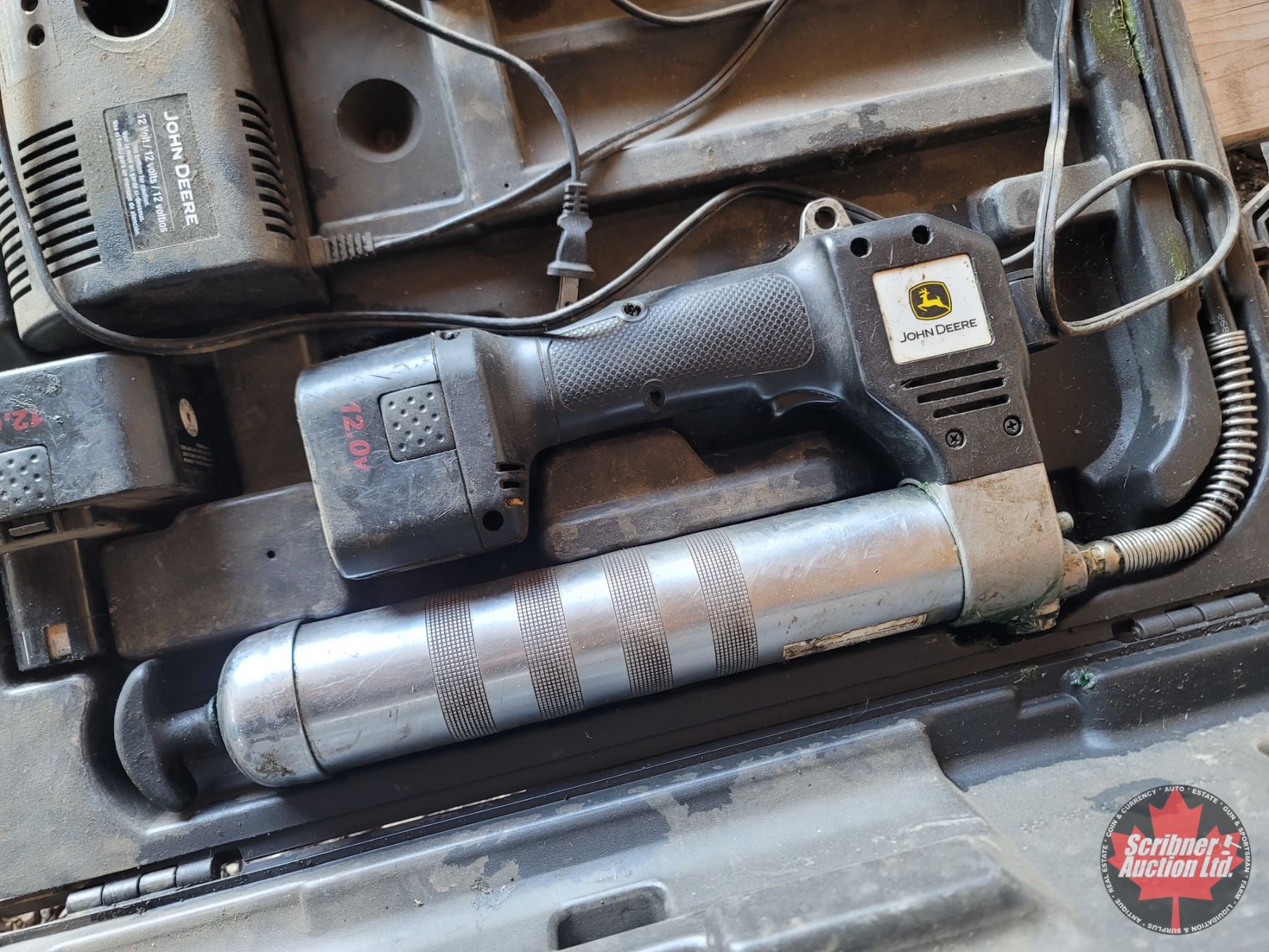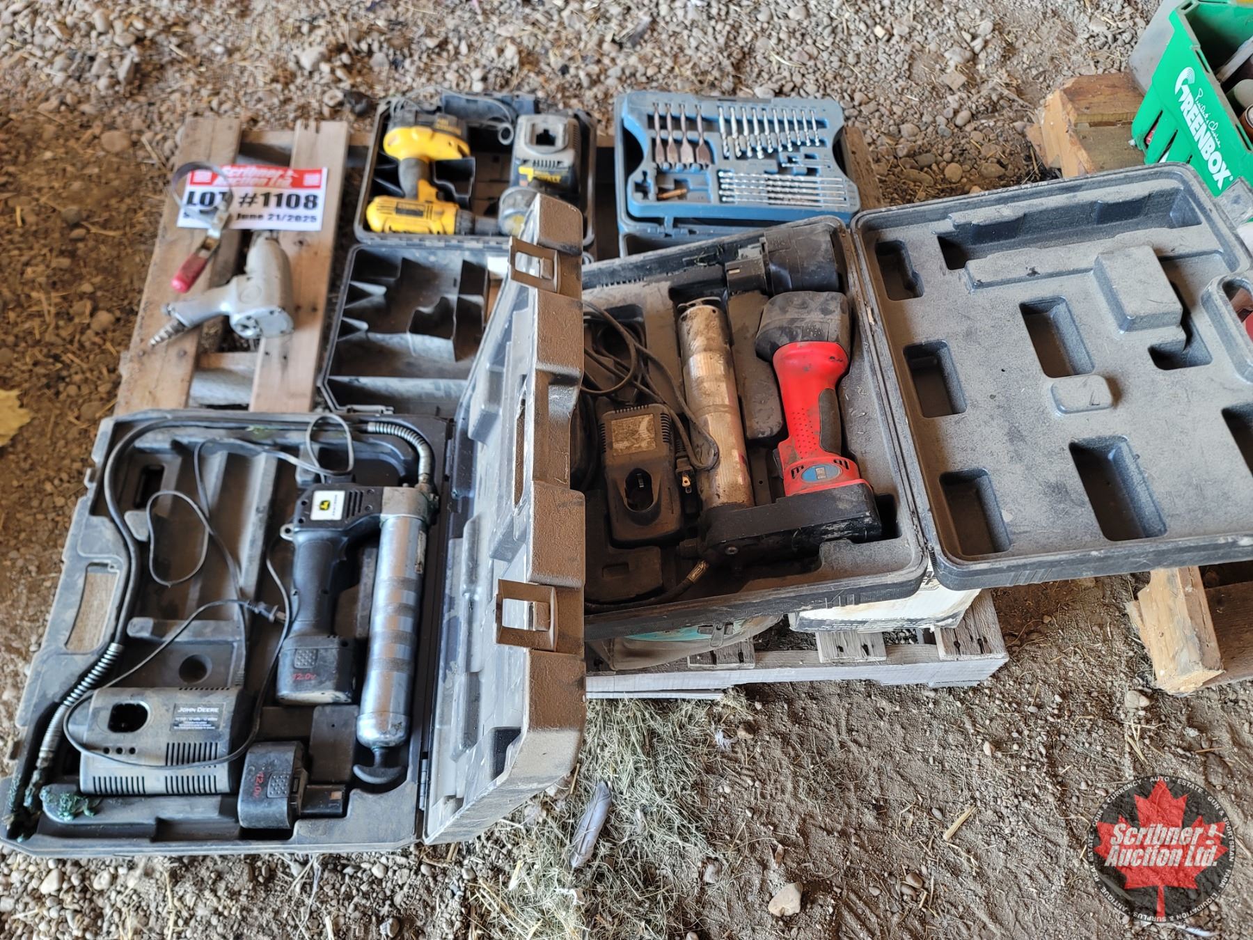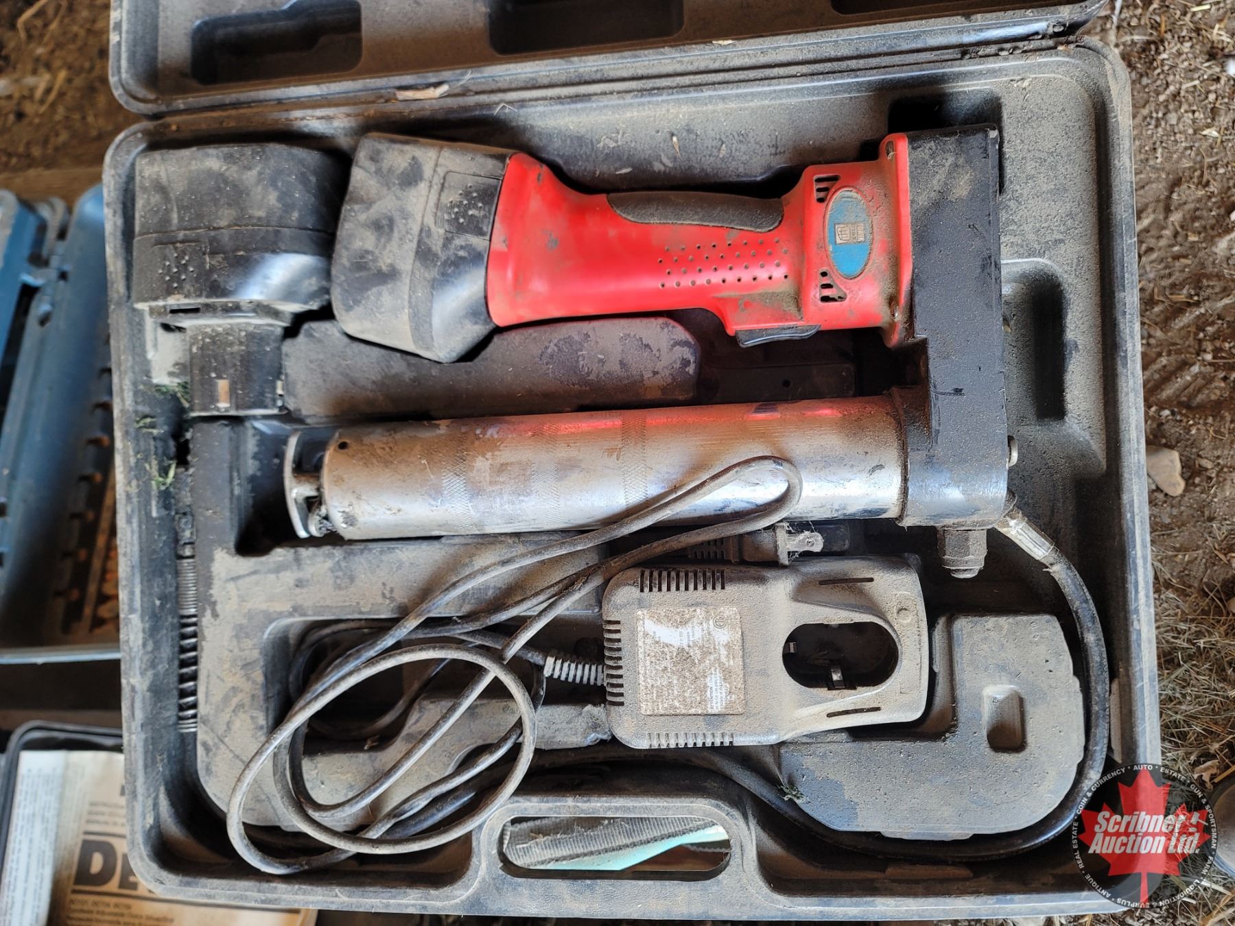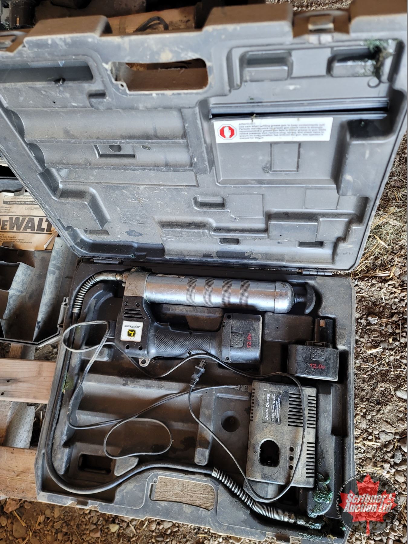 Pallet Lot ~ Variety Power Tools : JD Grease Gun; Powerfist Grease Gun; Cordless Drill; Air Impact; Hammer Stapler; etc
