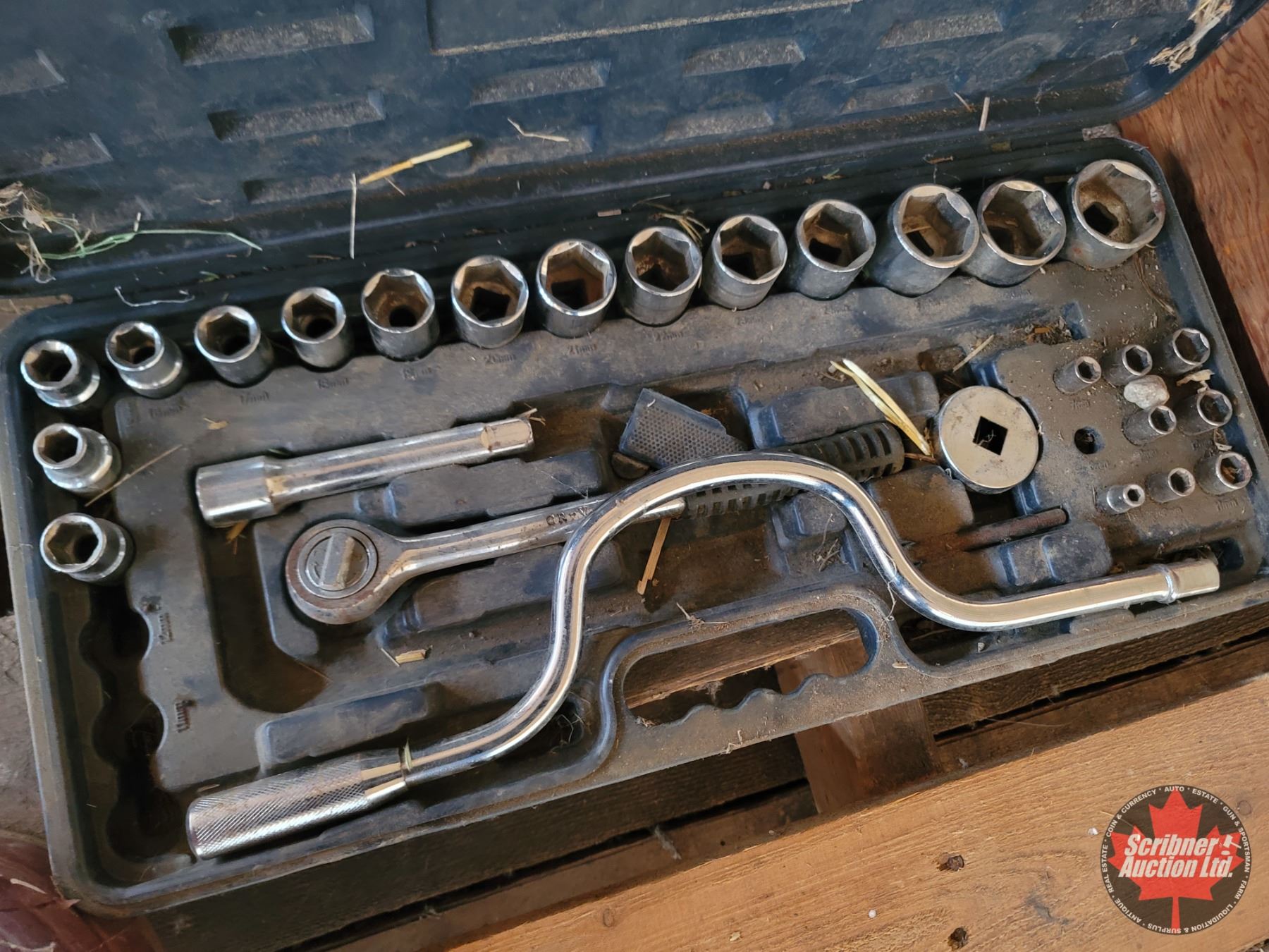 Pallet Lot ~ Variety Tools : Socket Sets; Knife Sharpener; Battery Charger; Construction Adhesive; O