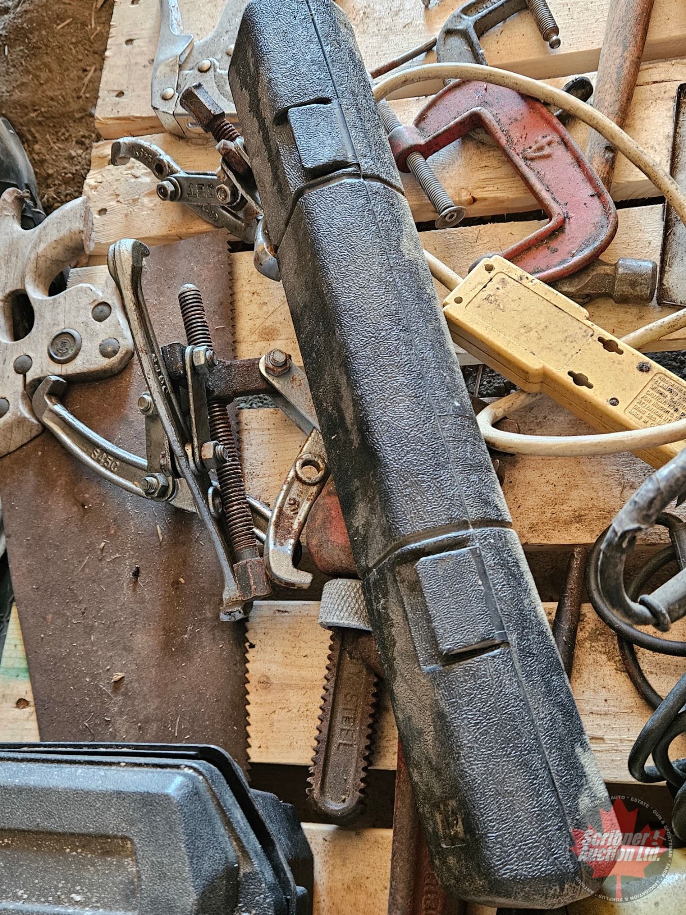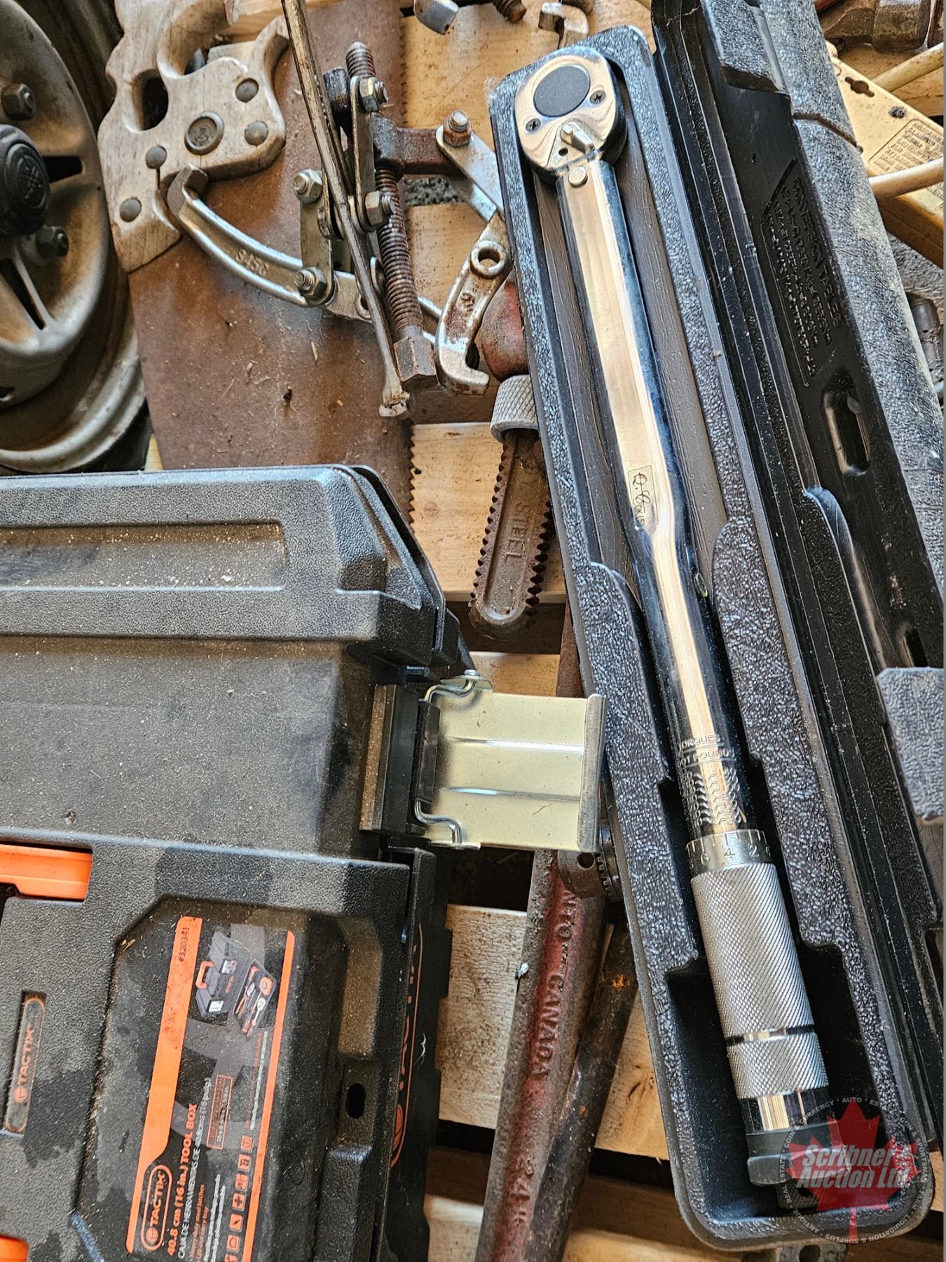 Pallet Lot: Variety Tools (Torque Wrench, Beaning Pullers, Grinder, Socket Set 3/4", Drill, Grease Gun, etc!)