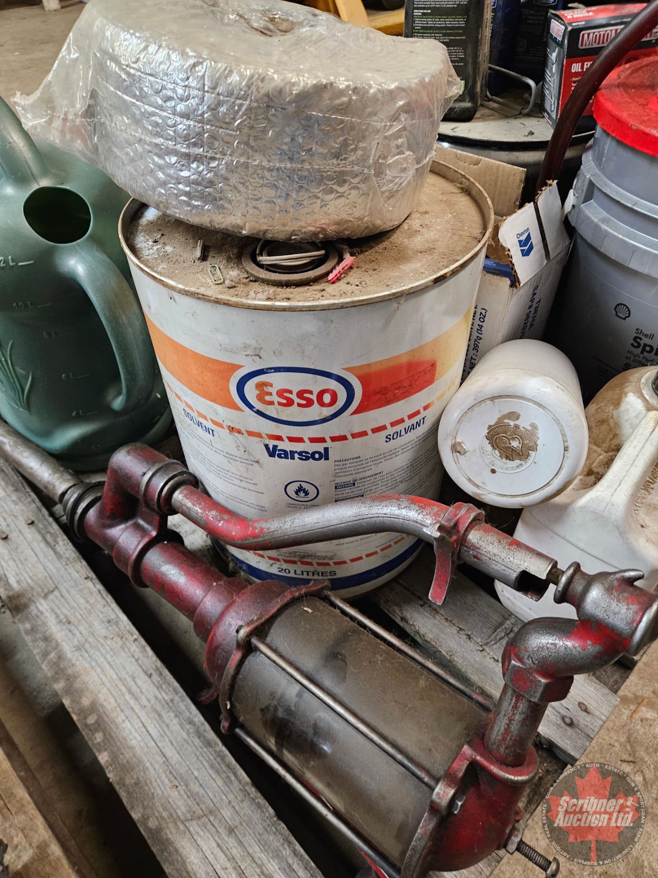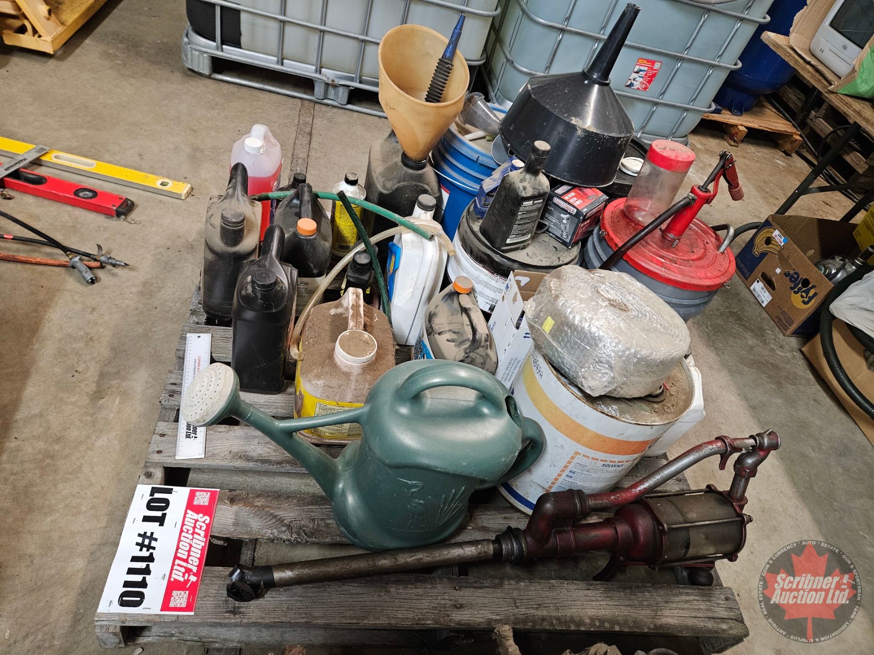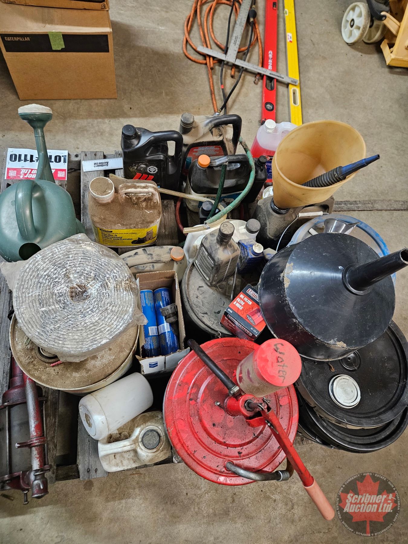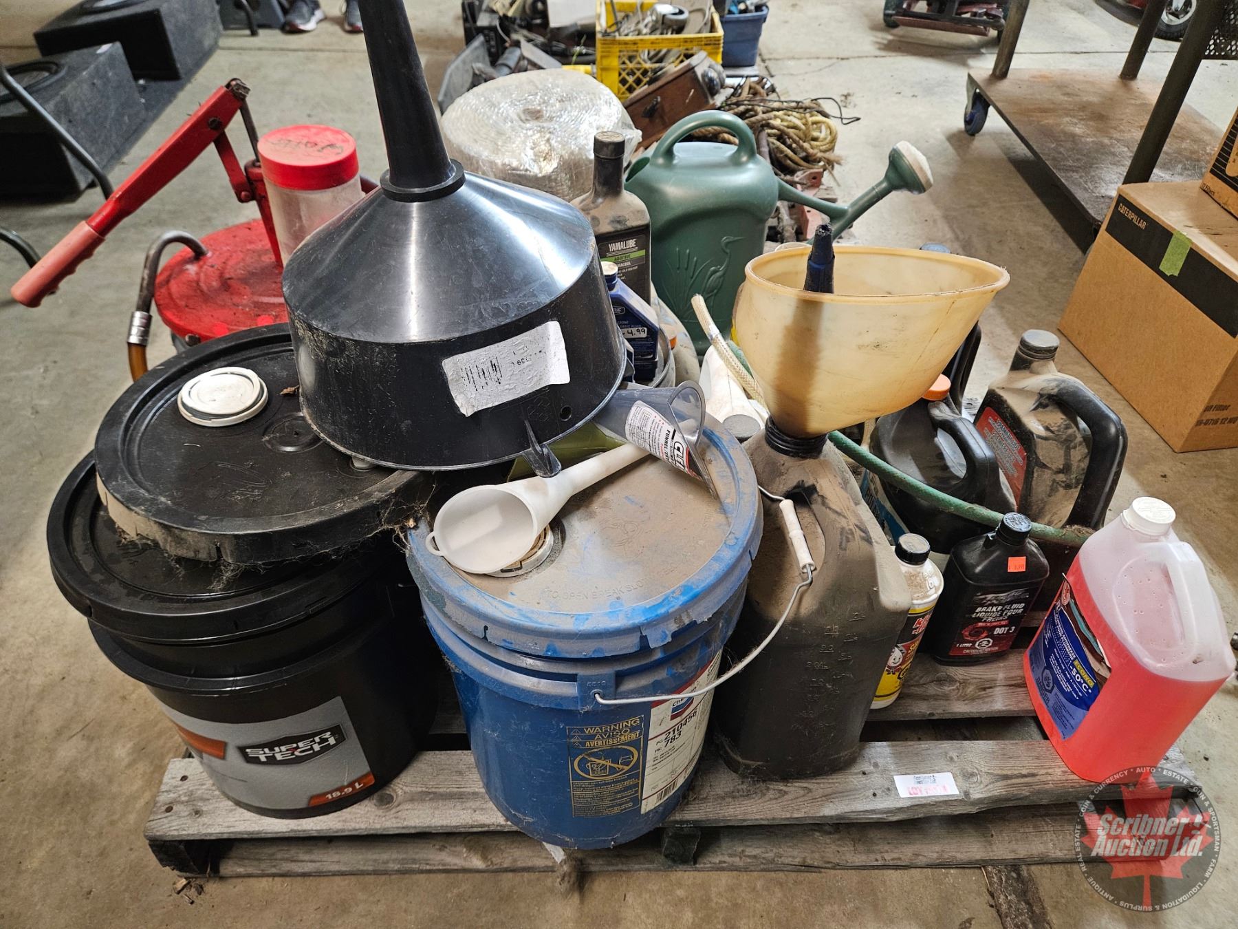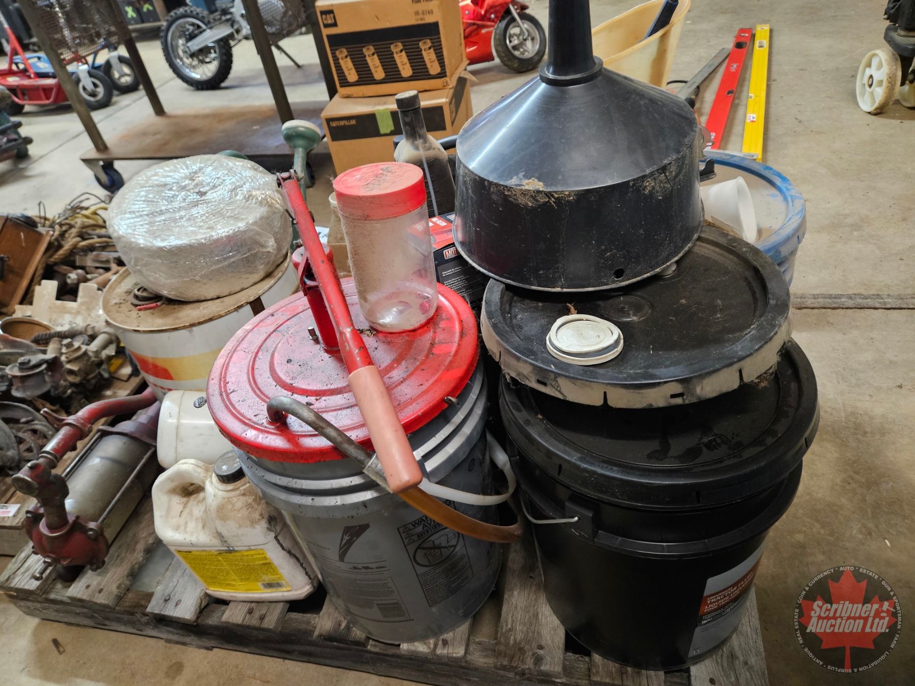 Pallet Lot: Variety of Oil & Grease (Partial Pails) ; Funnels & Barrel Pump