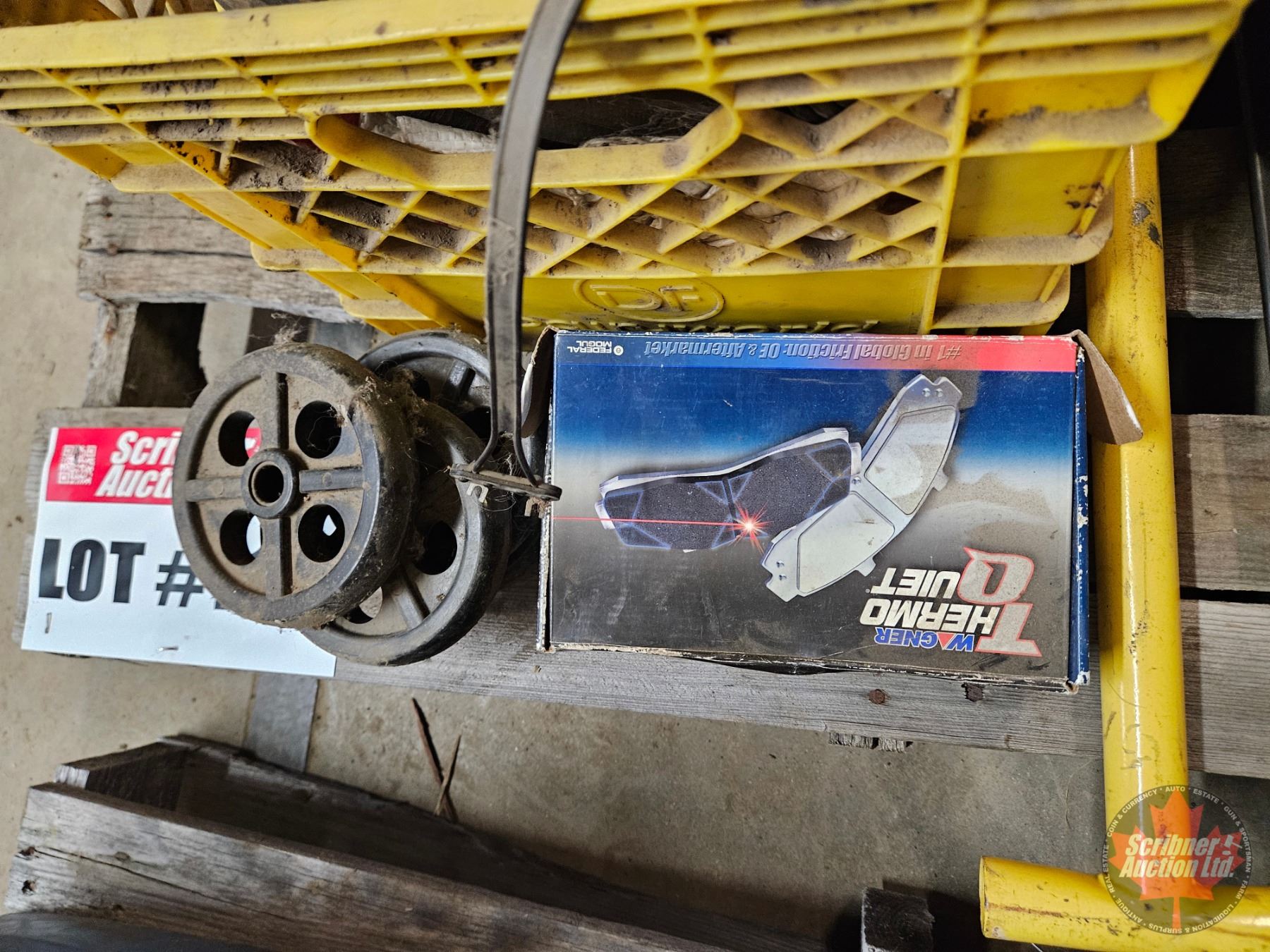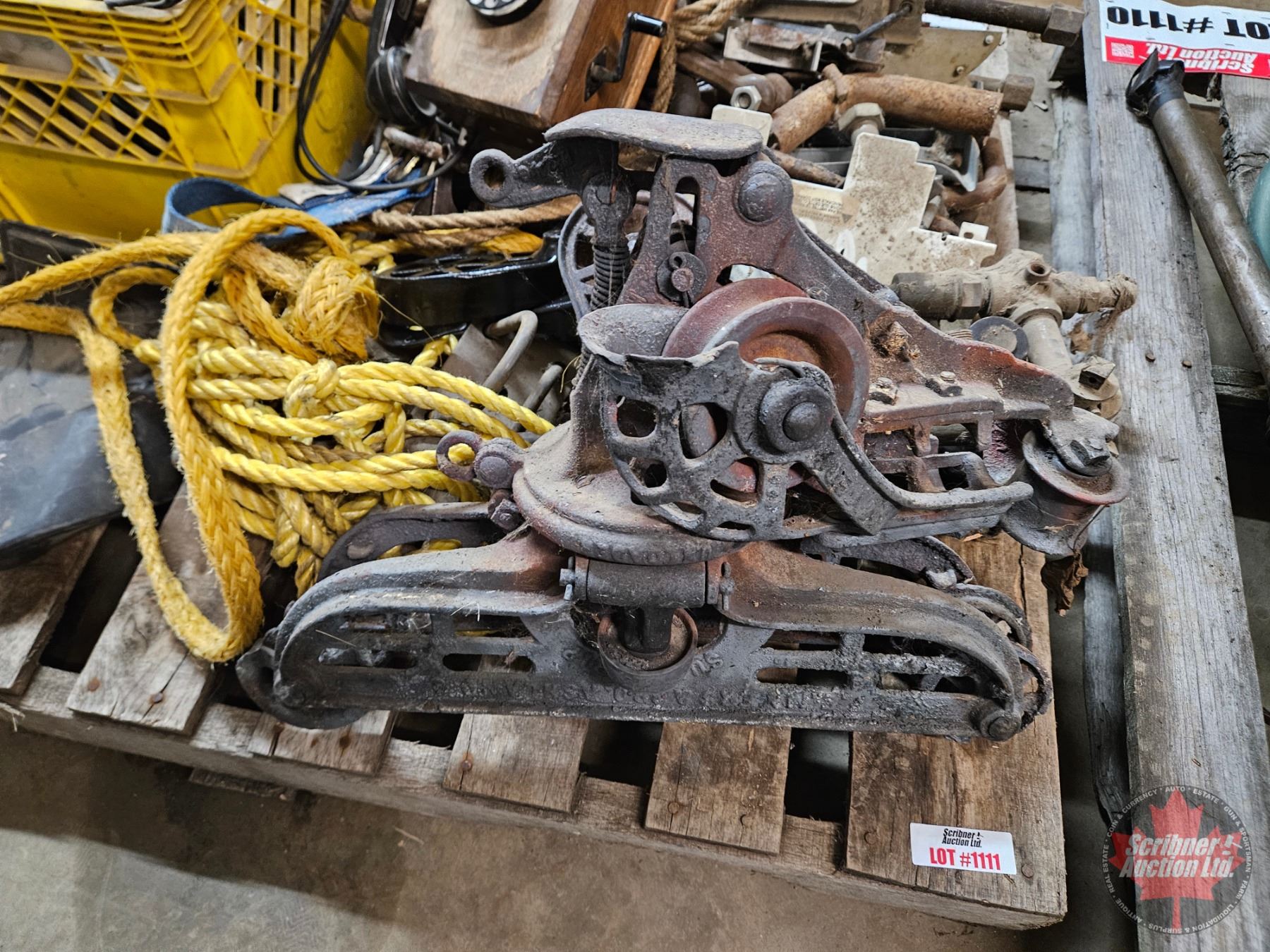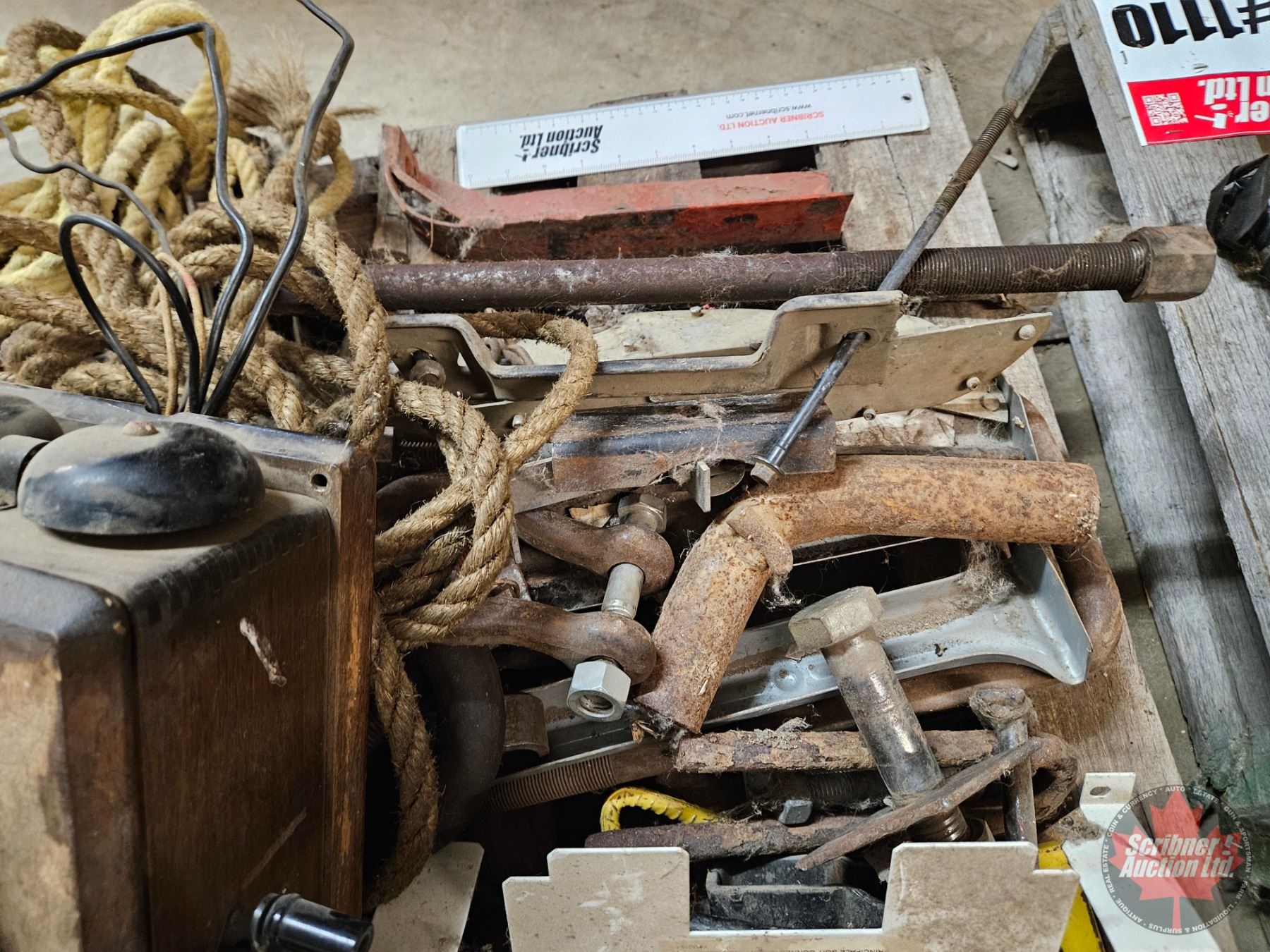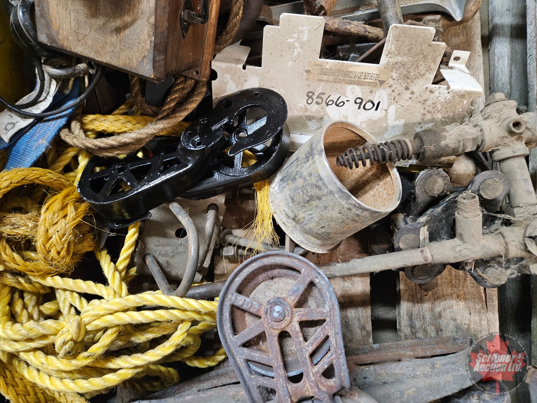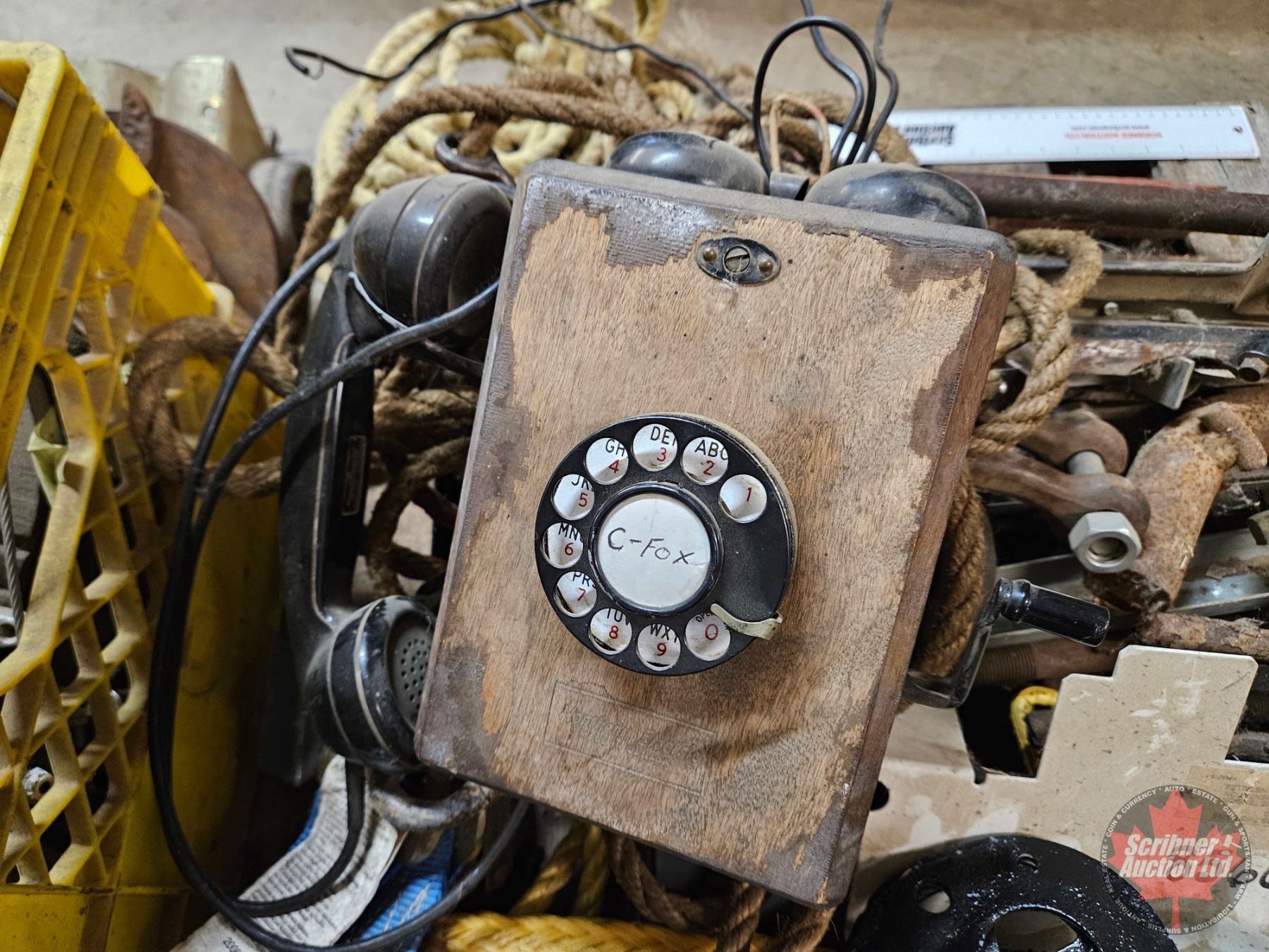 Pallet Lot : Variety of Rustic Antiques ; Pullies & Wheels ; Telephone ; etc