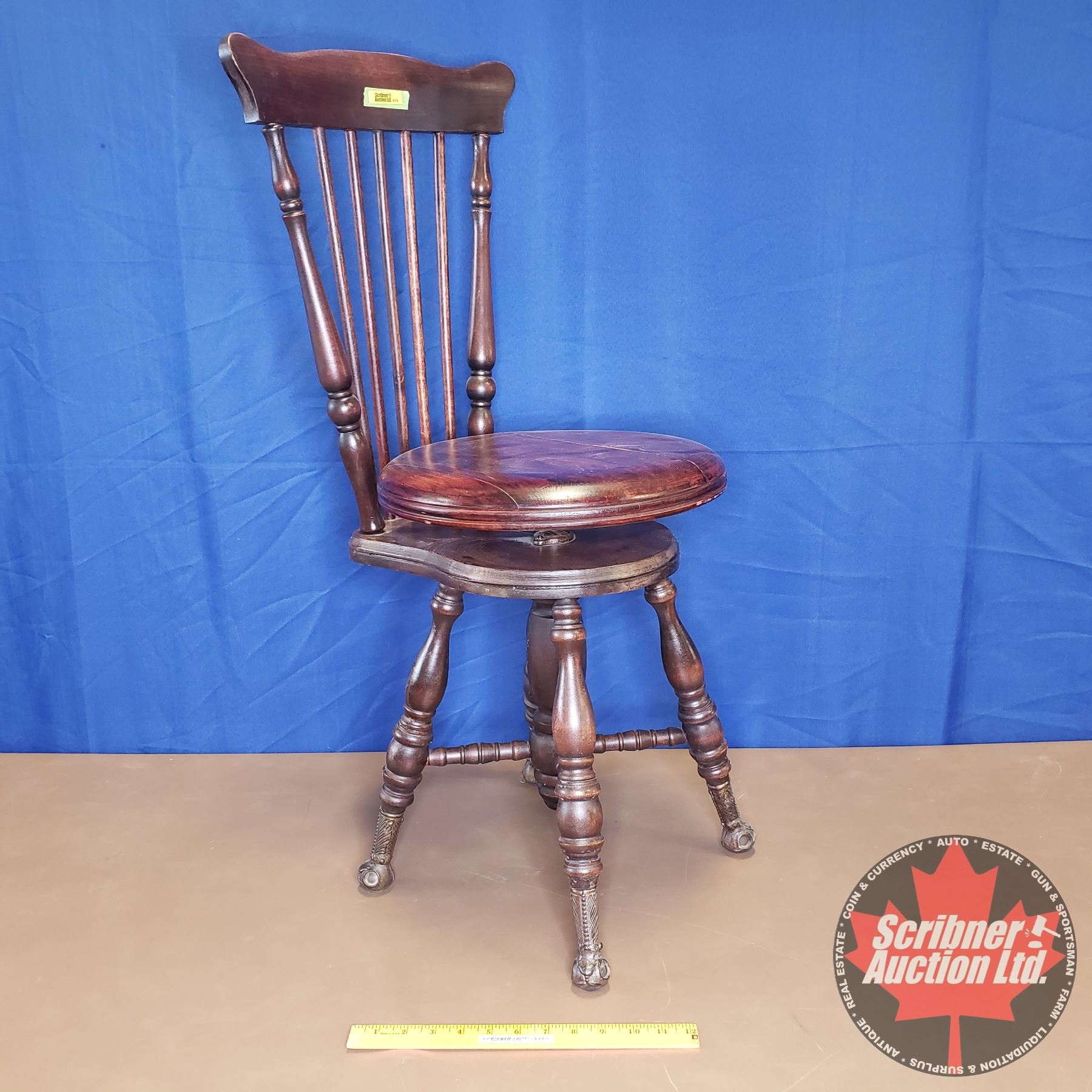 Piano Stool w/Spindle Back & Glass Ball Foot (35"H)