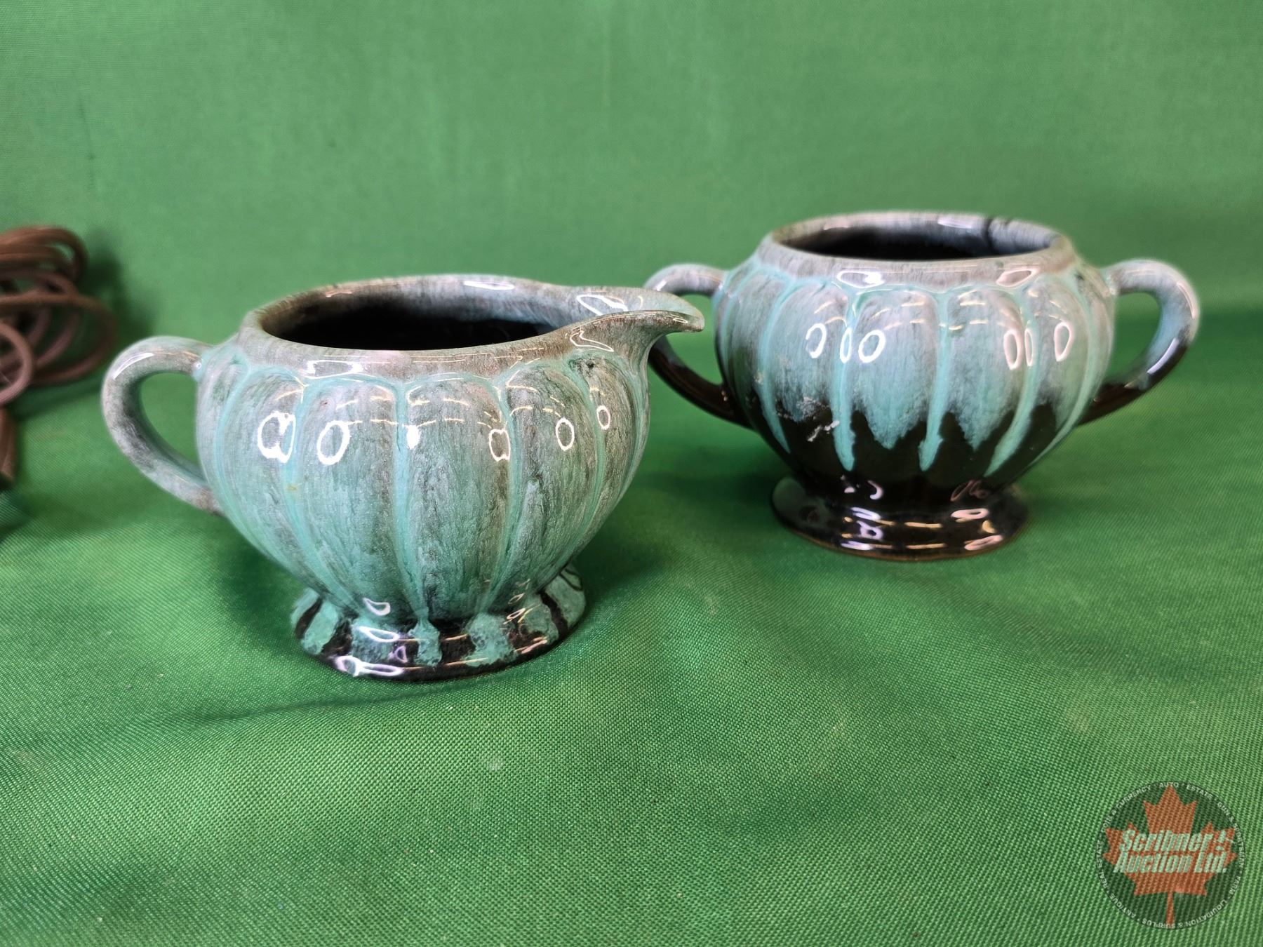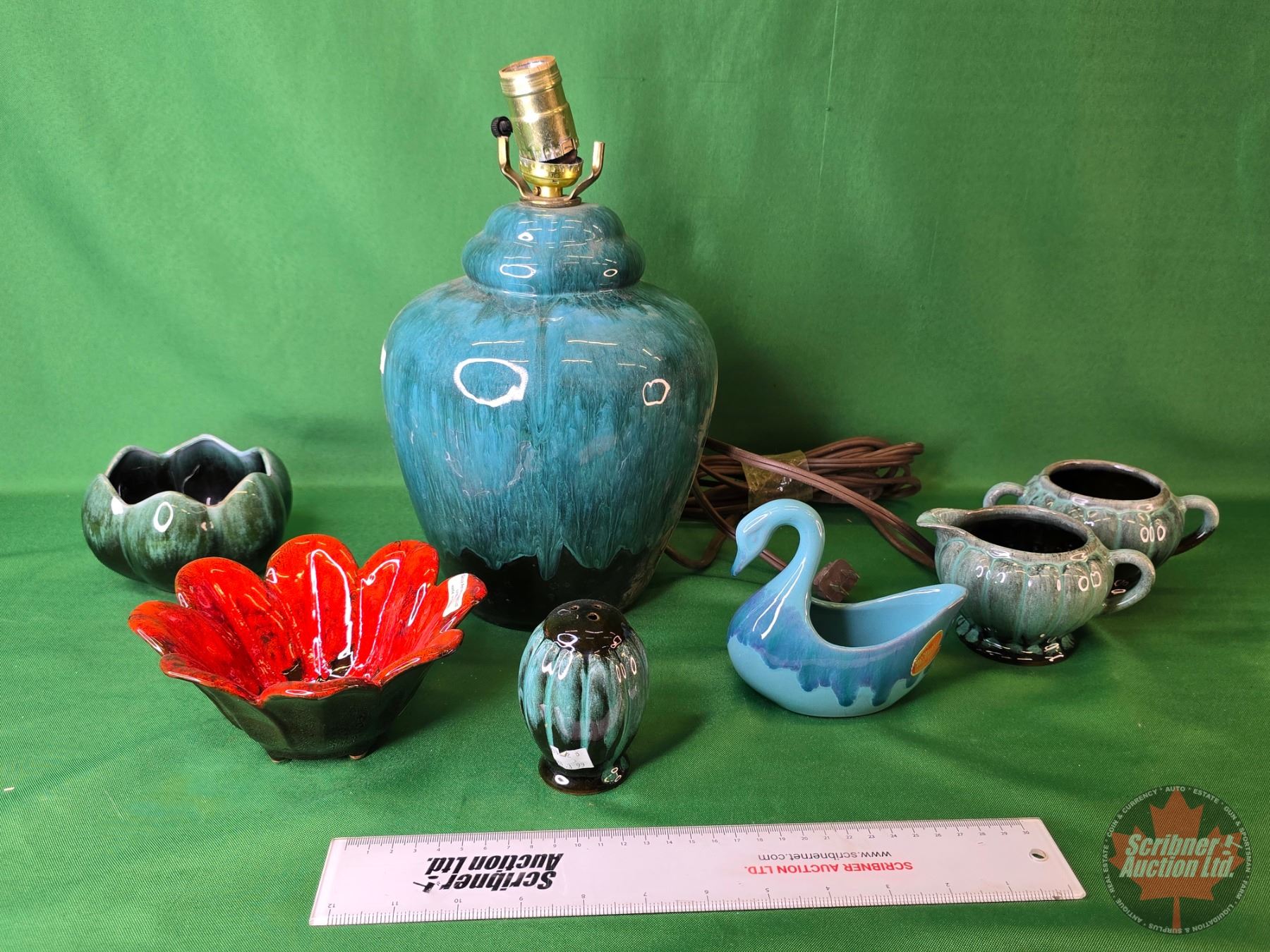 Pottery Collector Group : Blue Mountain Pottery Lamp, Cream & Sugar, & Canuck Pottery Bowl, Etc!