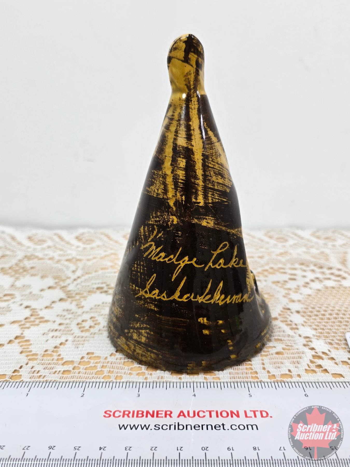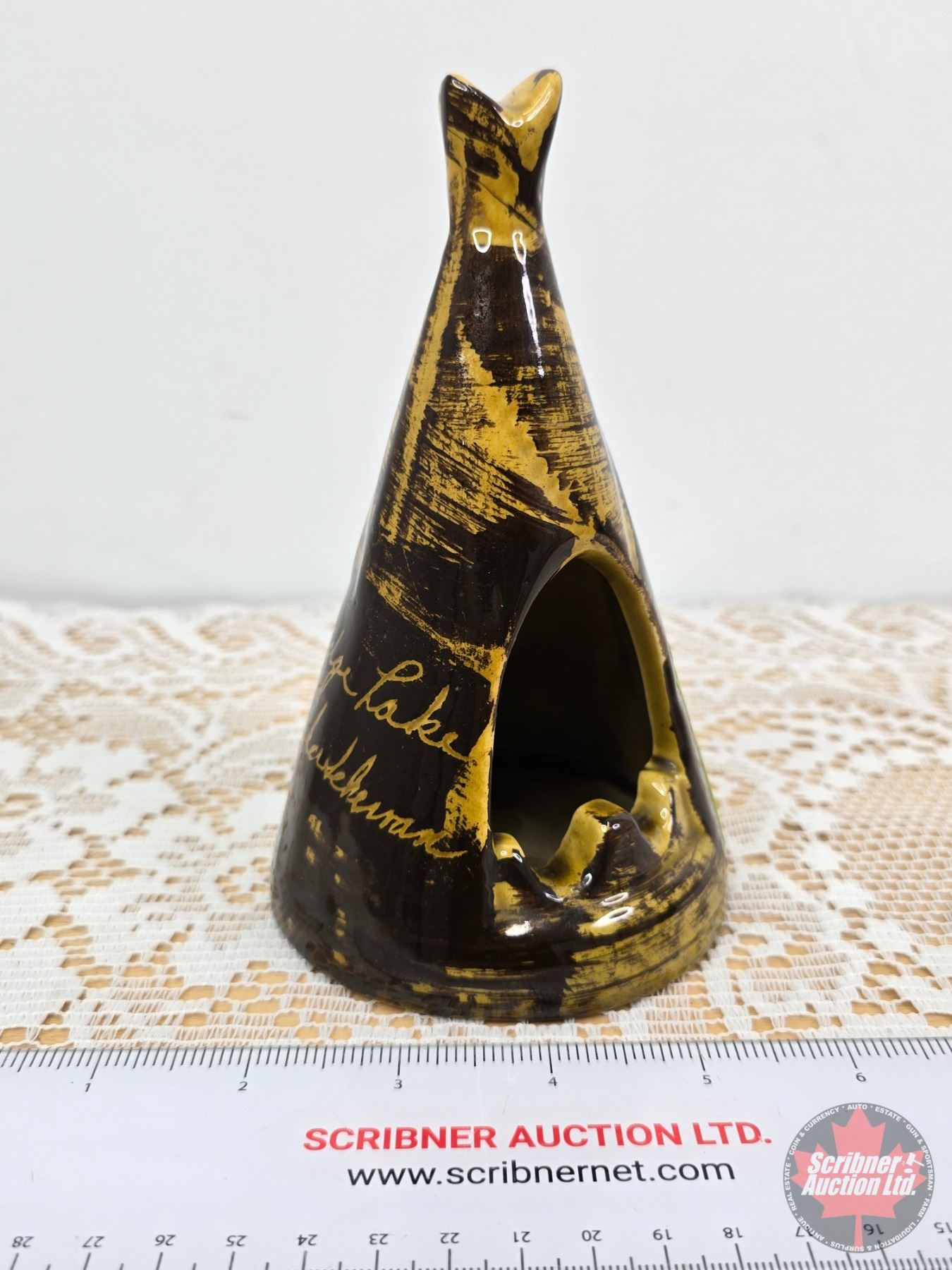 Pottery Tee-Pee Ashtray "Madge Lake Sask" (6-1/4"H) (SEE PICS!)
