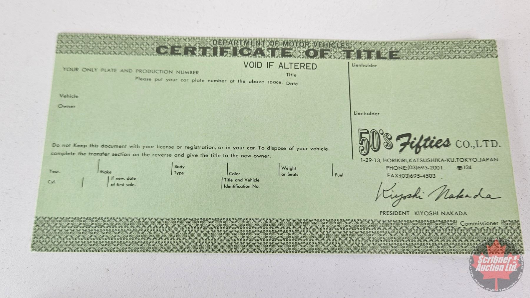 ANY ITEMS THAT HAVE NOT BEEN CLAIMED AFTER 30 DAYS WILL BE CONSIDERED ABANDONED and become the property of Scribner Auction Ltd. Unless you have made arrangements with Scribner Auction!