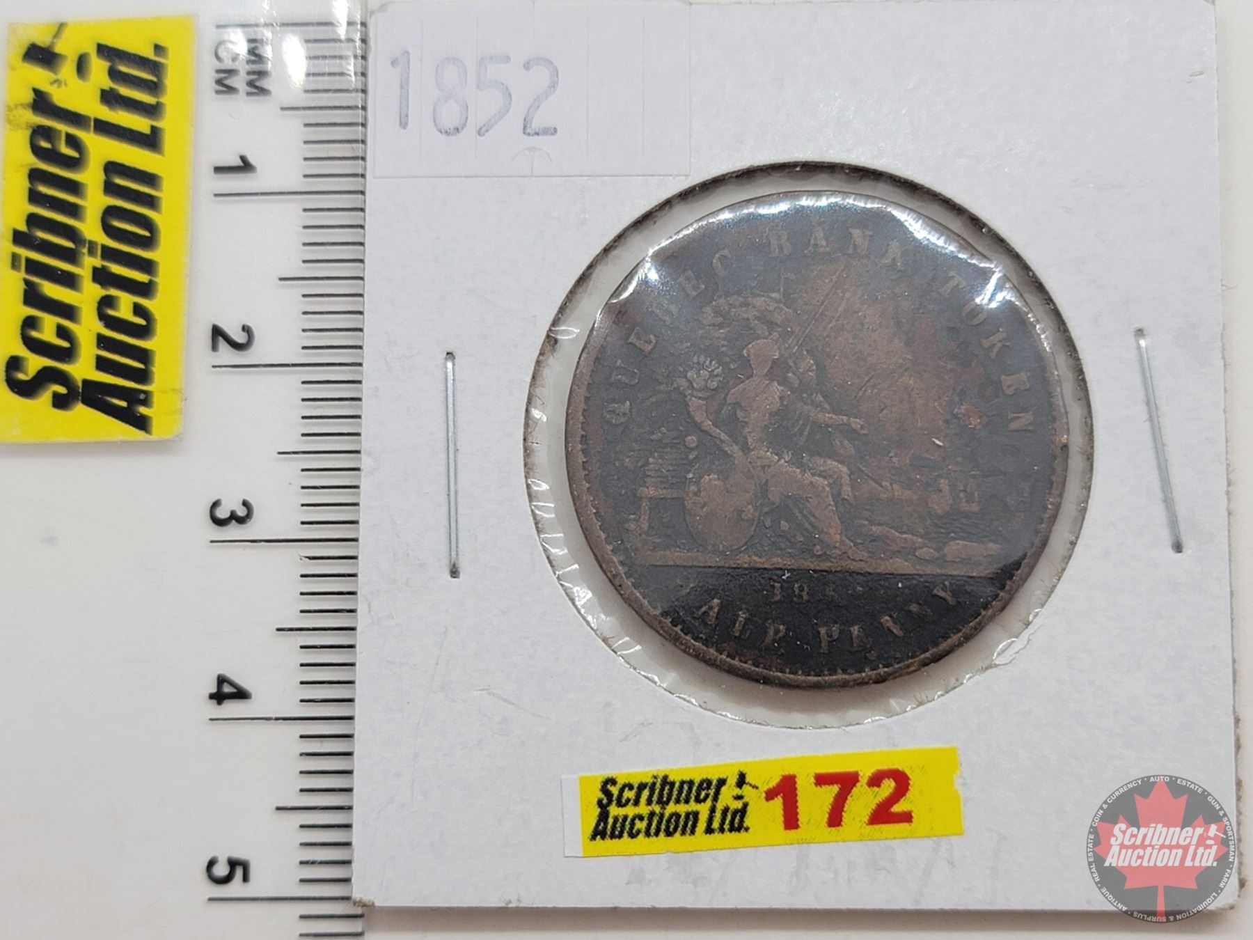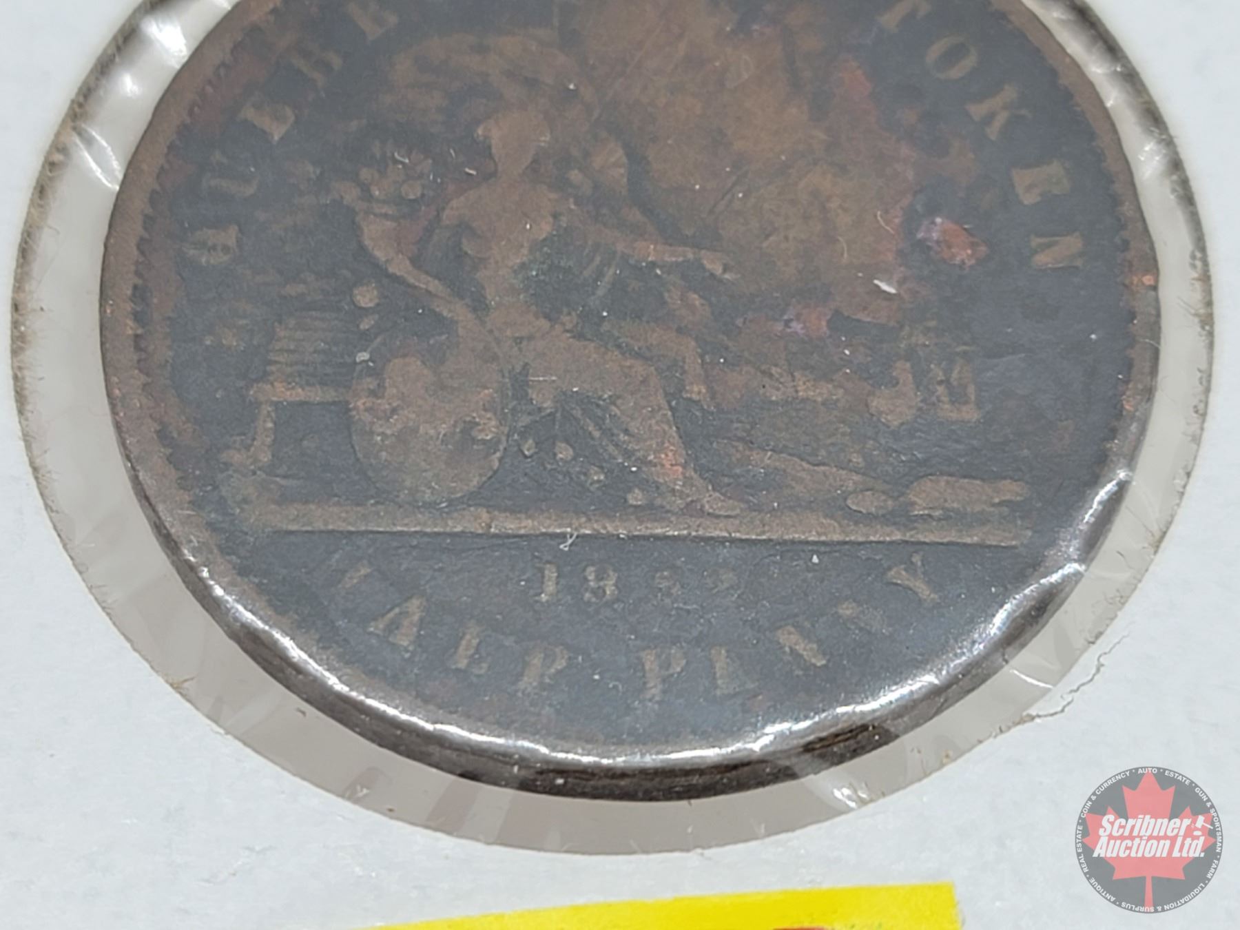 Province du Canada Un Sou : 1852 Half Penny : Quebec Bank Token