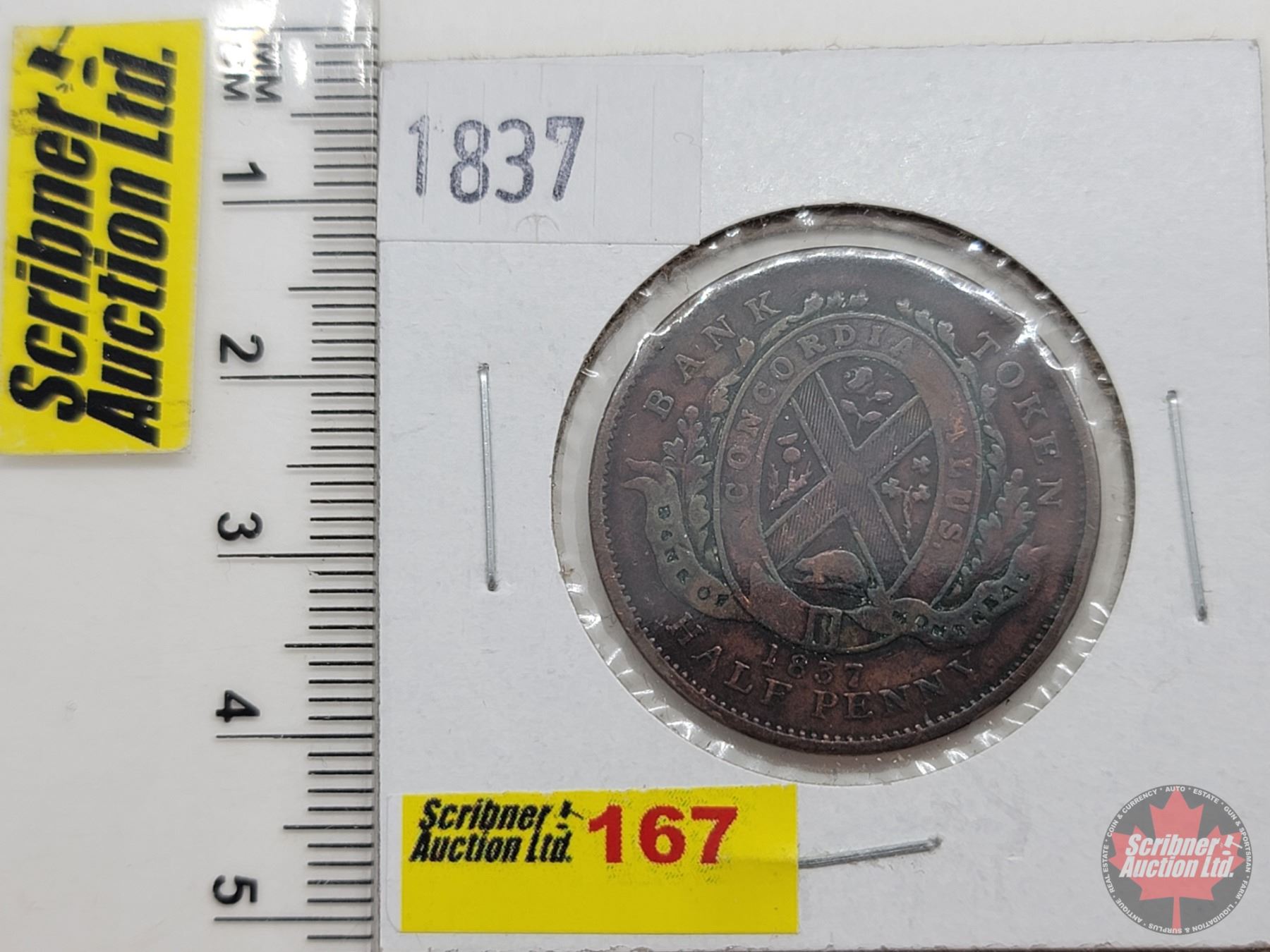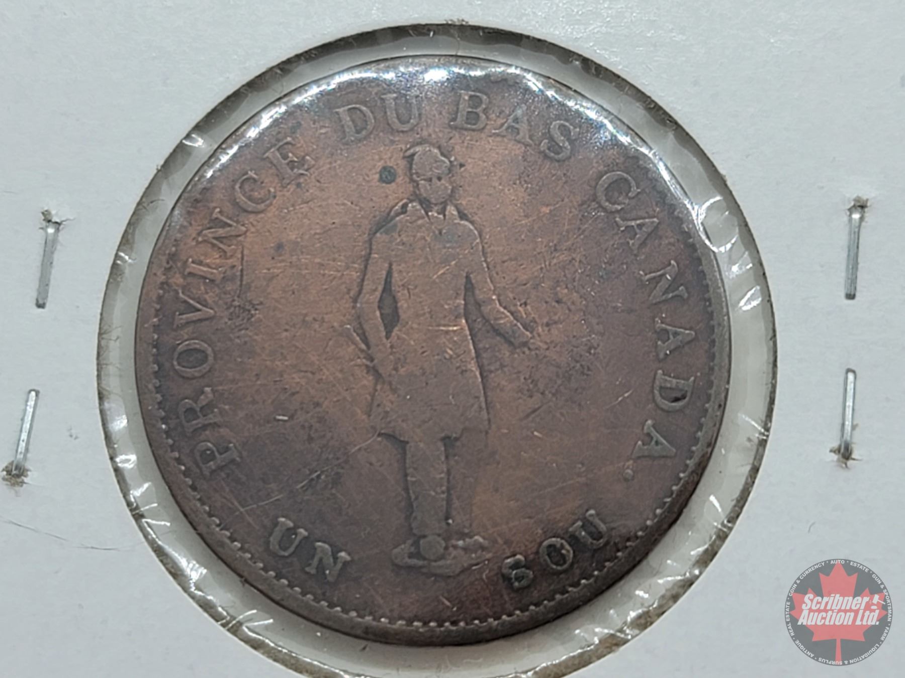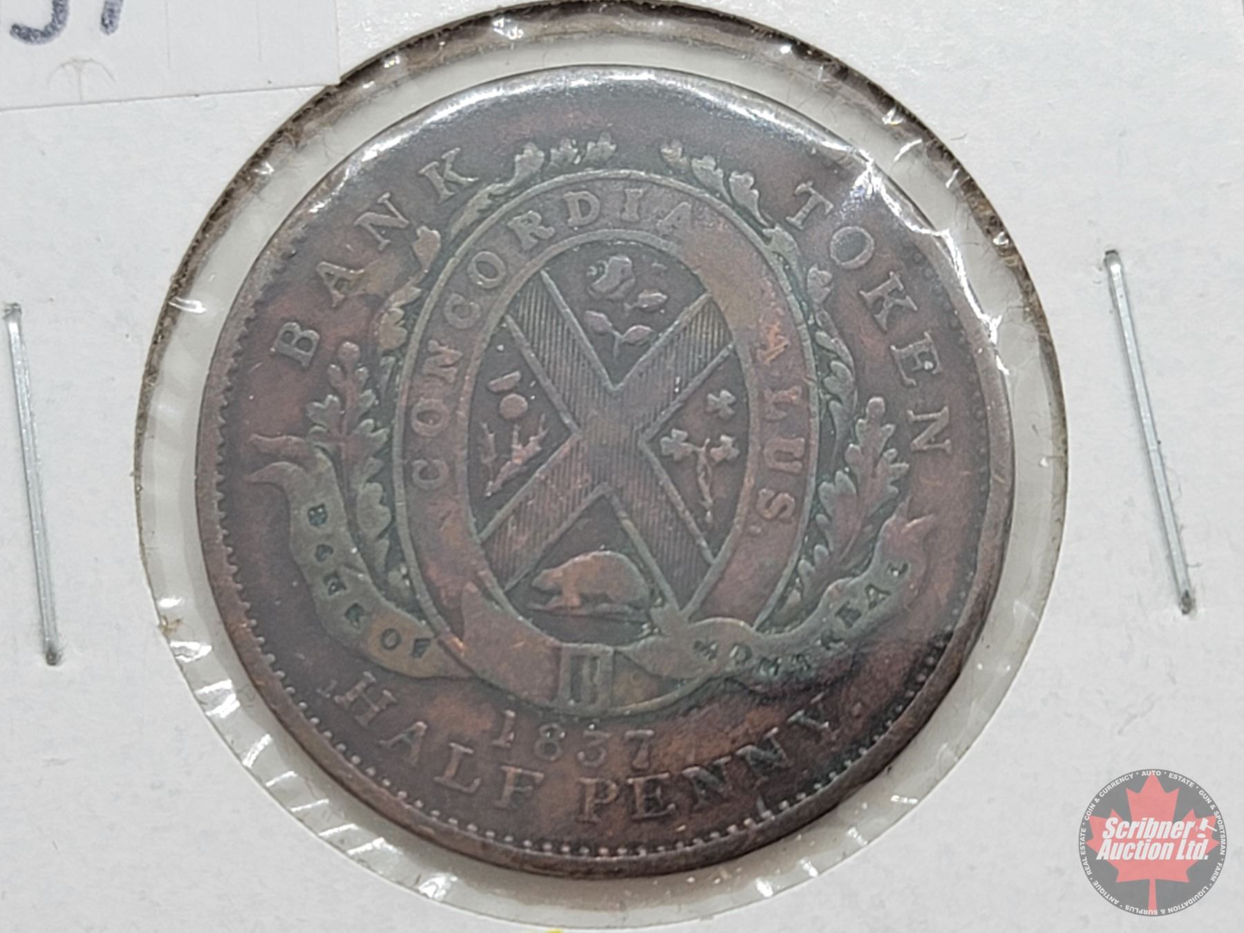 Province du bas Canada : Un Sou : 1837 Half Penny Bank Token