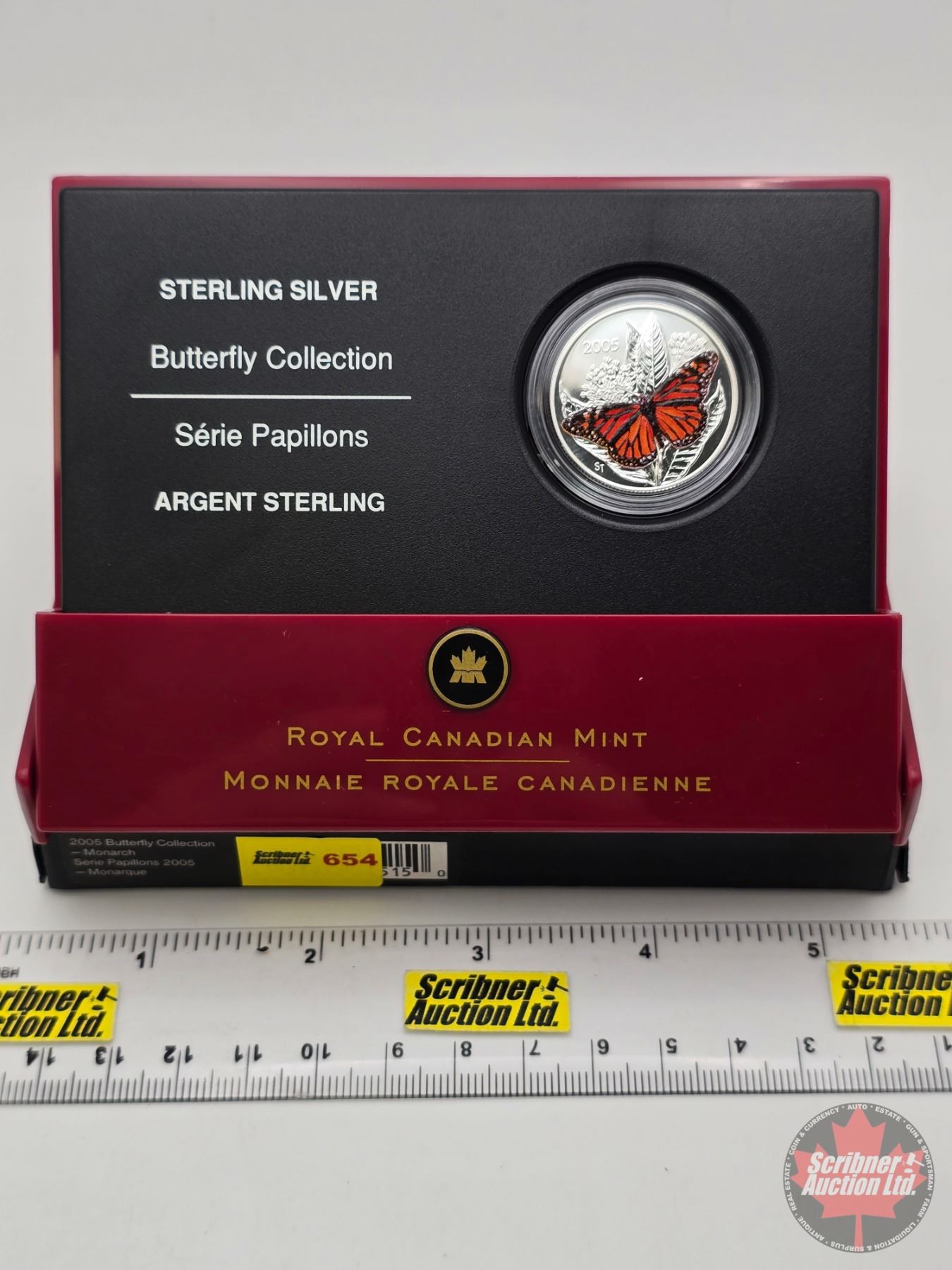 RCM 2005 : 50-Cent Sterling Silver Coin : Butterfly Collection : Monarch (COA #19408) (92.5%) (SEE PICS!)