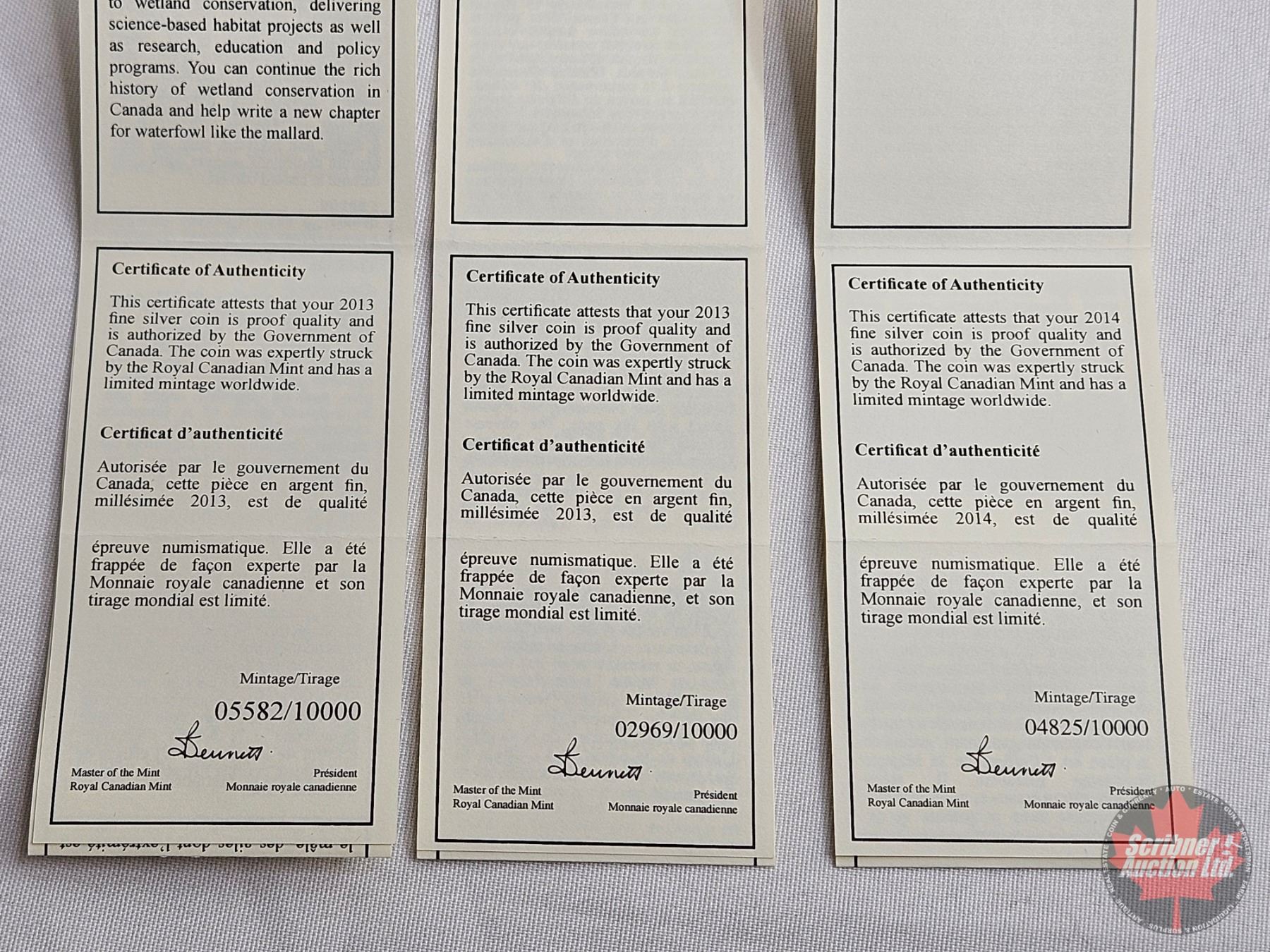RCM 2013 : $10 Fine Silver 3-Coin Set : Ducks of Canada (with Duck Call)