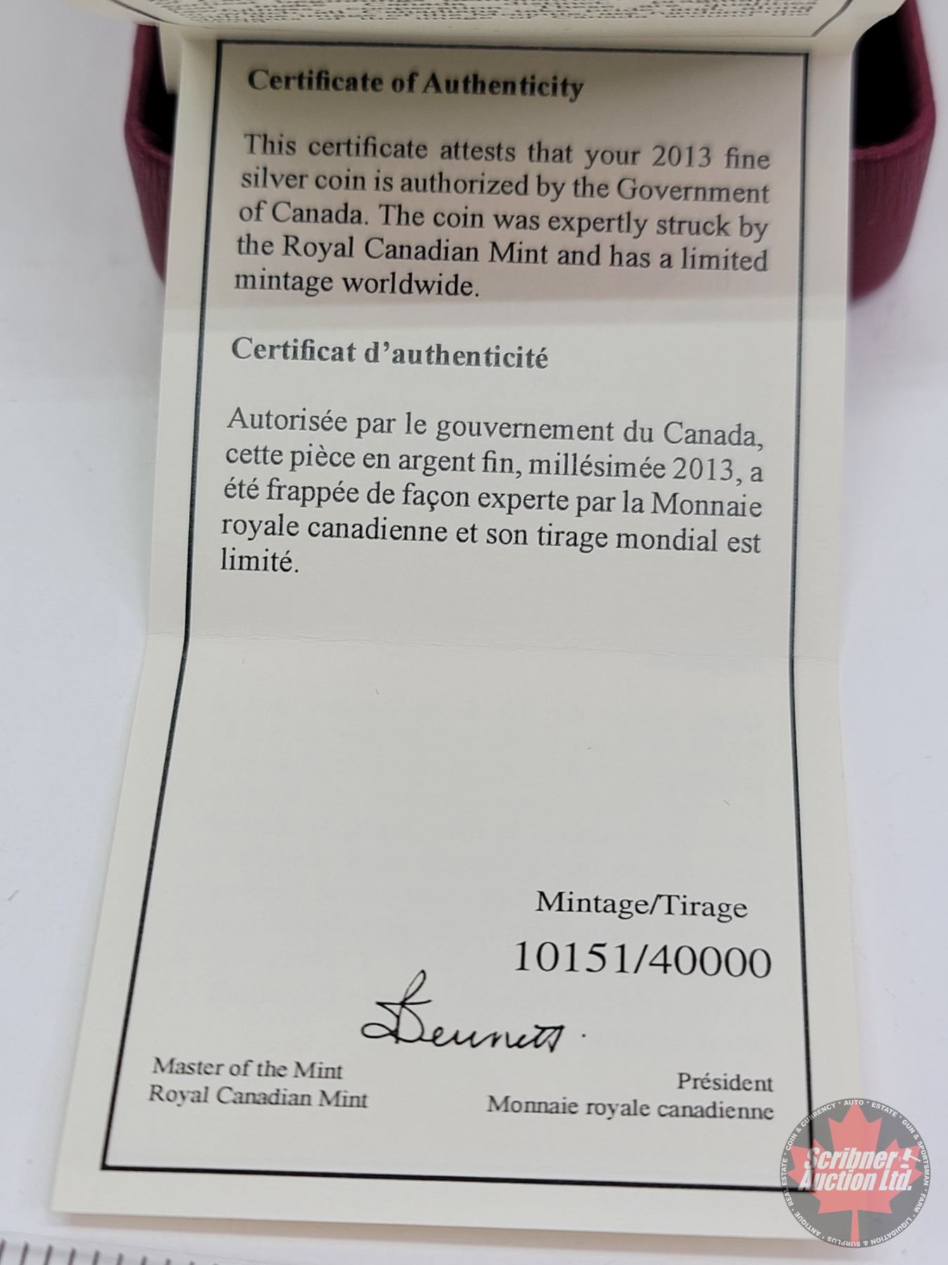 Firearm, Coin & Currency Grades are not the opinion of Scribner Auction Ltd. or any of Scribner Auction Ltd. representatives.