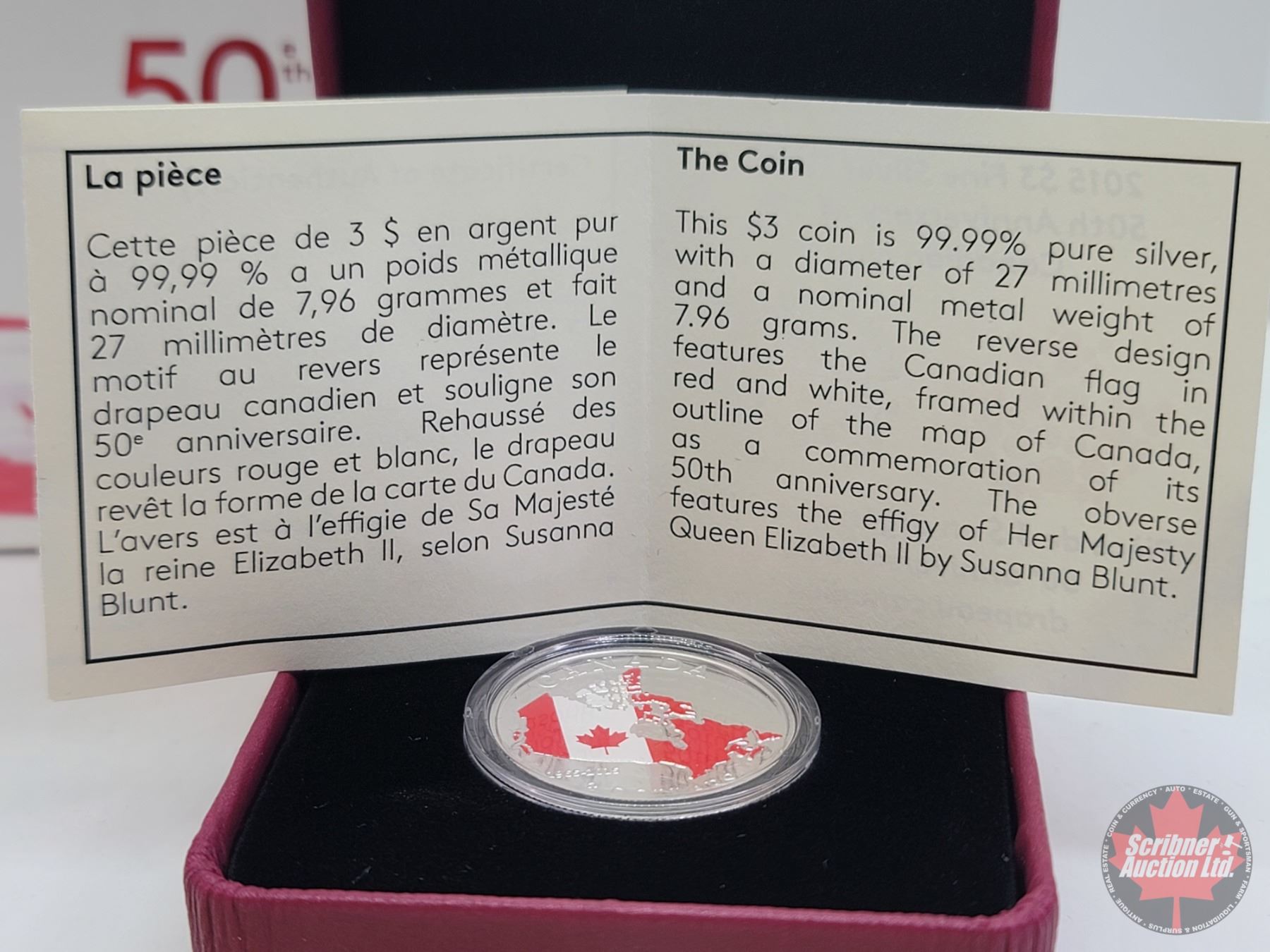 RCM 2015 $3 Fine Silver Coin : 50th Anniversary of the Canadian Flag (COA 99.99%)