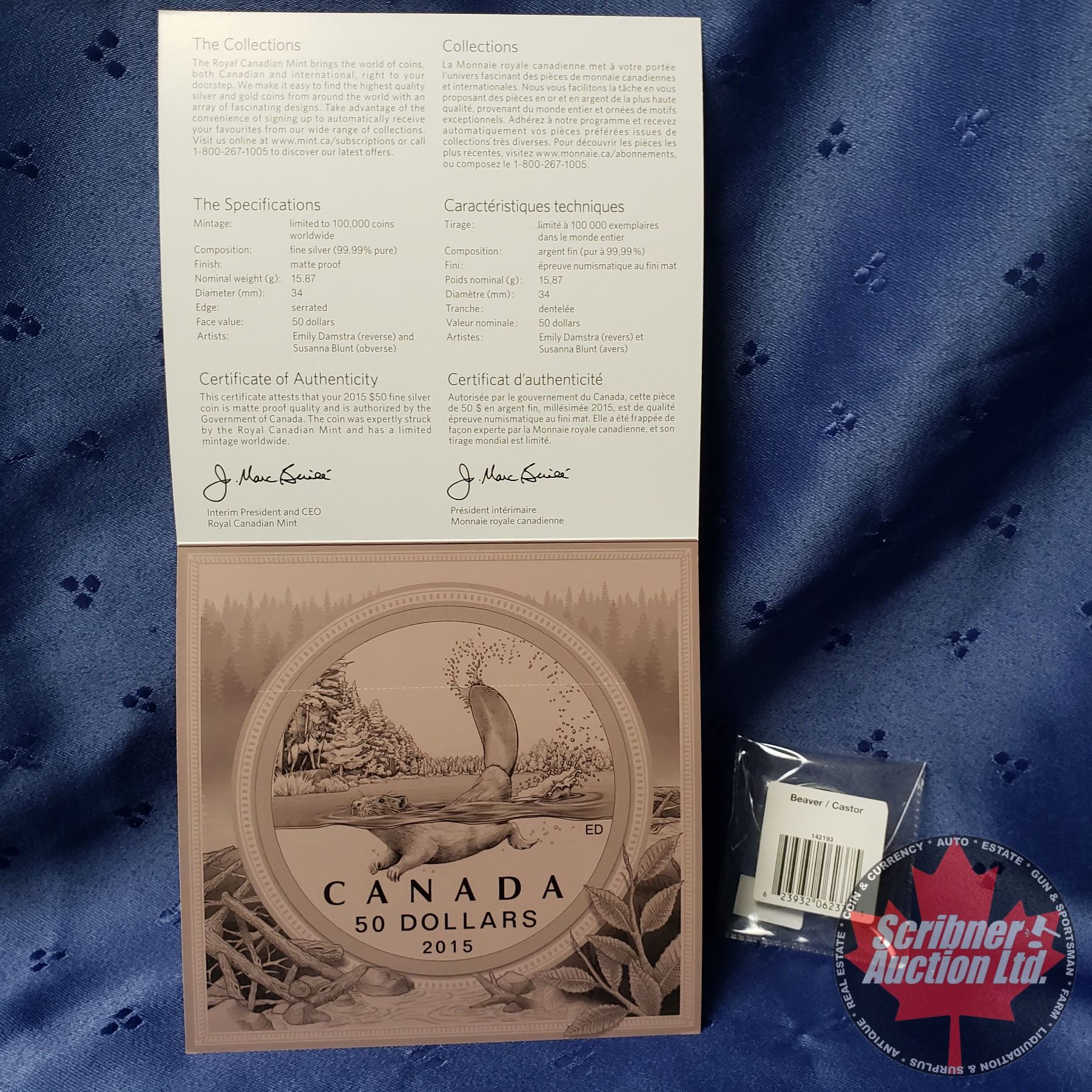 RCM 2015 Canada $50 Fine Silver Coin "Beaver" (99.99%)