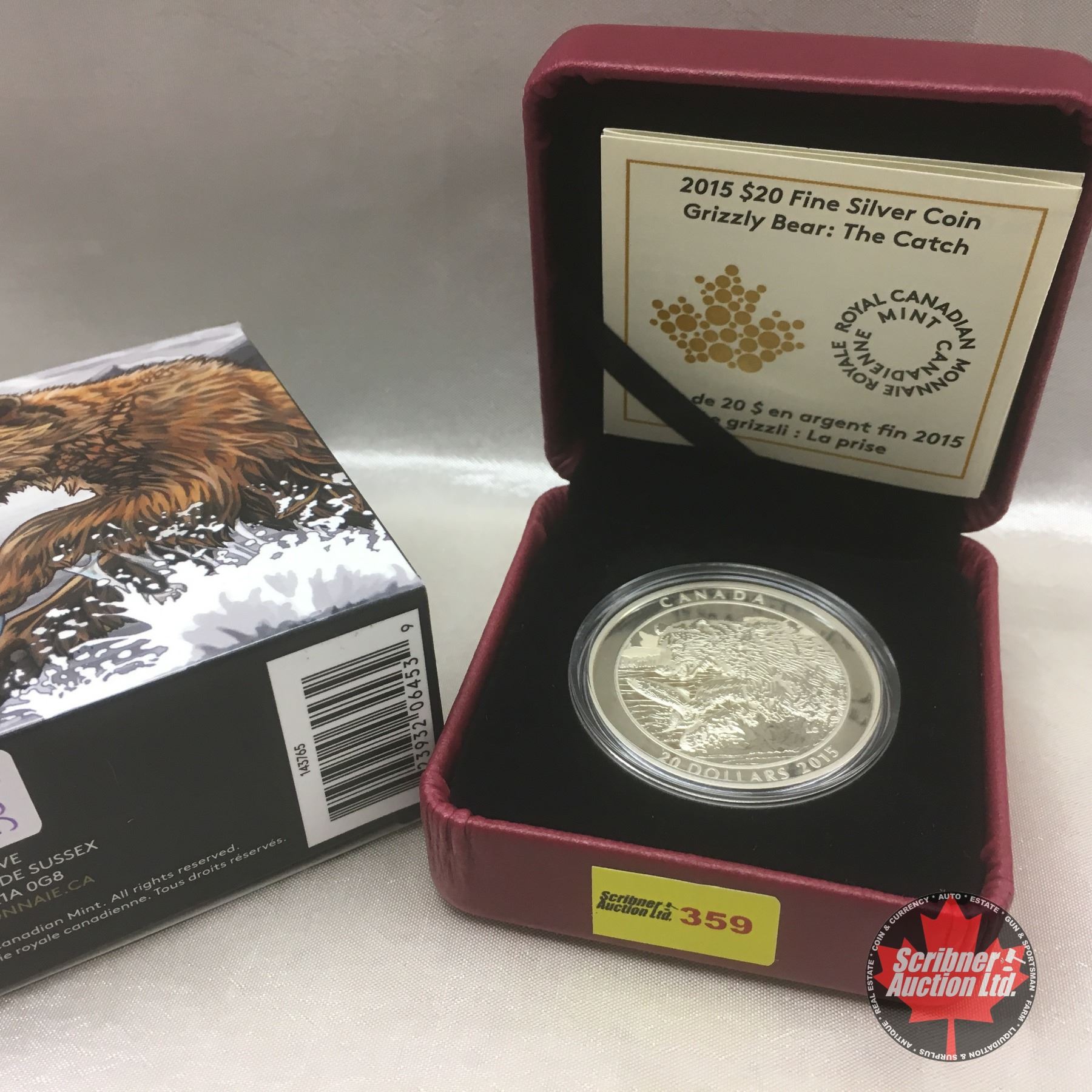 RCM 2015 Grizzly Bear The Catch $20 Fine Silver Coin