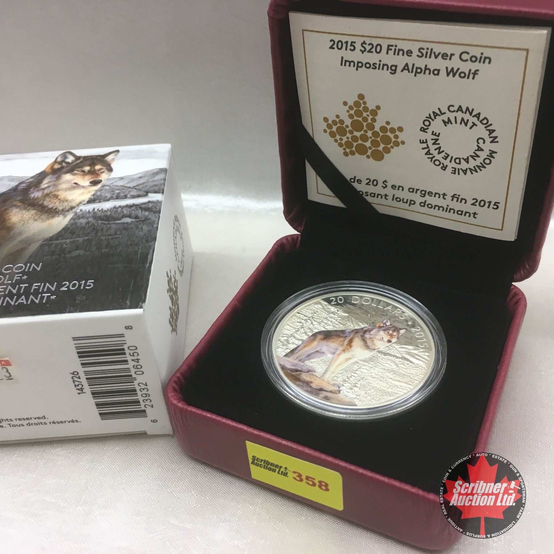 RCM 2015 Imposing Alpha Wolf $20 Fine Silver Coin