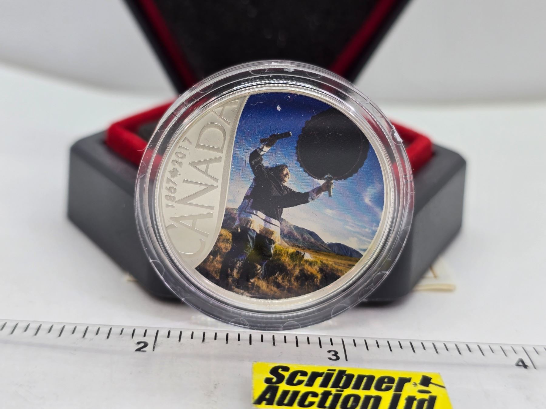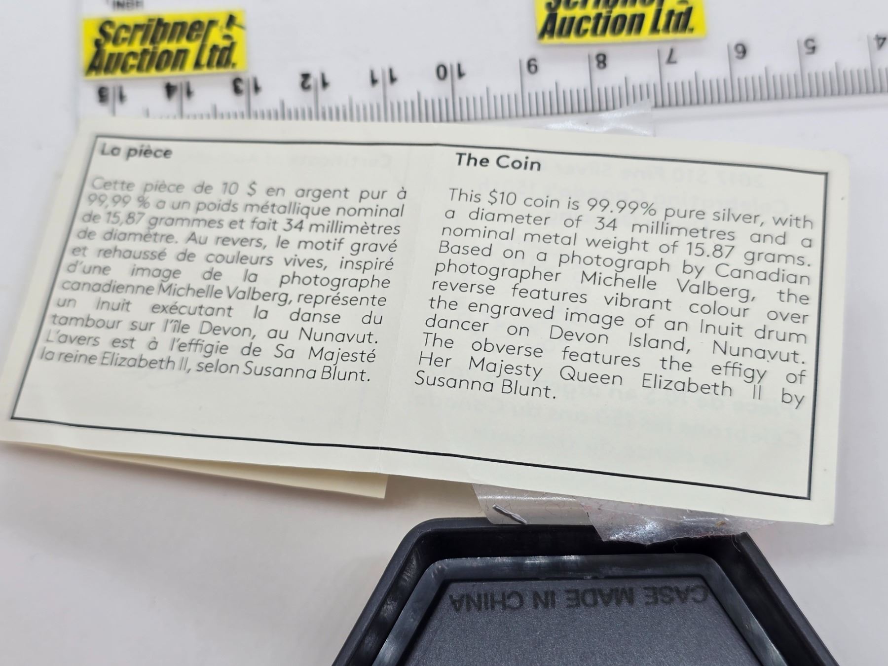 RCM 2017 $10 Fine Silver Coin : Celebrating Canada's 150th : Nunavut – Drum Dancing (COA 99.99%) (Note: Not Original Case, COA Taped to bottom of Custom Case) (SEE PICS!) (Listing & Descriptions are a GUIDE ONLY and are subject to changes, errors, additions or deletions. Please use the provided pictures to satisfy yourself to the Condition and/or Grades. Please Read & Understand All Terms & Conditions for this Auction Sale.)