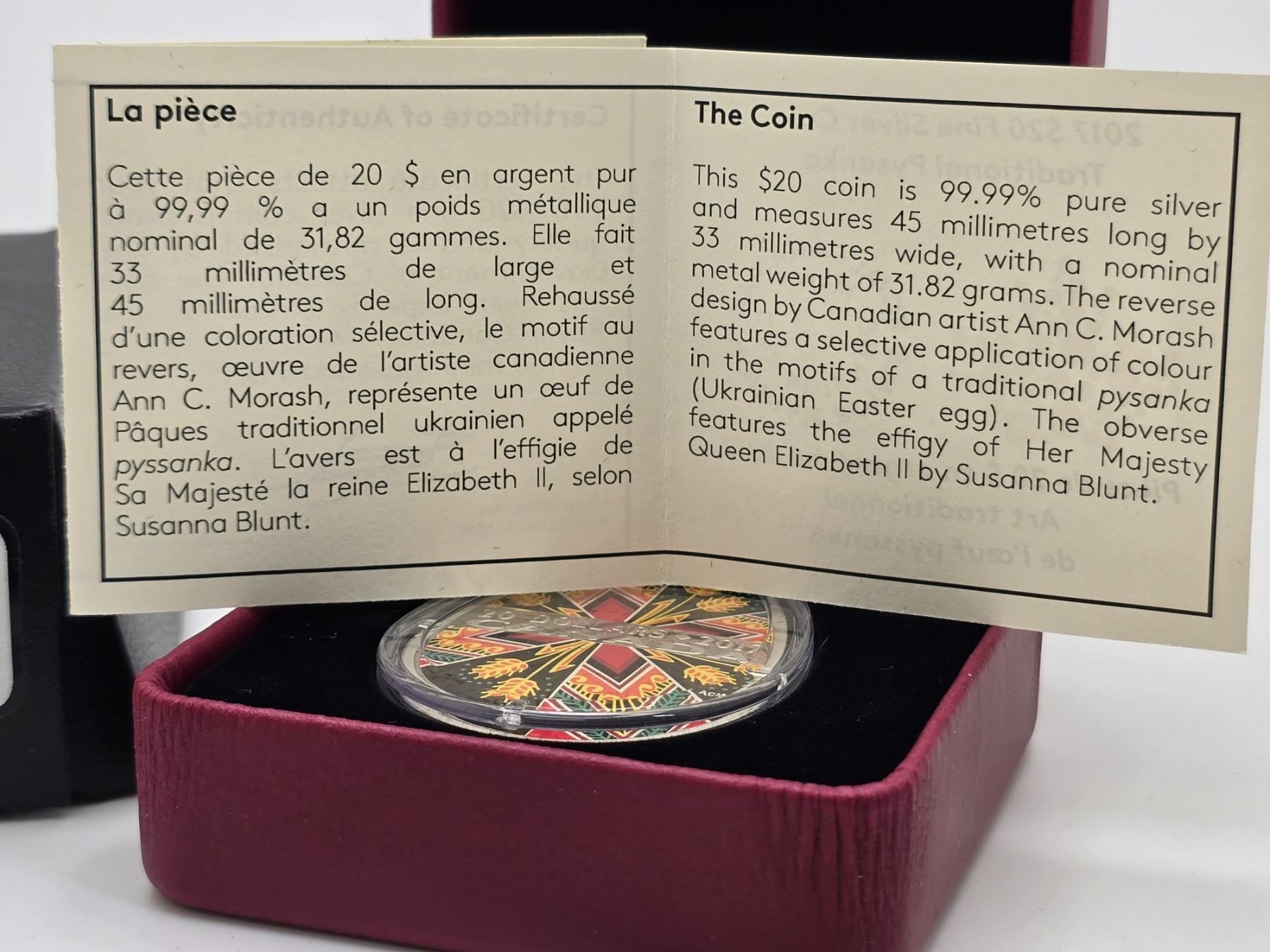 RCM 2017 $20 Fine Silver Coin : Traditional Pysanka (COA 99.99%) (SEE PICS!) (Listing & Descriptions are a GUIDE ONLY and are subject to changes, errors, additions or deletions. Please use the provided pictures to satisfy yourself to the Condition and/or Grades. Please Read & Understand All Terms & Conditions for this Auction Sale.)