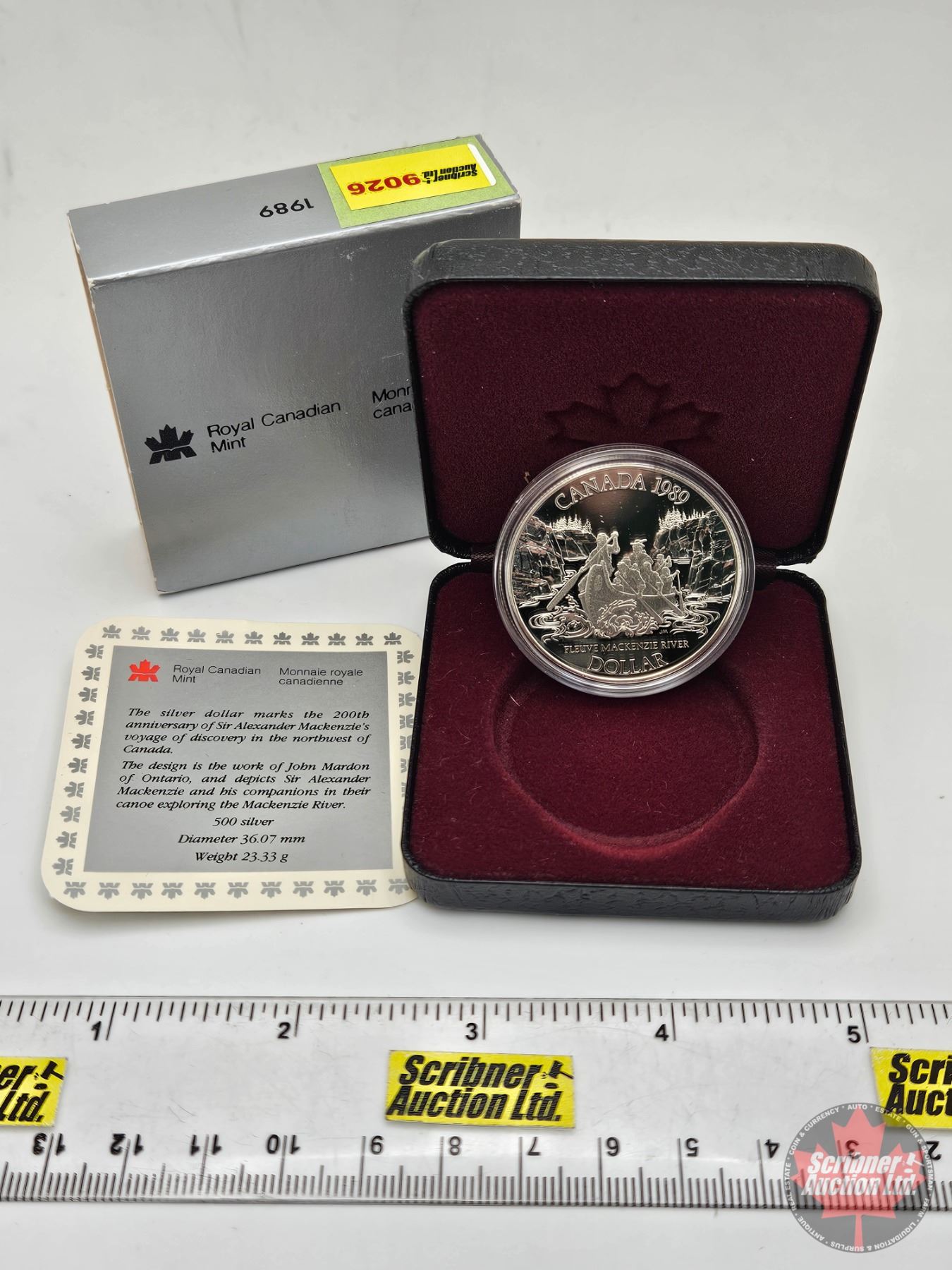 RCM Canada 1989 Fleuve Mackenzie River Silver Dollar : Black Case (SEE PICTURES!)