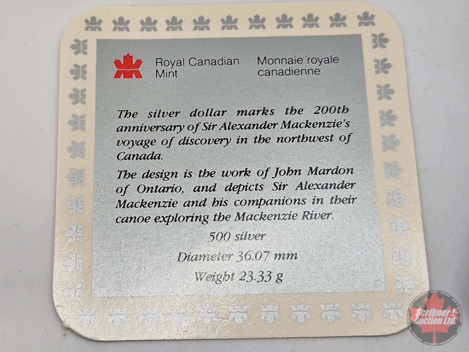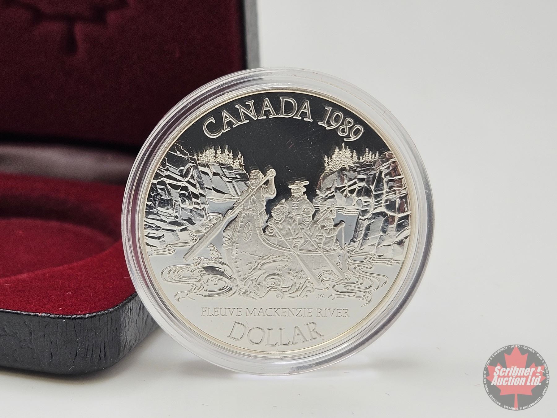 RCM Canada 1989 Fleuve Mackenzie River Silver Dollar : Black Case