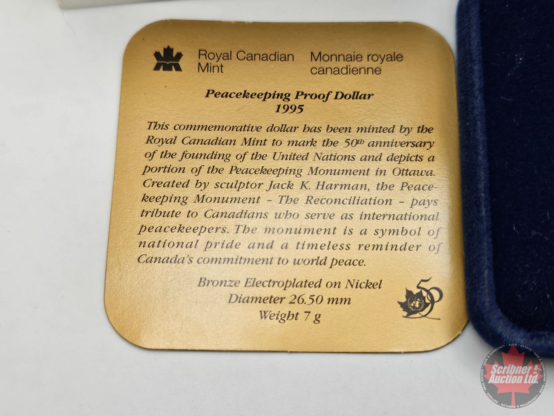 RCM Canada 1995 Peacekeeping Proof Dollar (Blue Velvet Case)