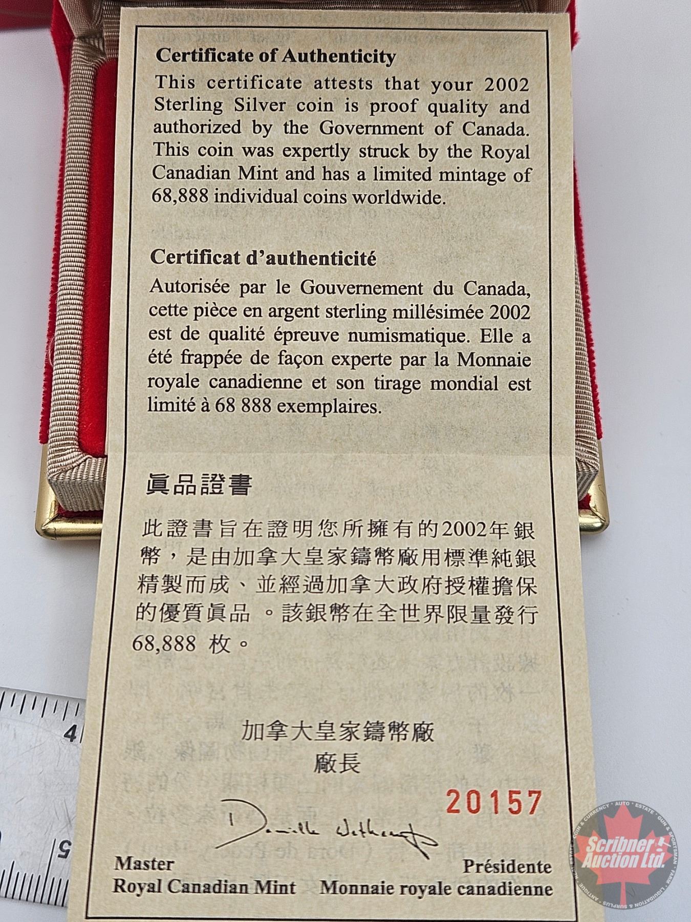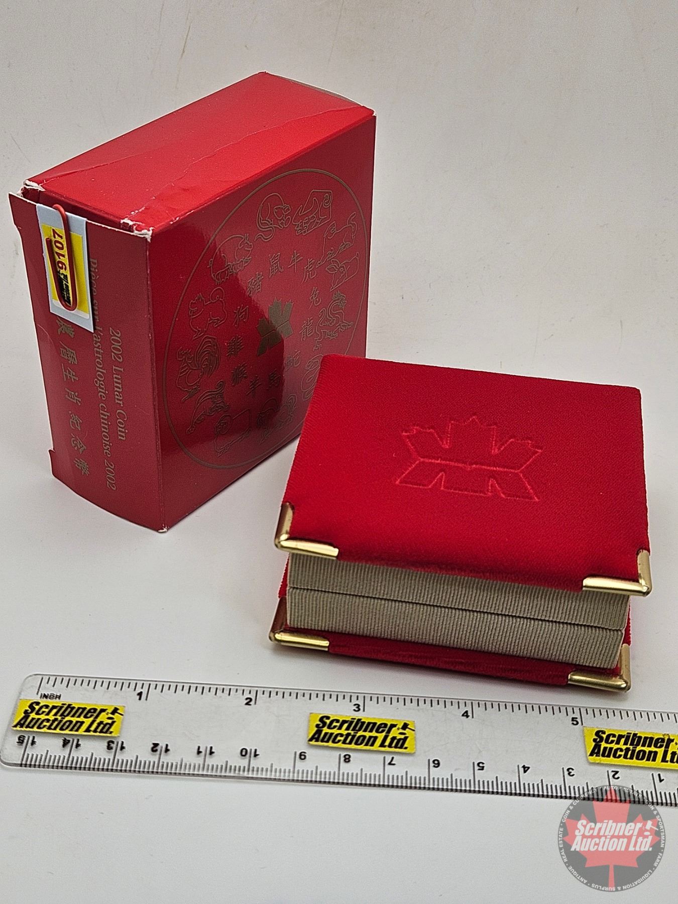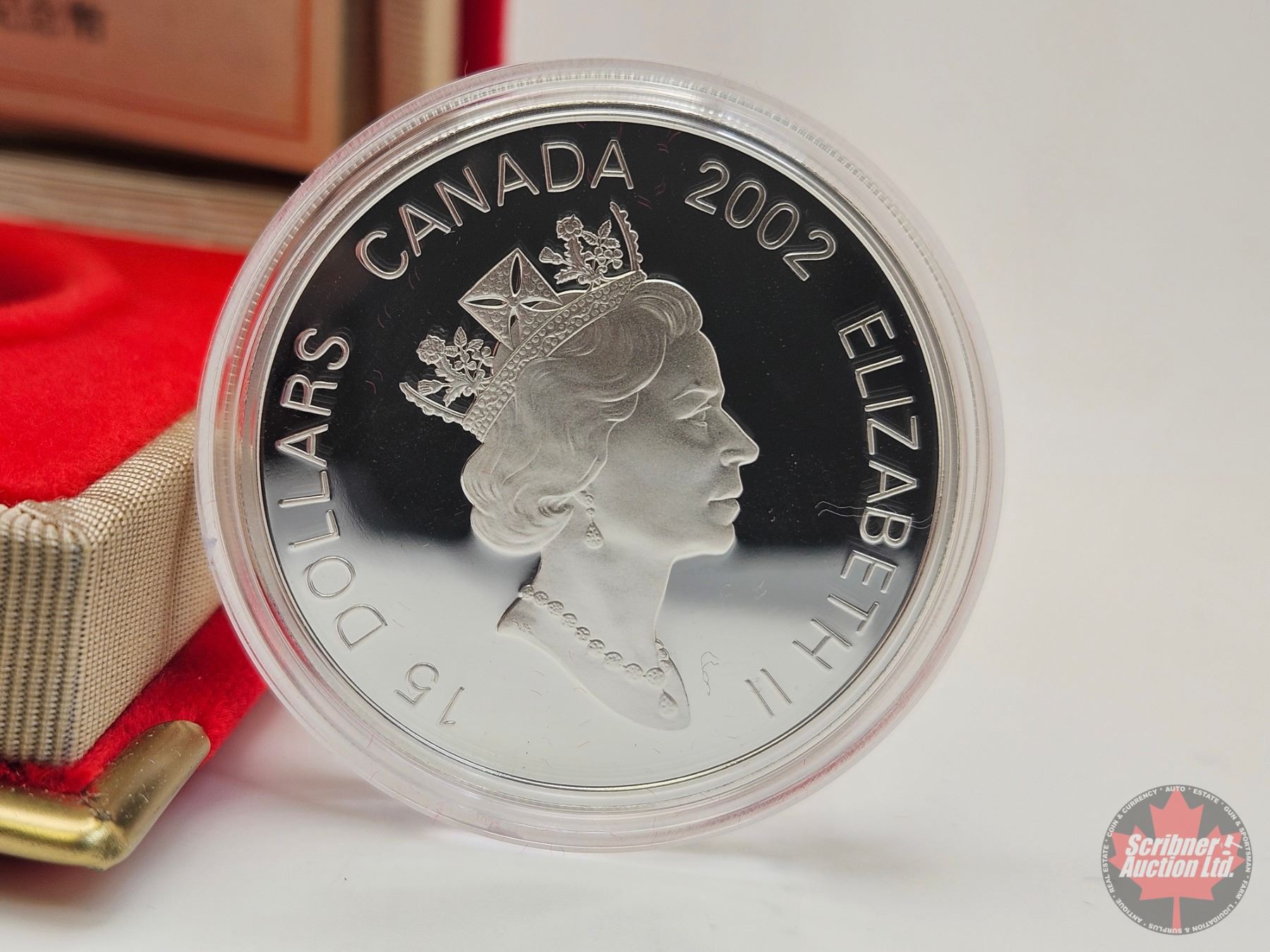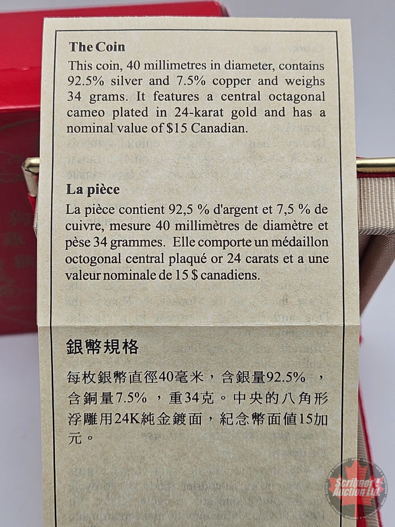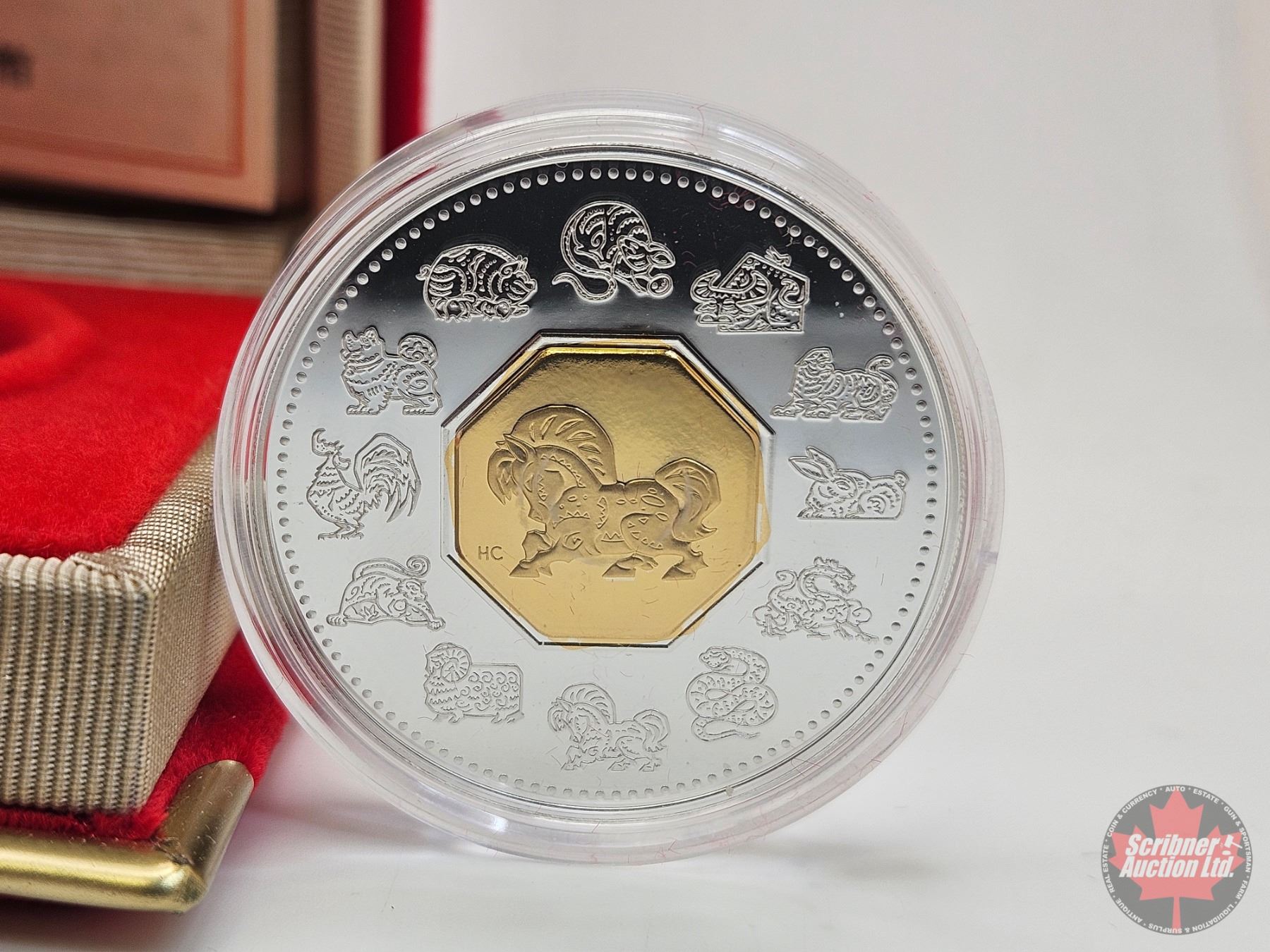 RCM Canada 2002 $15 Lunar Coin : Horse (COA #20157) (Sterling) (Central Octagonal Cameo Plated in 24-karat Gold)
