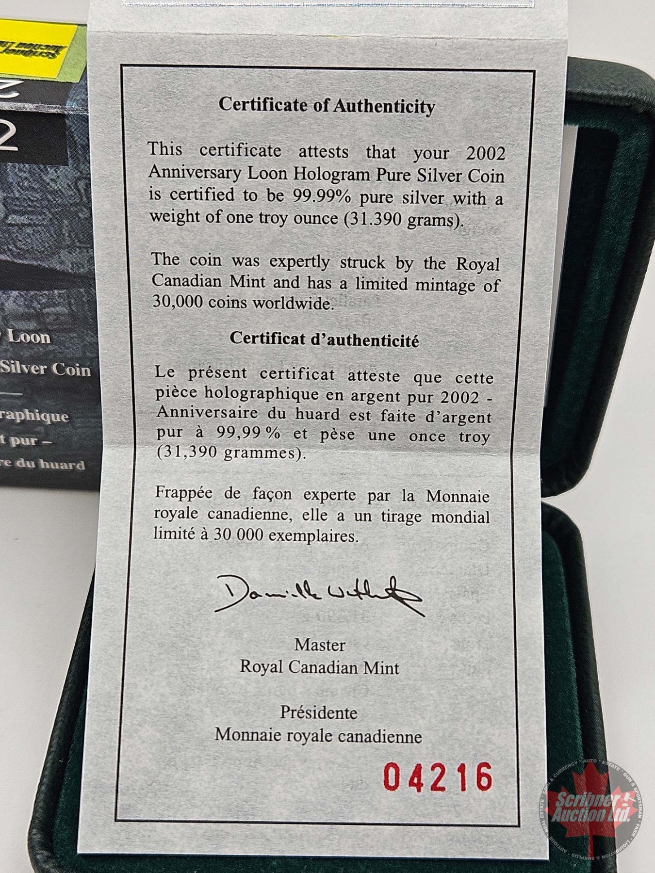RCM Canada 2002 Anniversary Loon : Hologram Pure Silver Coin (COA #04216) (99.99%) (GST Exempt)