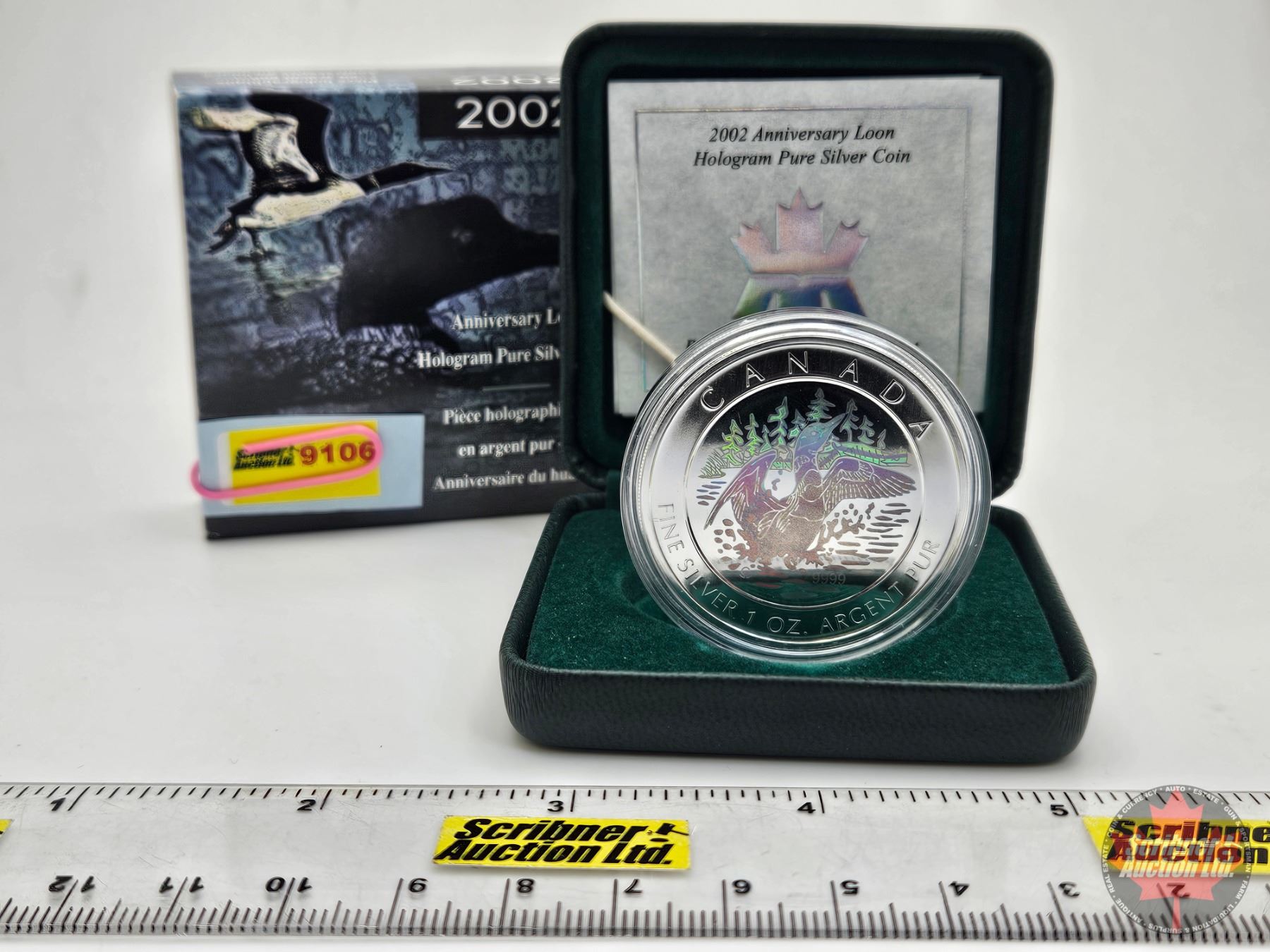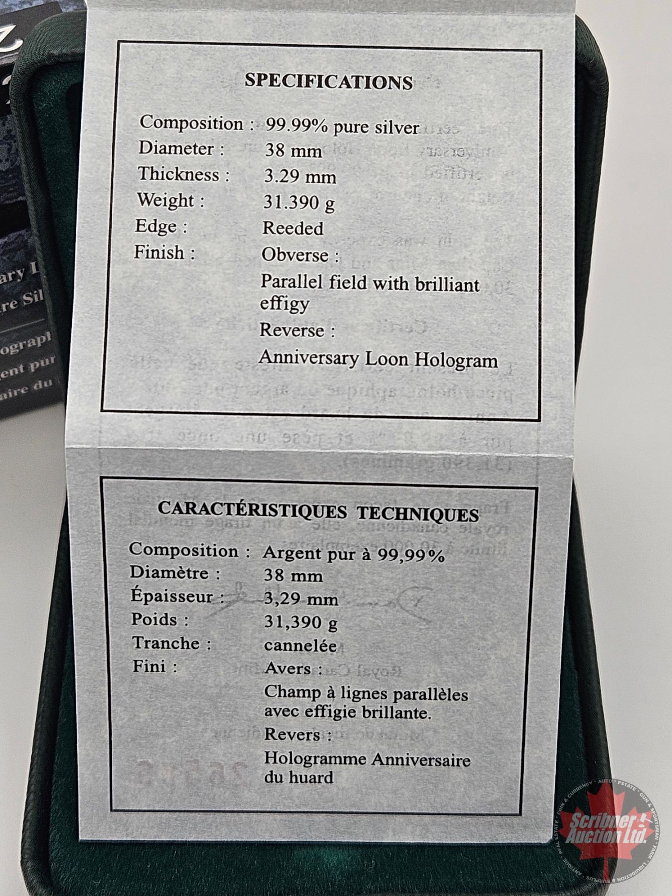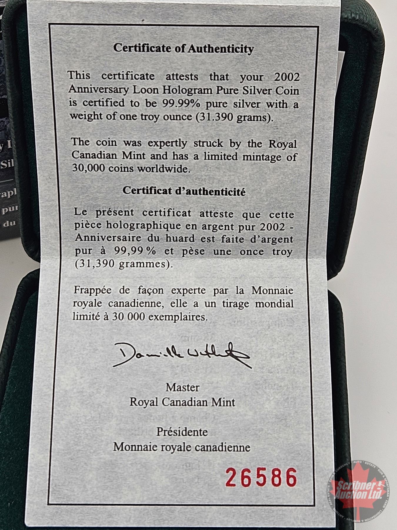 RCM Canada 2002 Anniversary Loon : Hologram Pure Silver Coin (COA #26586) (99.99%) (SEE PICTURES!) (GST Exempt)