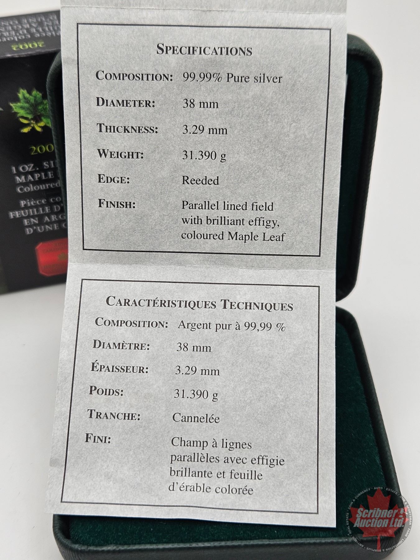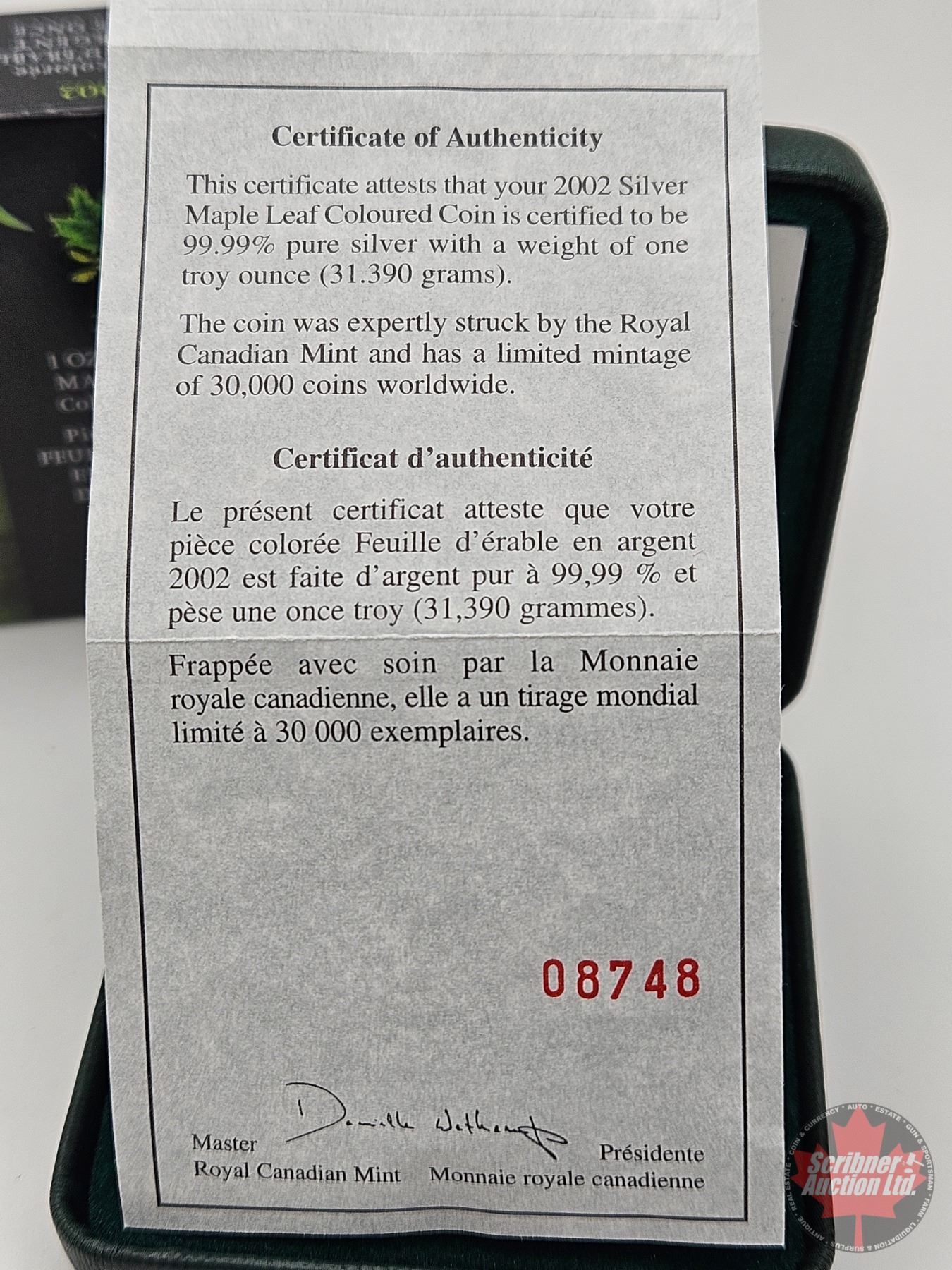 RCM Canada 2002 Silver Maple Leaf Coloured Coin (COA #08748) (99.99%) (GST Exempt)