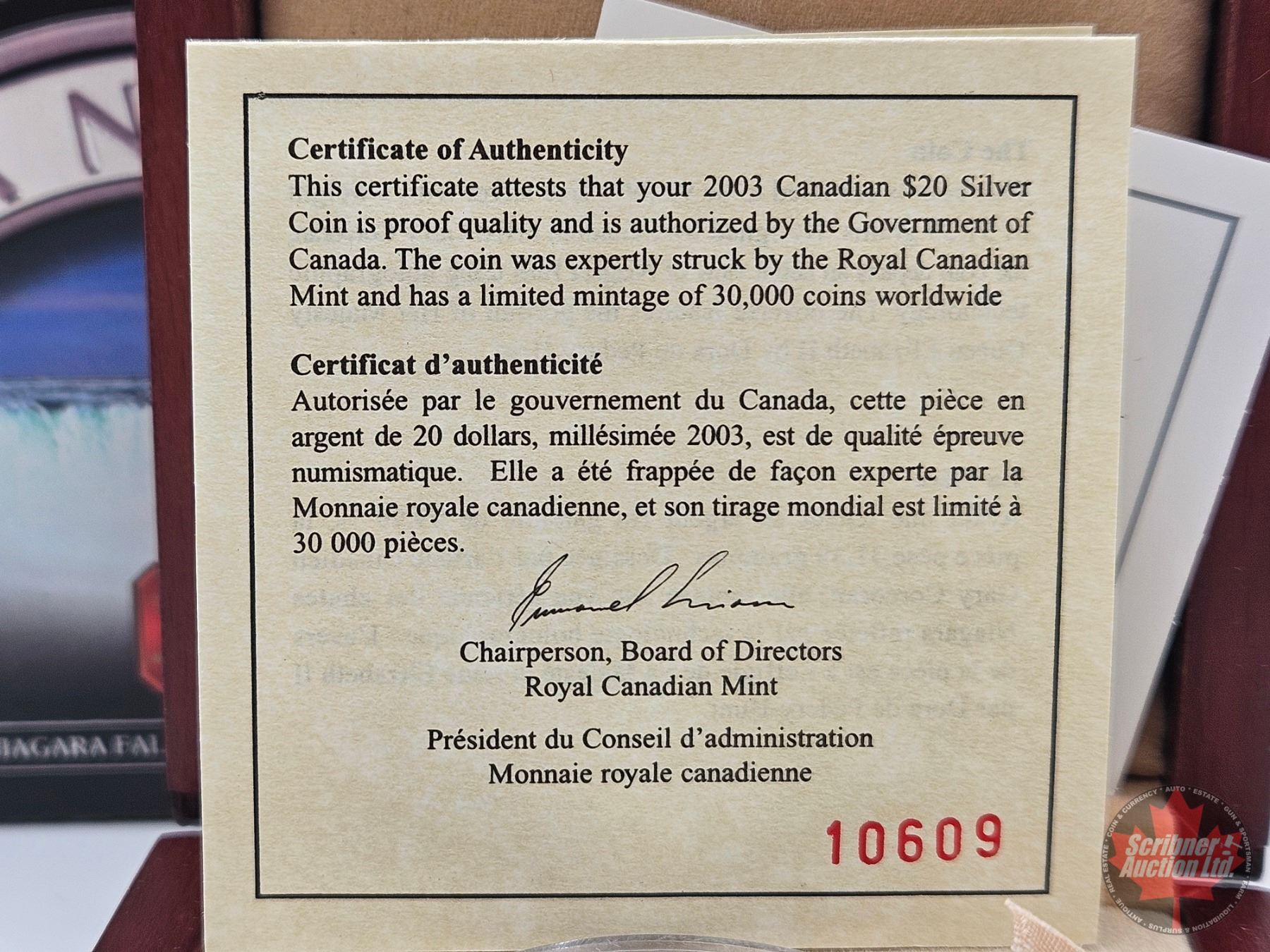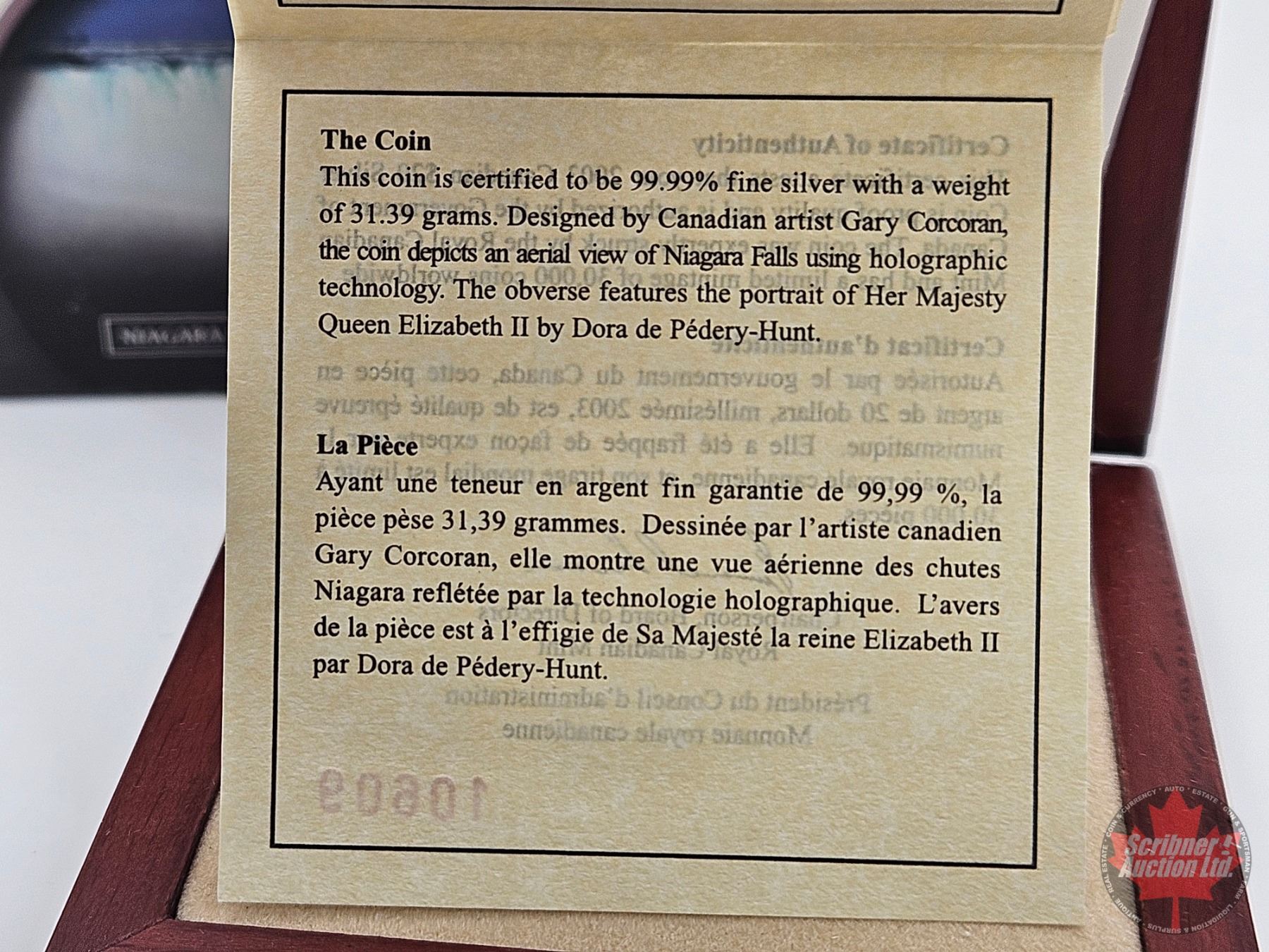 RCM Canada 2003 Natural Wonders : Niagara Falls : $20 Silver Coin (COA #10609)
