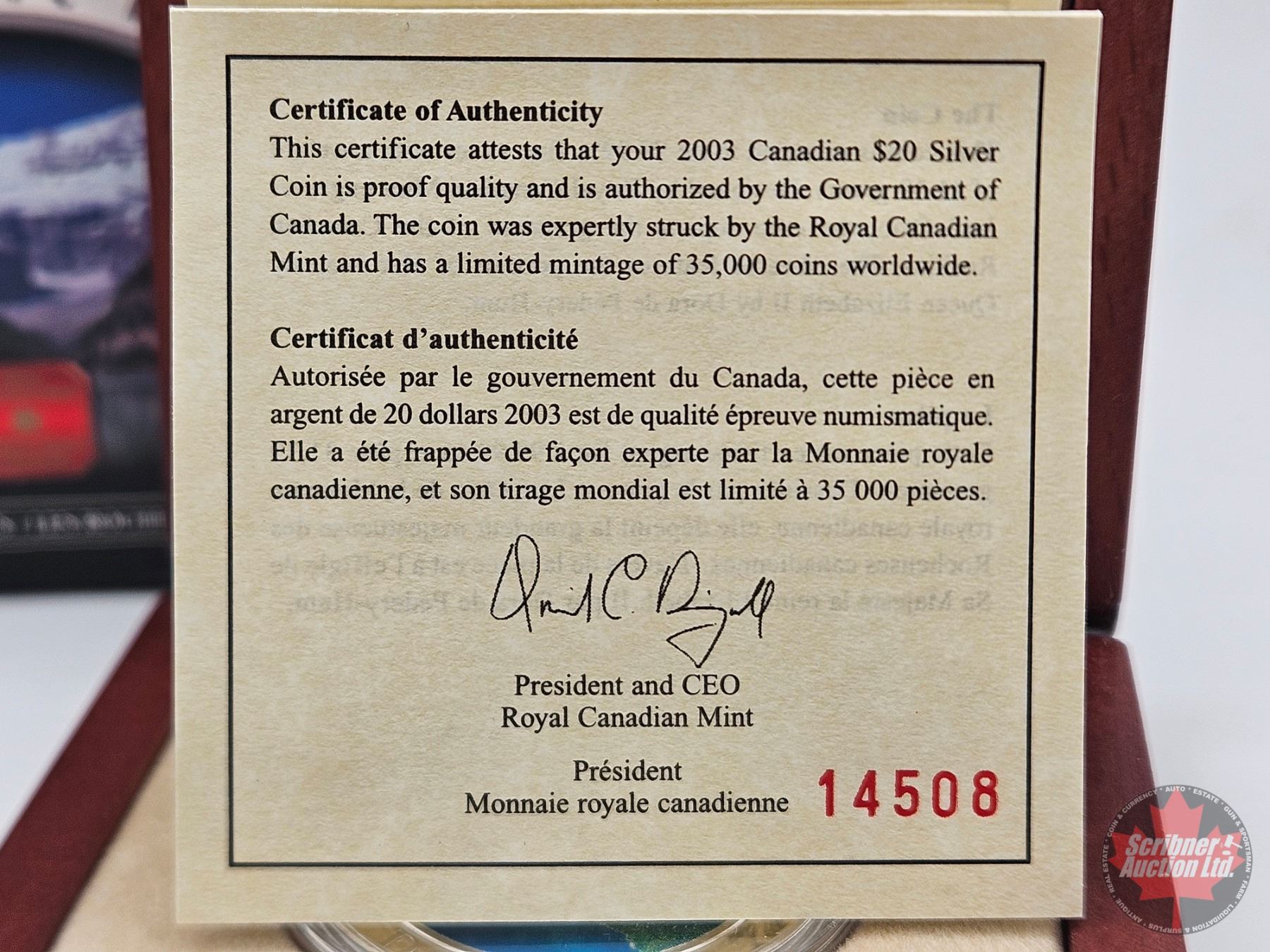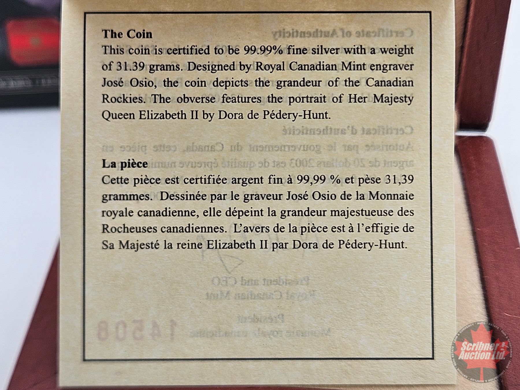 RCM Canada 2003 Natural Wonders : The Rockies : $20 Silver Coin : Rocky Mountains (COA #14508)