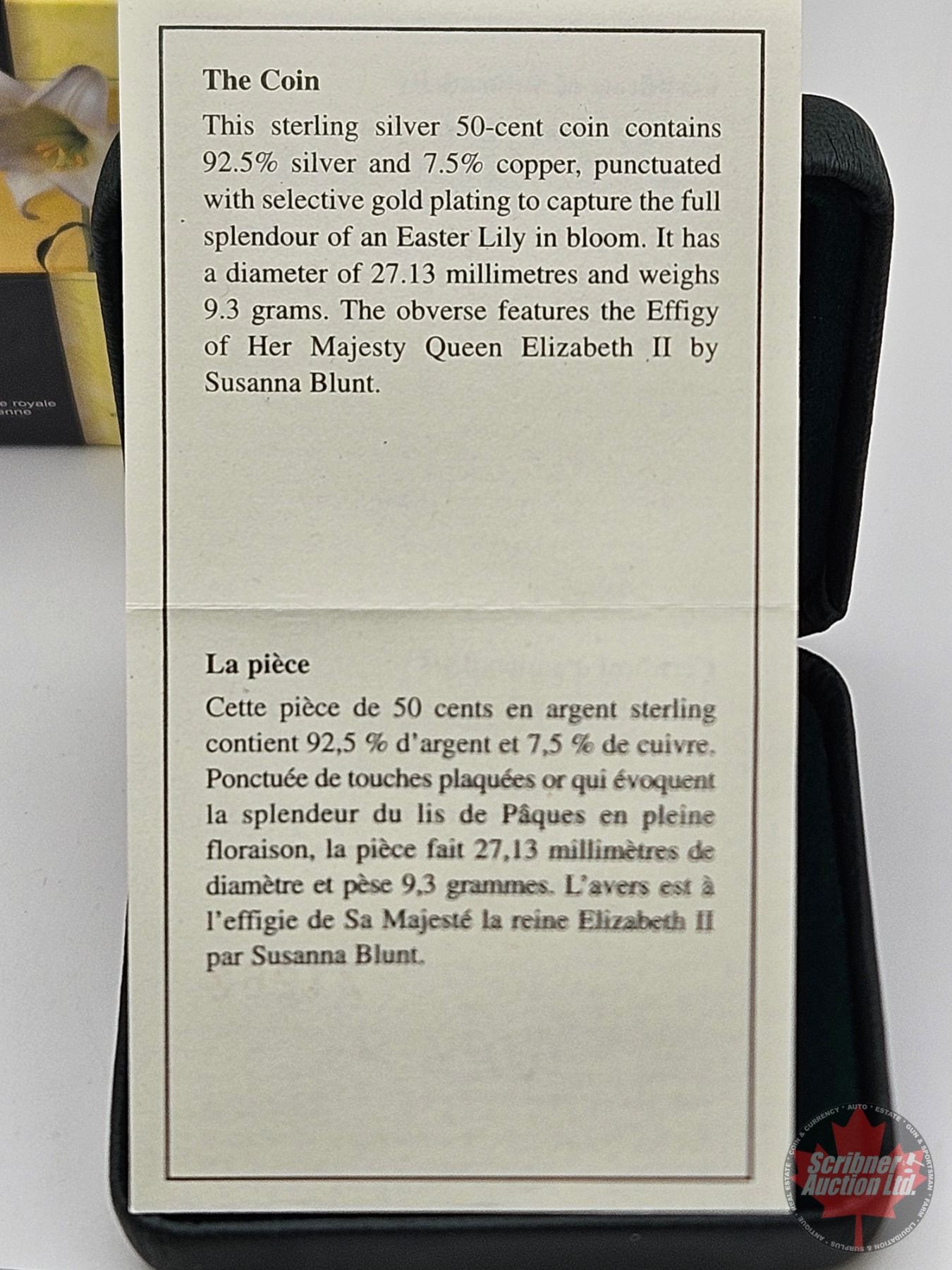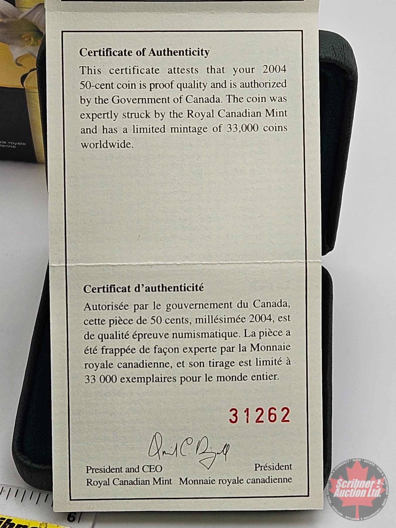 RCM Canada 2004 : Fifty Cent Sterling Silver Coin : Easter Lily (COA #31262) (92.5%)