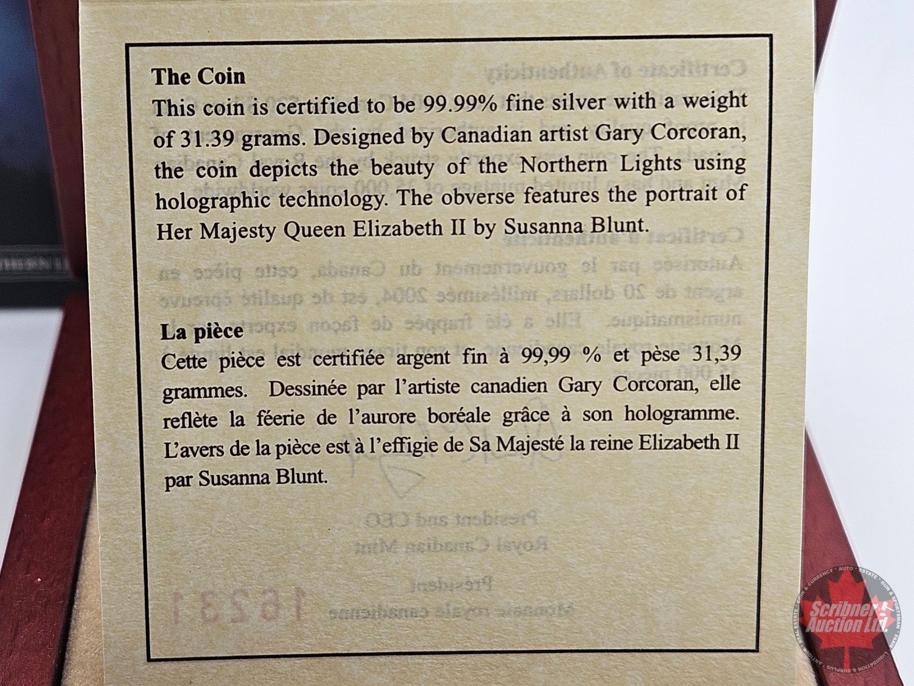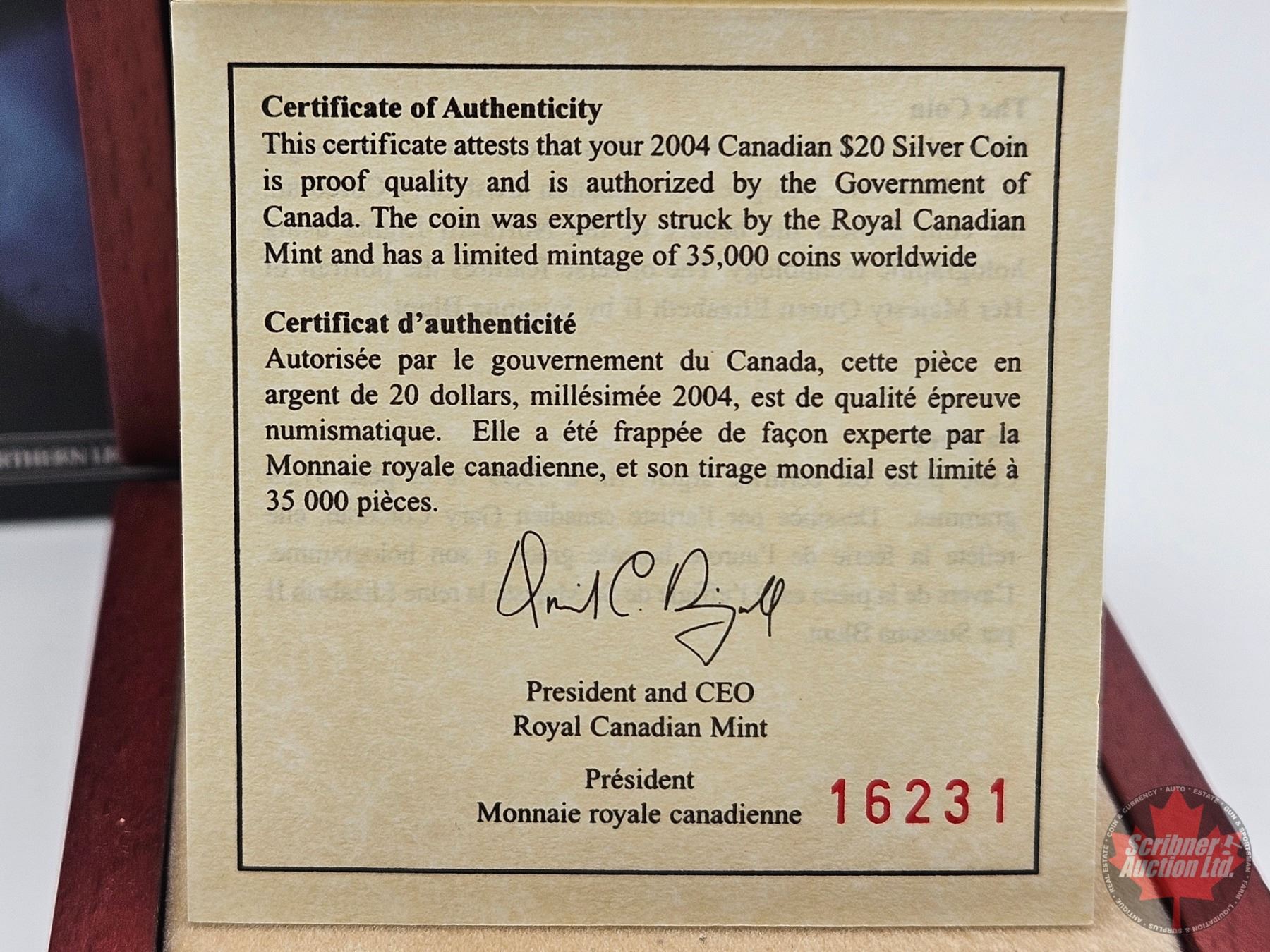 RCM Canada 2004 Natural Wonders : Northern Lights : Aurora Borealis : $20 Silver Coin