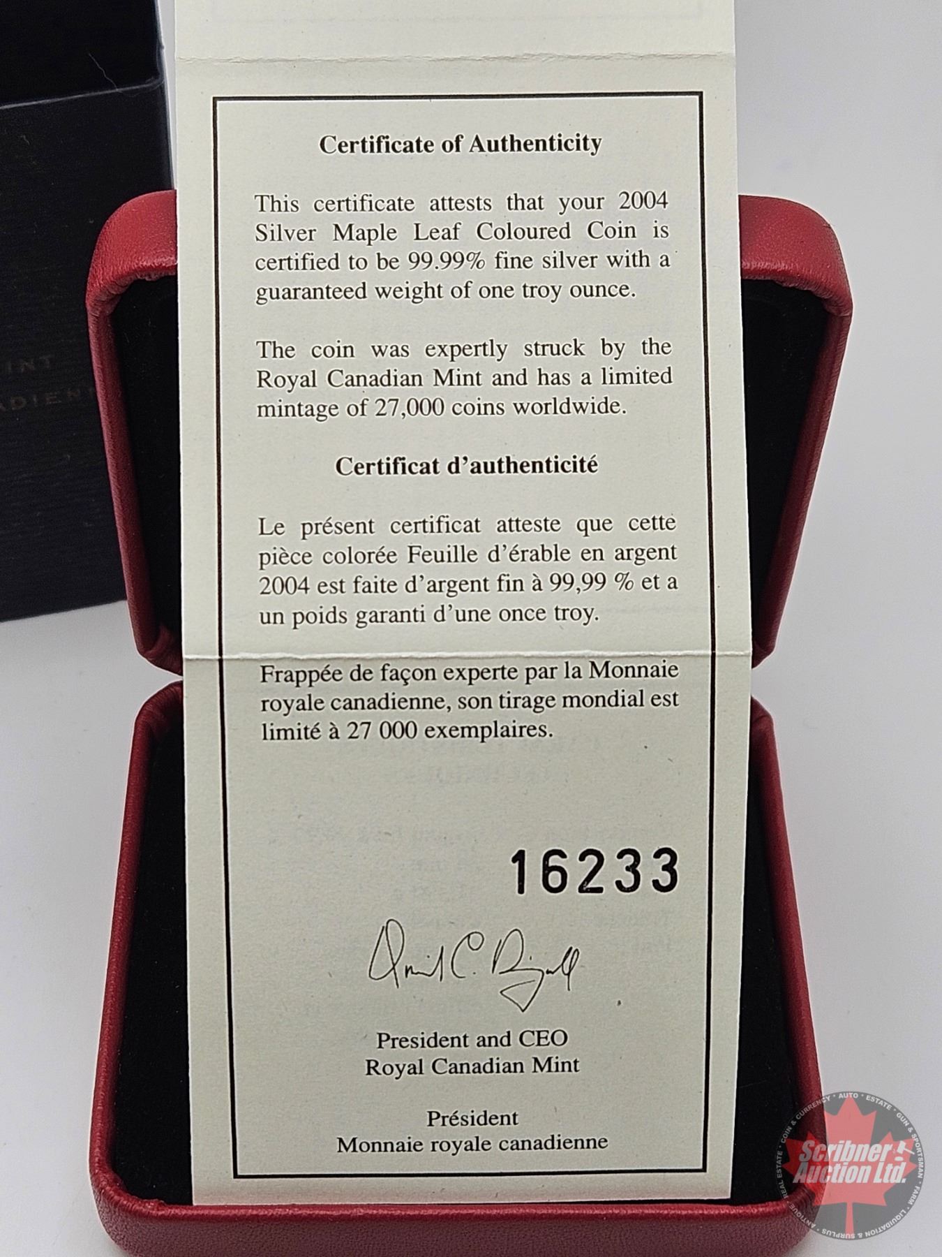 RCM Canada 2004 Silver Maple Leaf Coloured Five Dollar 1oz Fine Silver Coin (COA #16233)