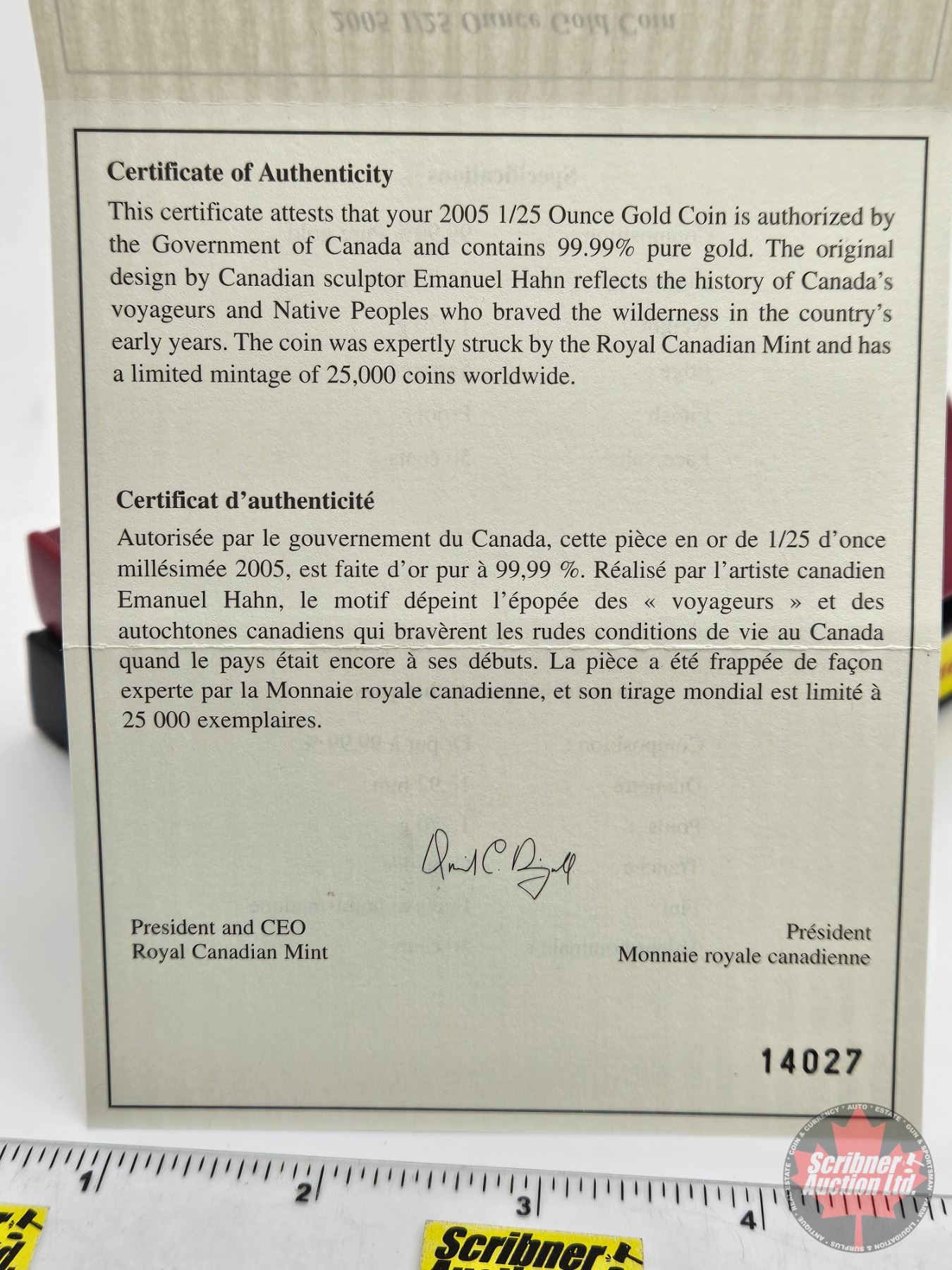 RCM Canada 2005 : 1/25 Ounce 50-Cent Fine Gold Coin : Voyageur (COA #14027)