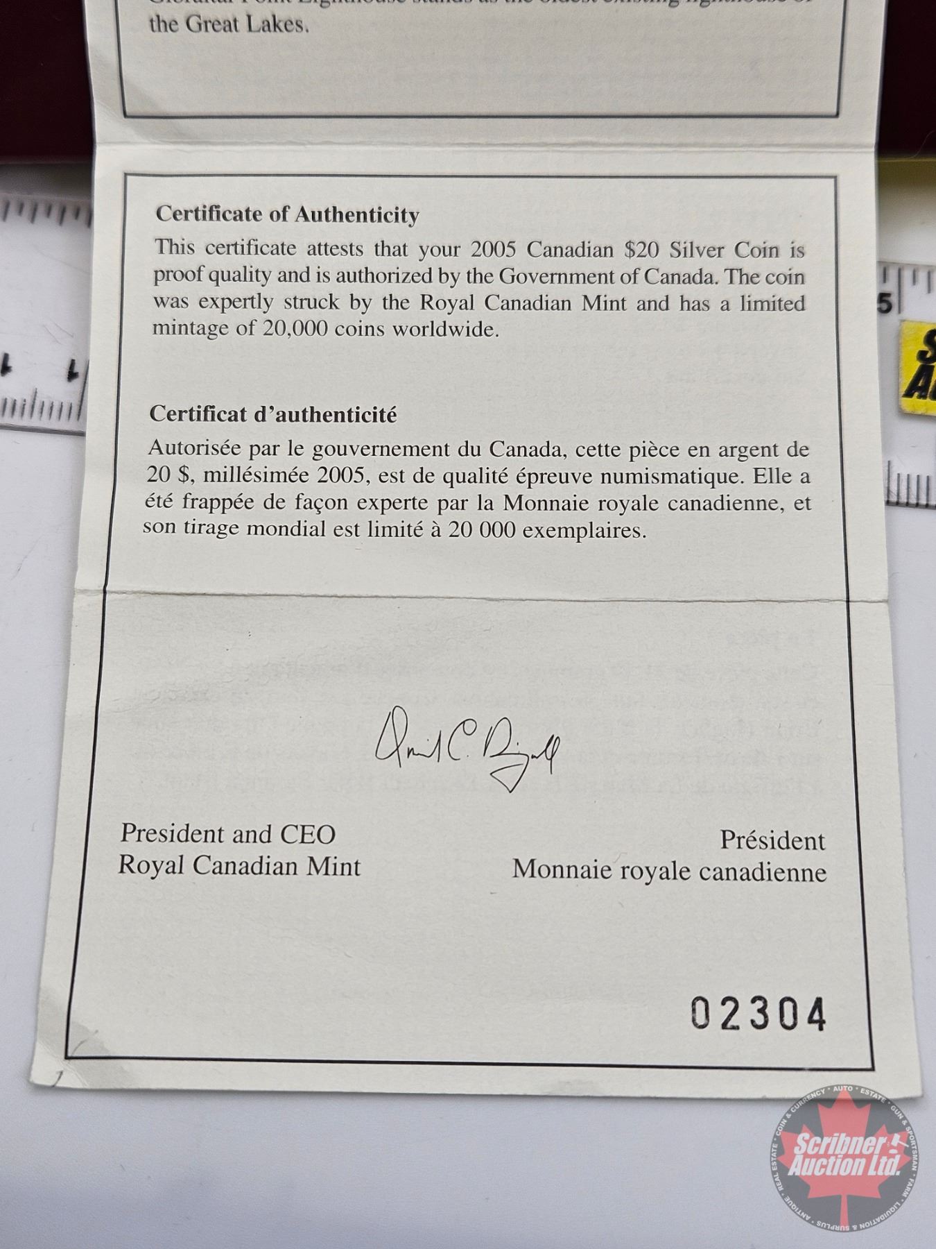 RCM Canada 2005 $20 Fine Silver : Gibraltar Point Lighthouse (COA #02304)