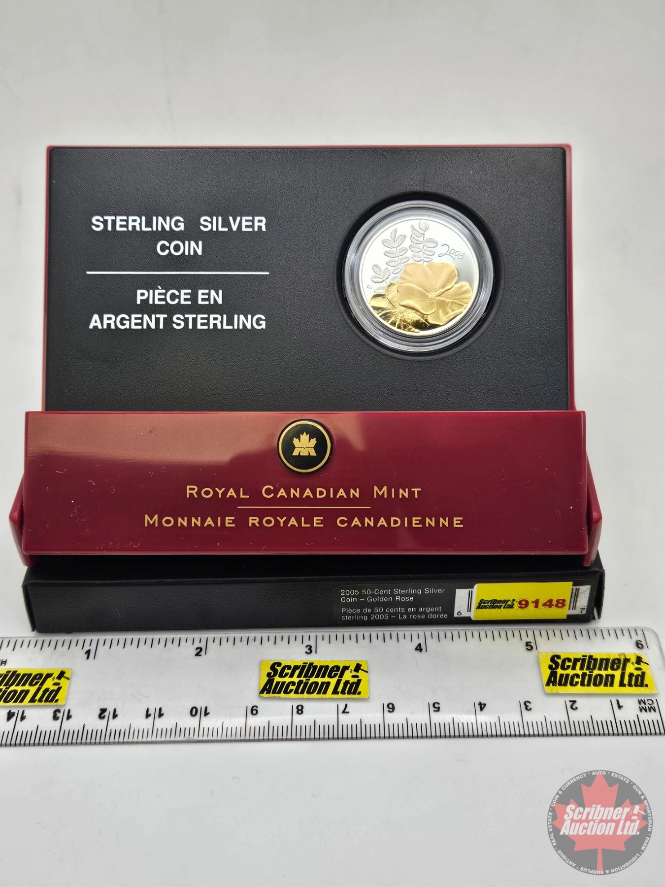 RCM Canada 2005 50-Cent Sterling Silver Coin : Golden Rose (COA #19194) (92.5%)