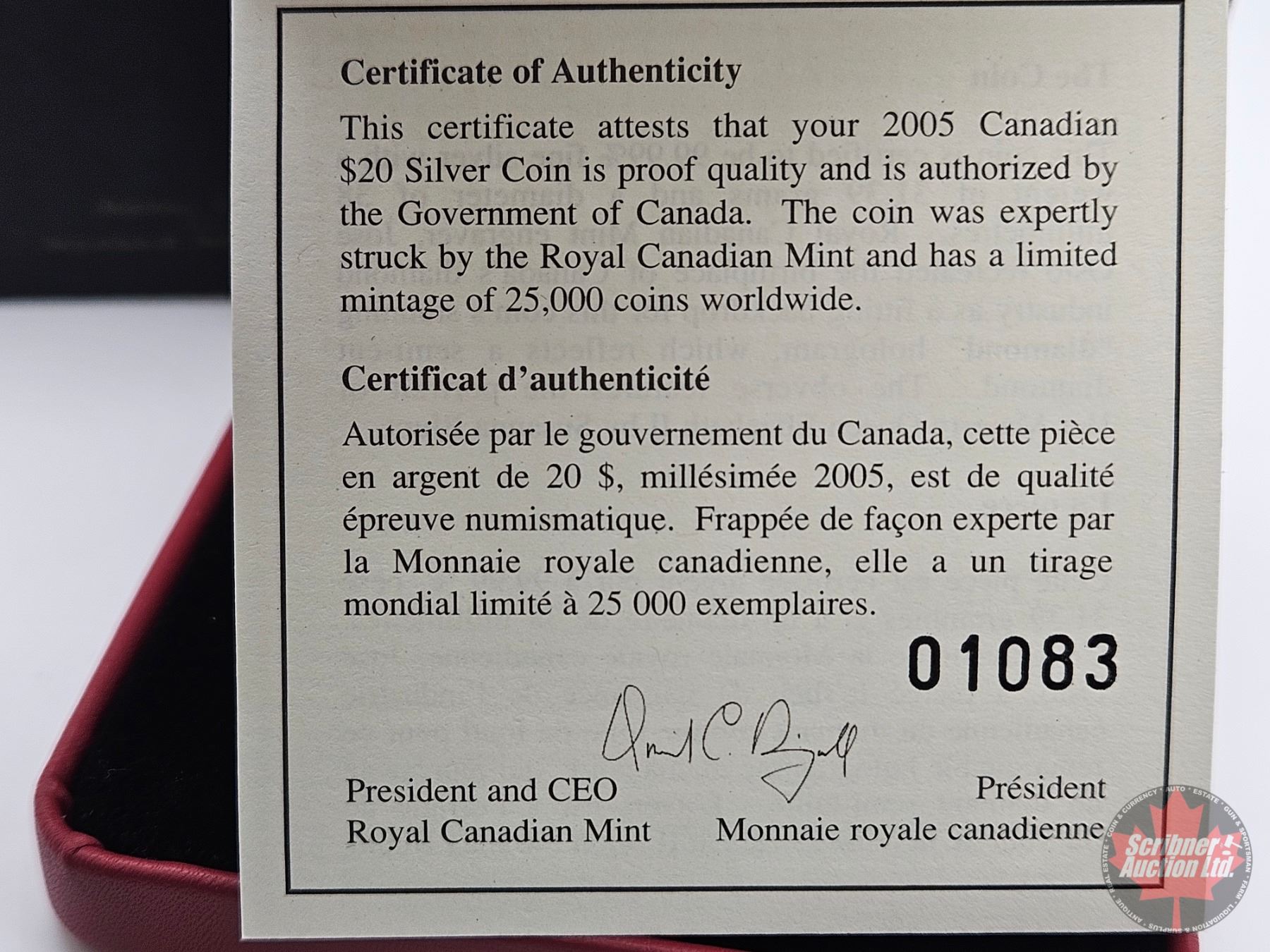 (COA #01083) (99.99%) (GST Exempt) (Note: Box shows "2004" : Coin is 2005)